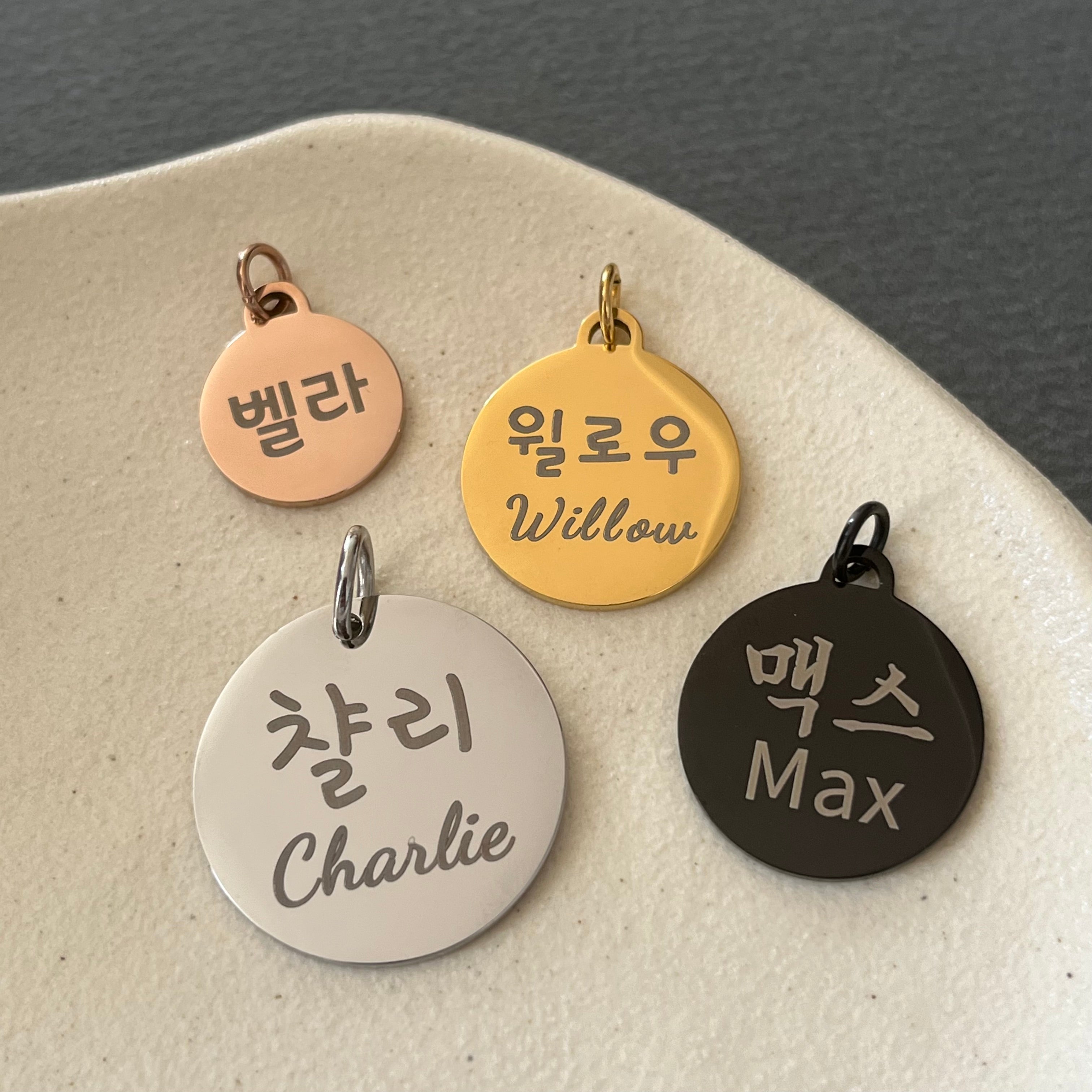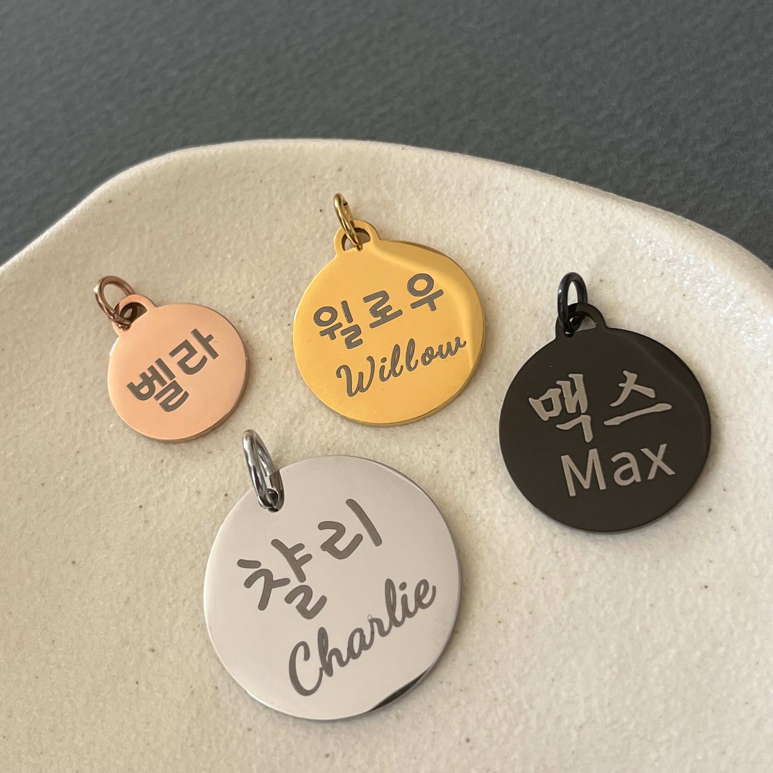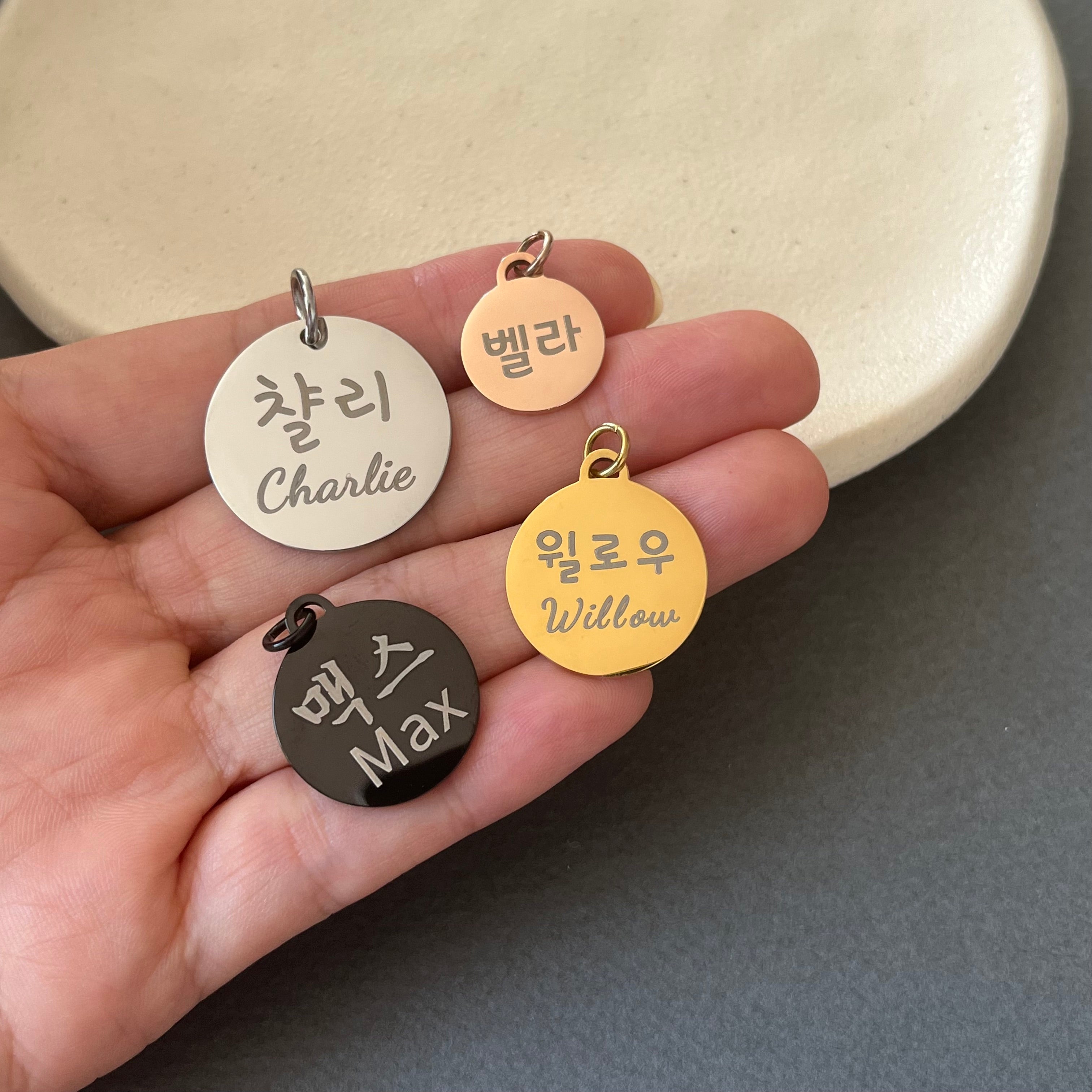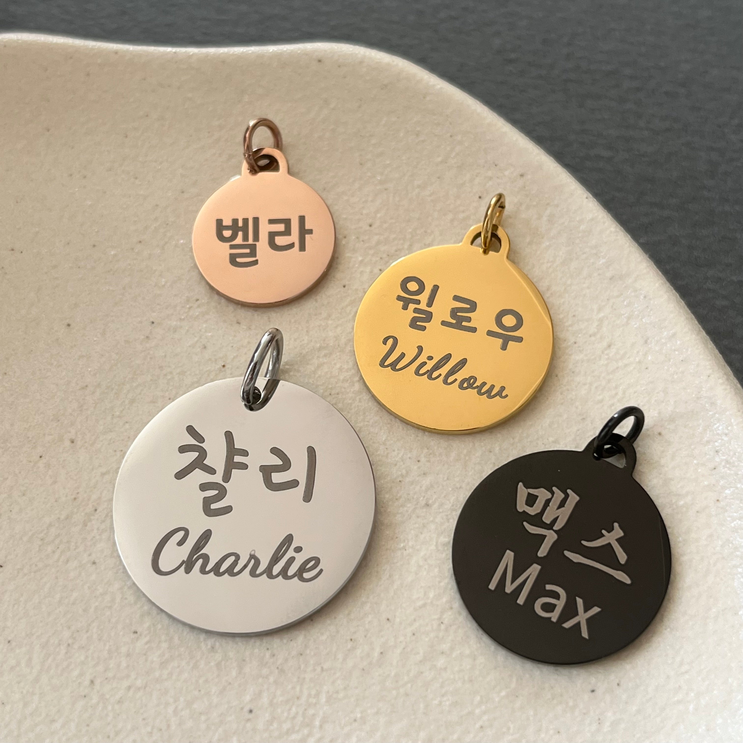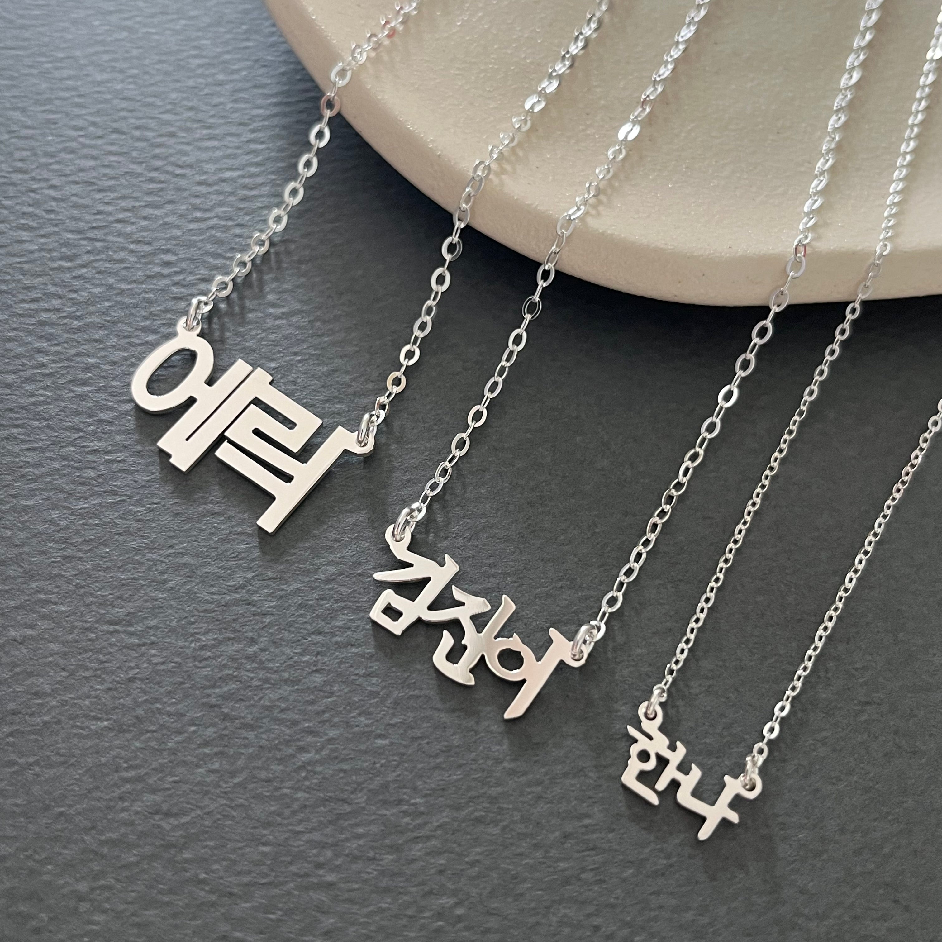 Personalized Name Jewelry in Korean, Chinese, Japanese, and Roman Alphabets