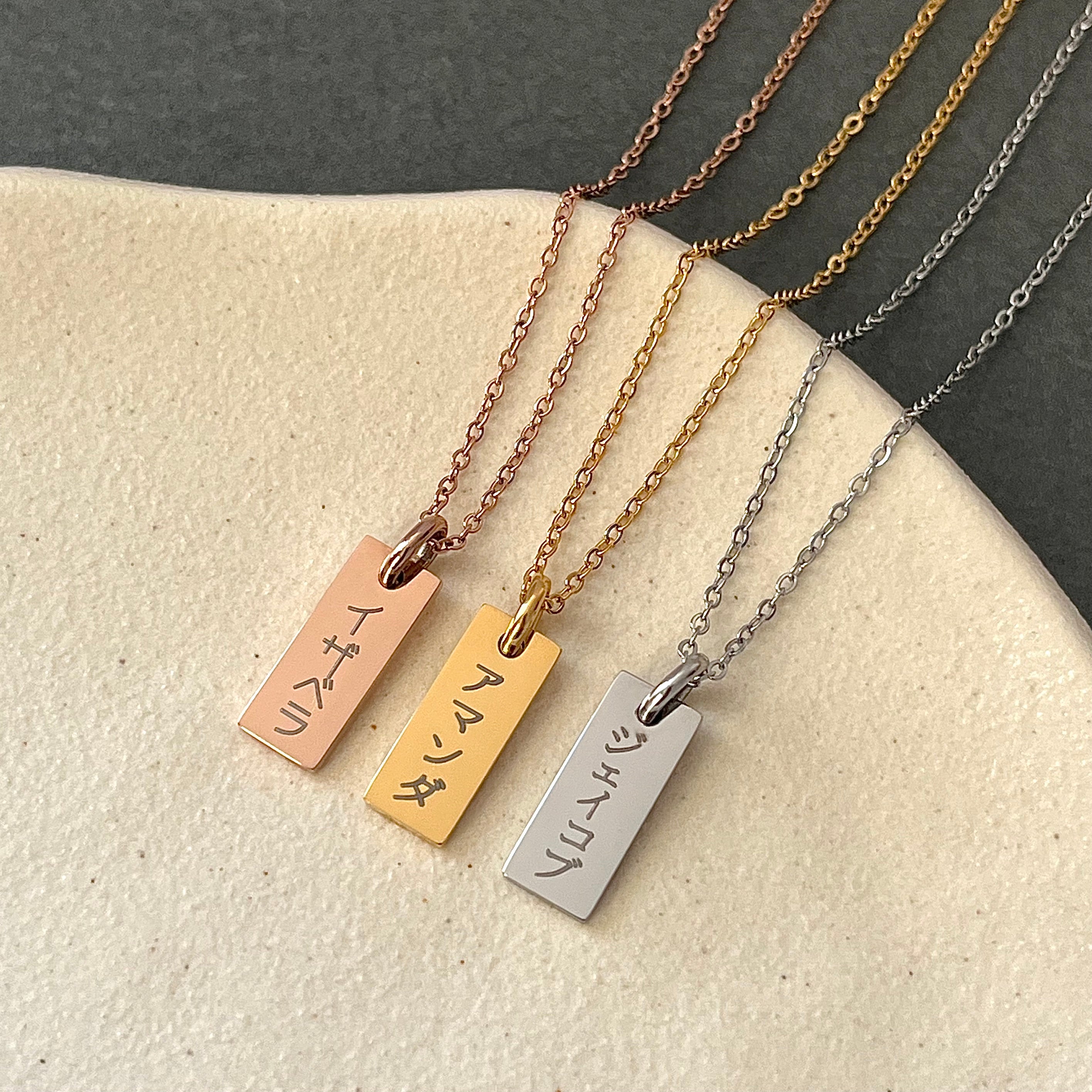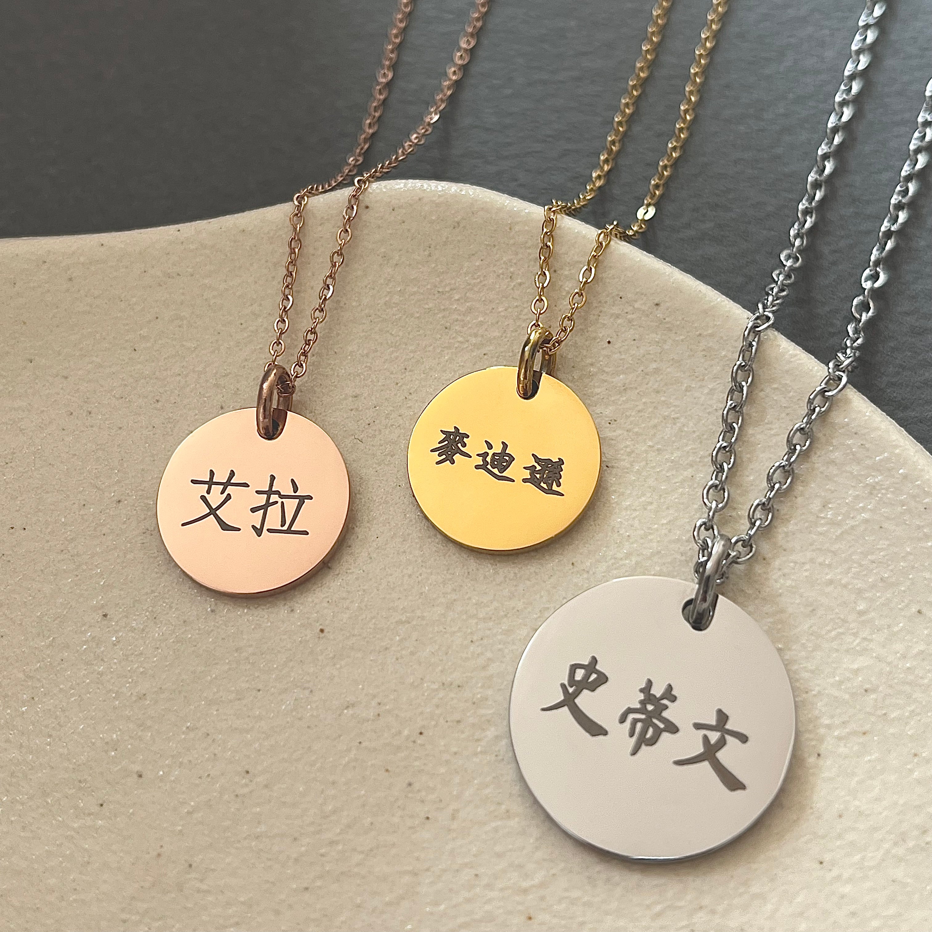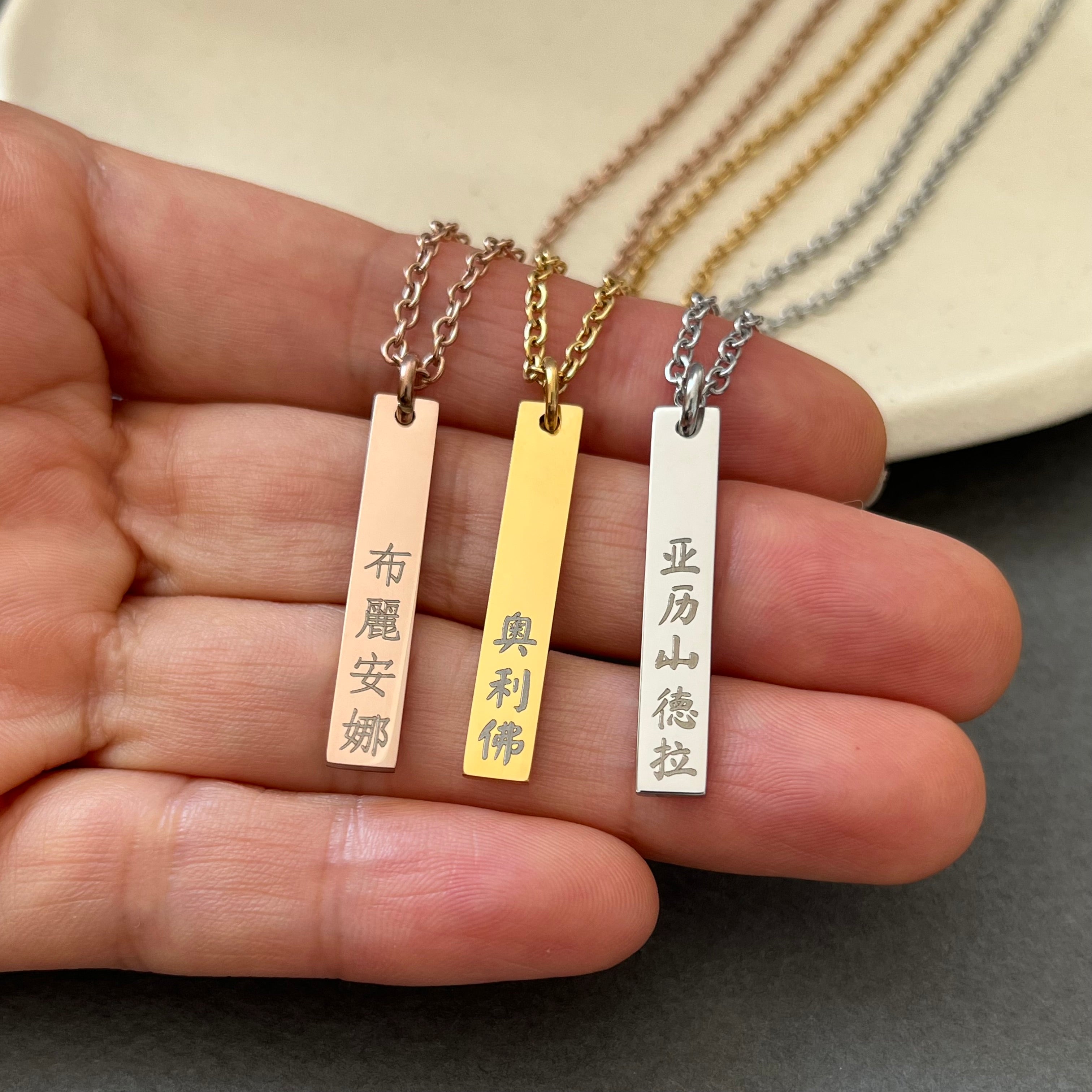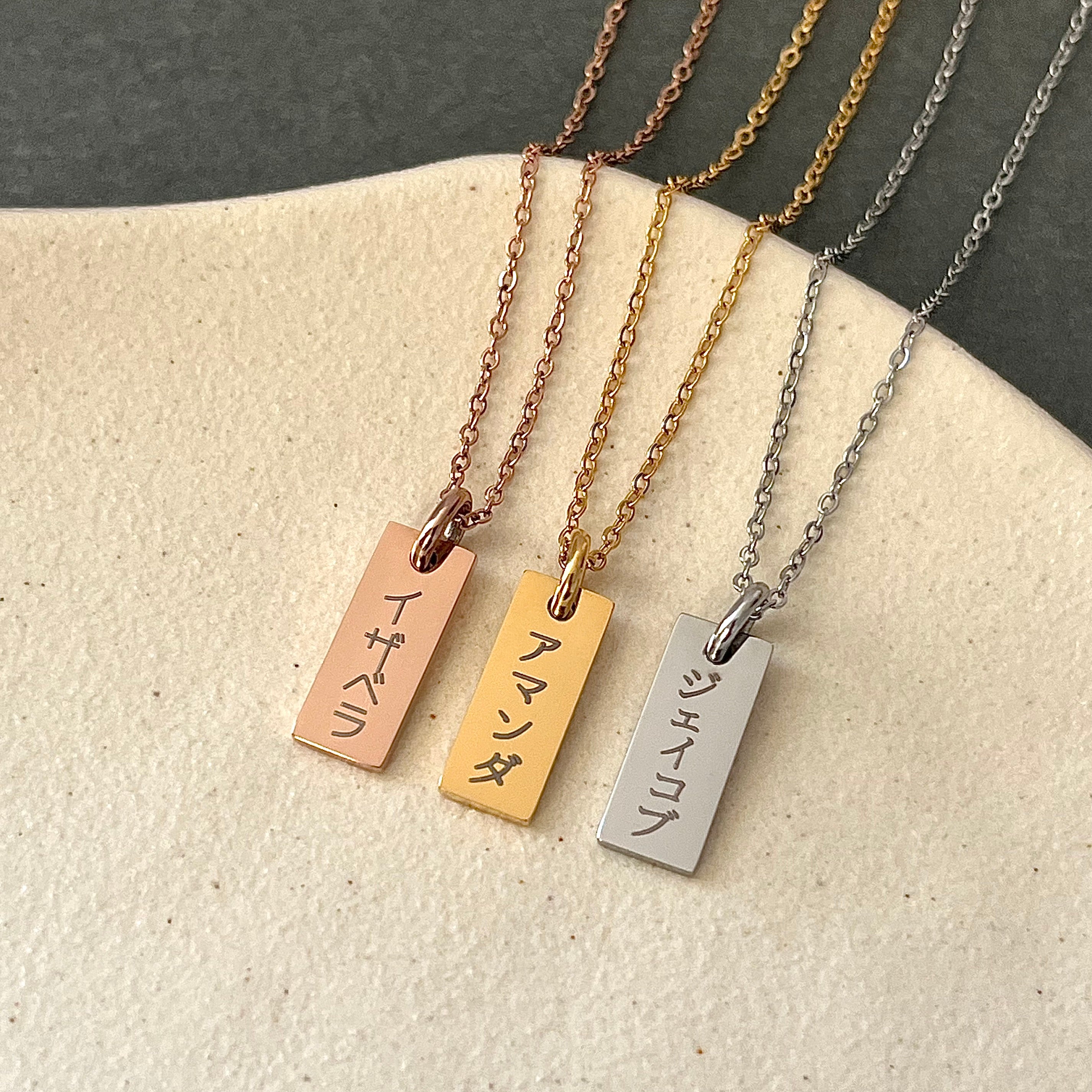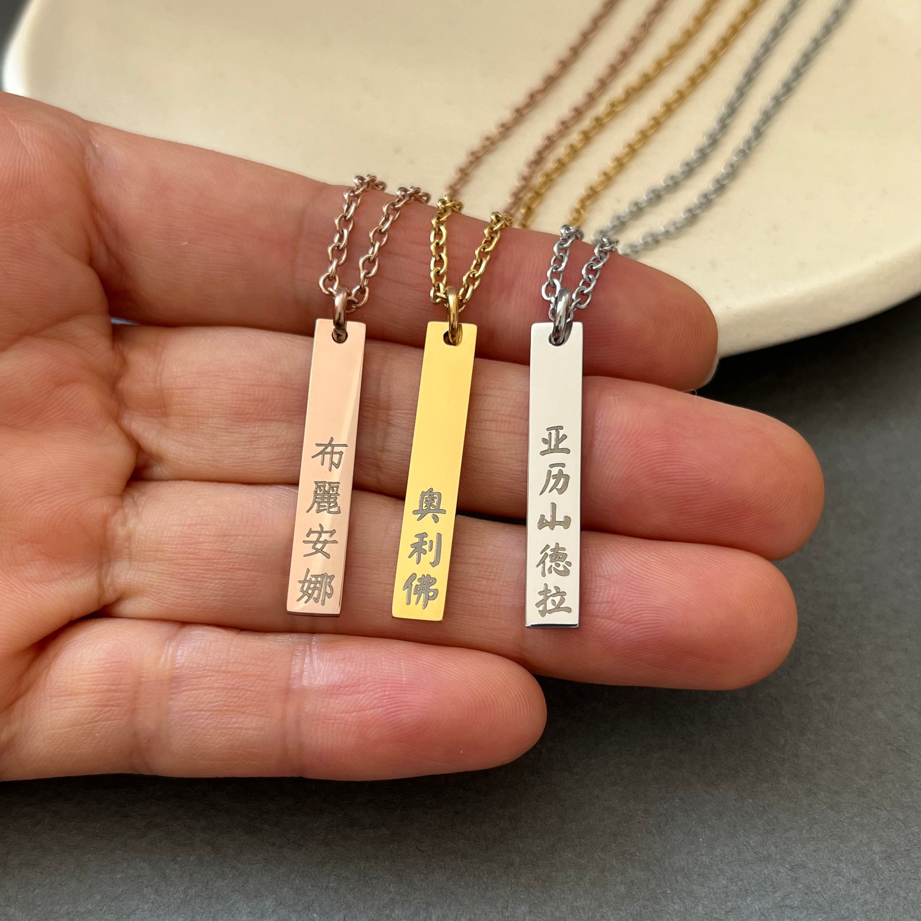 Personalized Name Jewelry in Korean, Chinese, Japanese, and Roman Alphabets