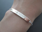 This is a personalized engraved Korean name bar sterling silver bracelet.