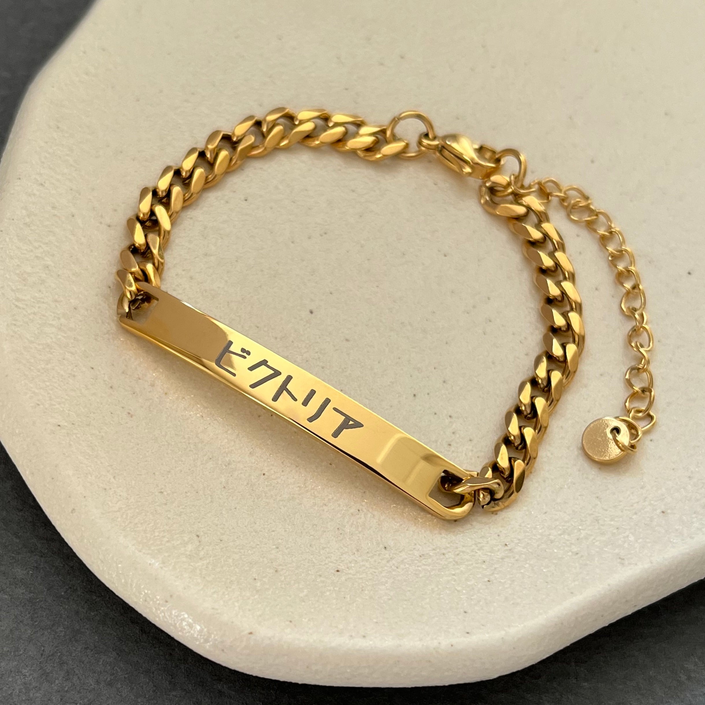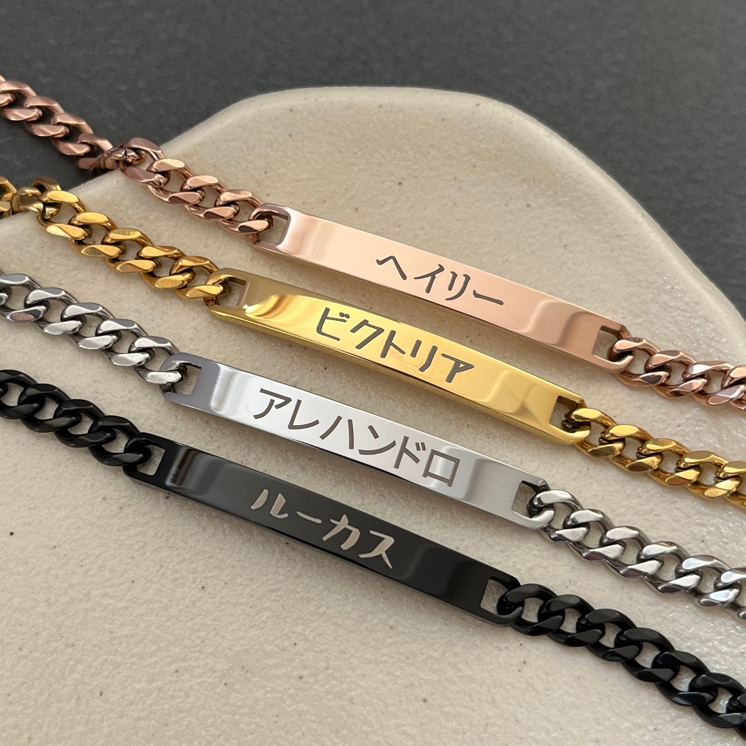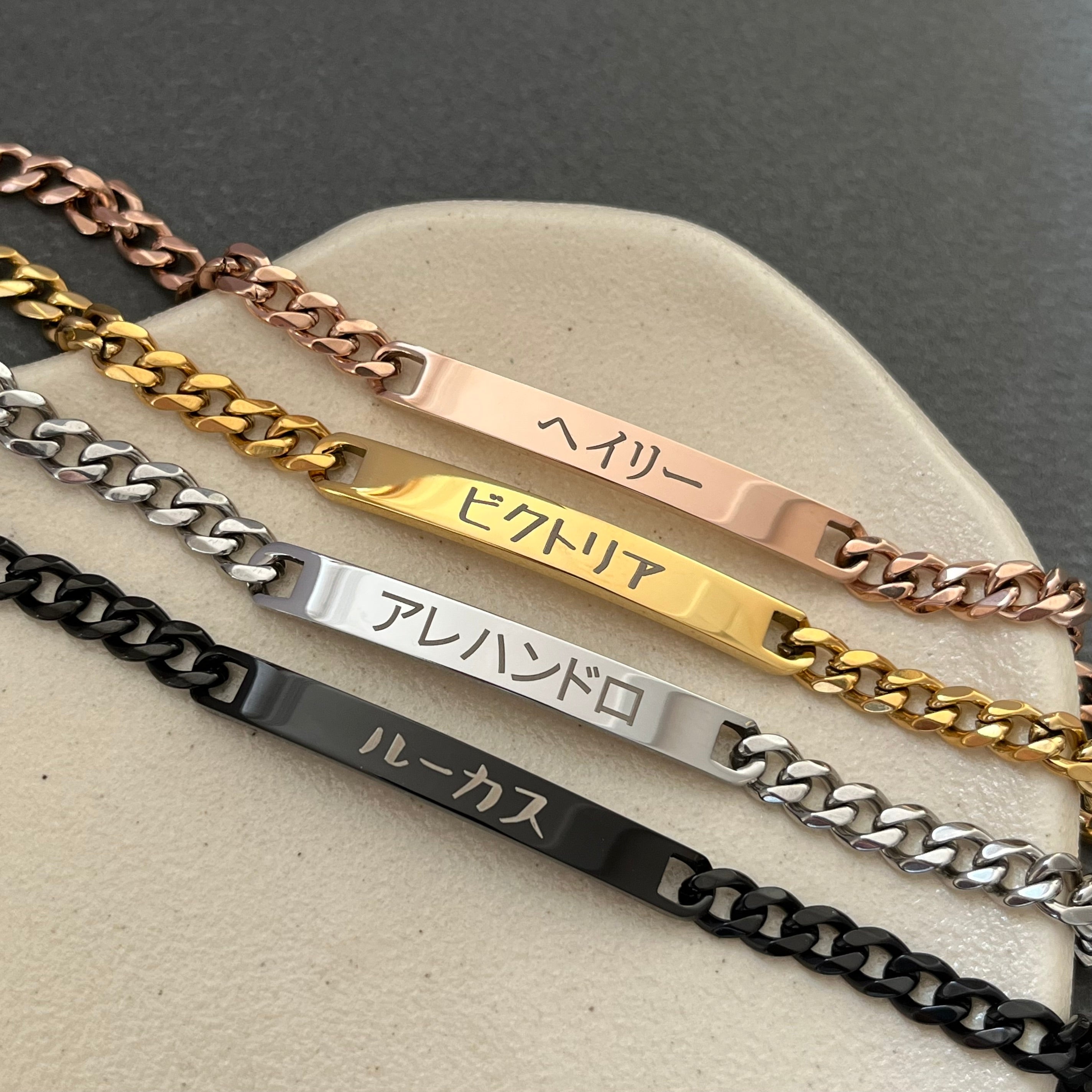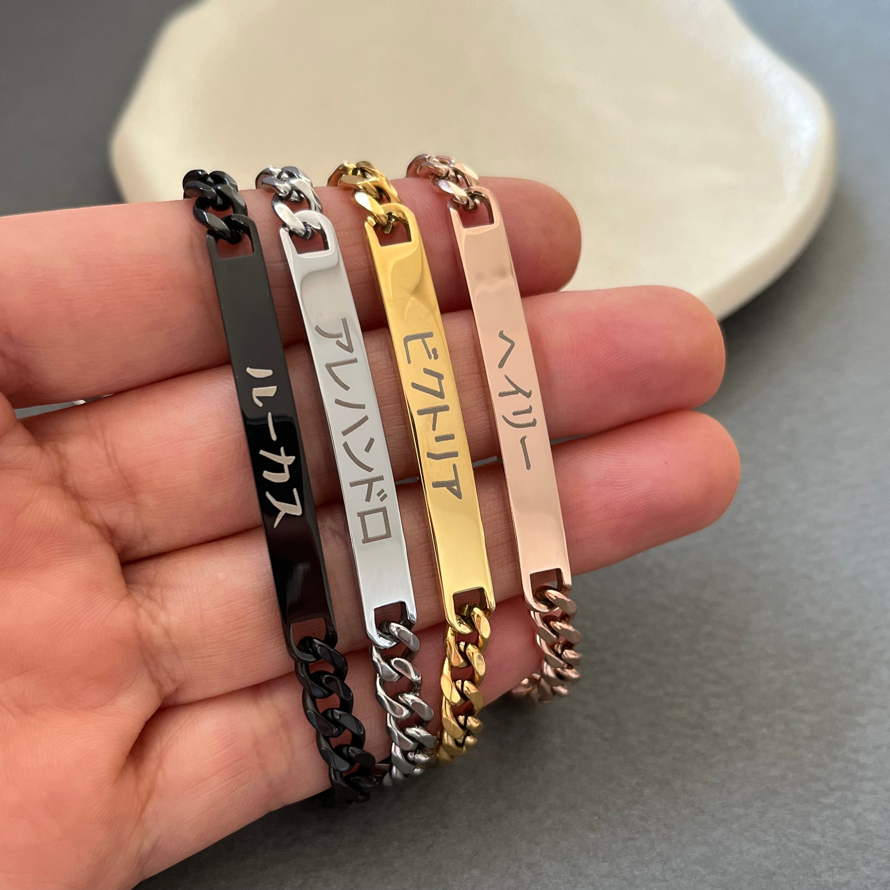 Personalized Japanese Name Large Bar Stainless Steel Bracelet With An Extender - Custom Japanese Unisex Bracelet - Japanese characters