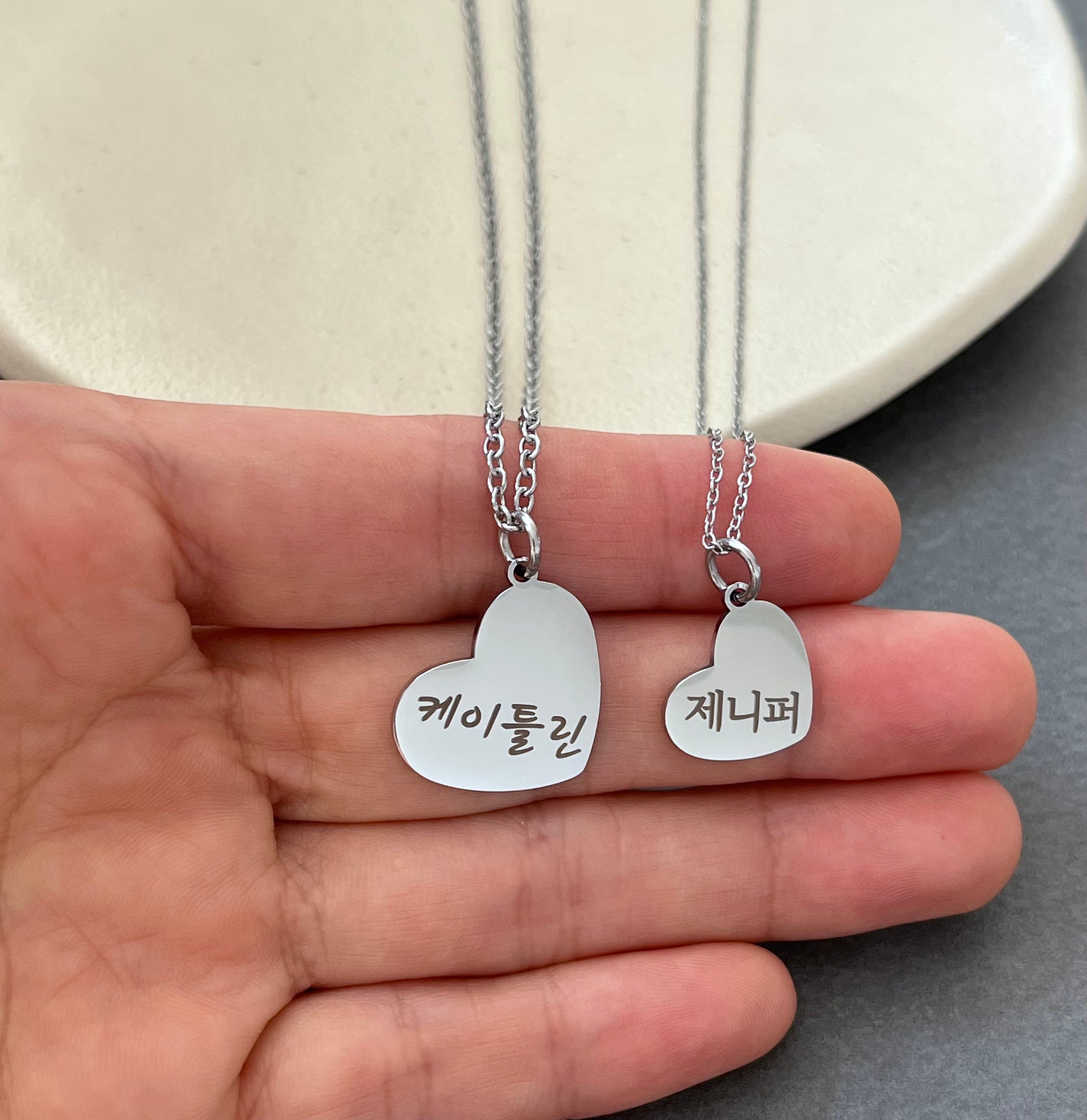 Personalized Korean Name Heart Stainless Steel Necklace - Custom Korean Necklace - Korea Jewelry - Korea Gifts - Korean Characters - Hangul