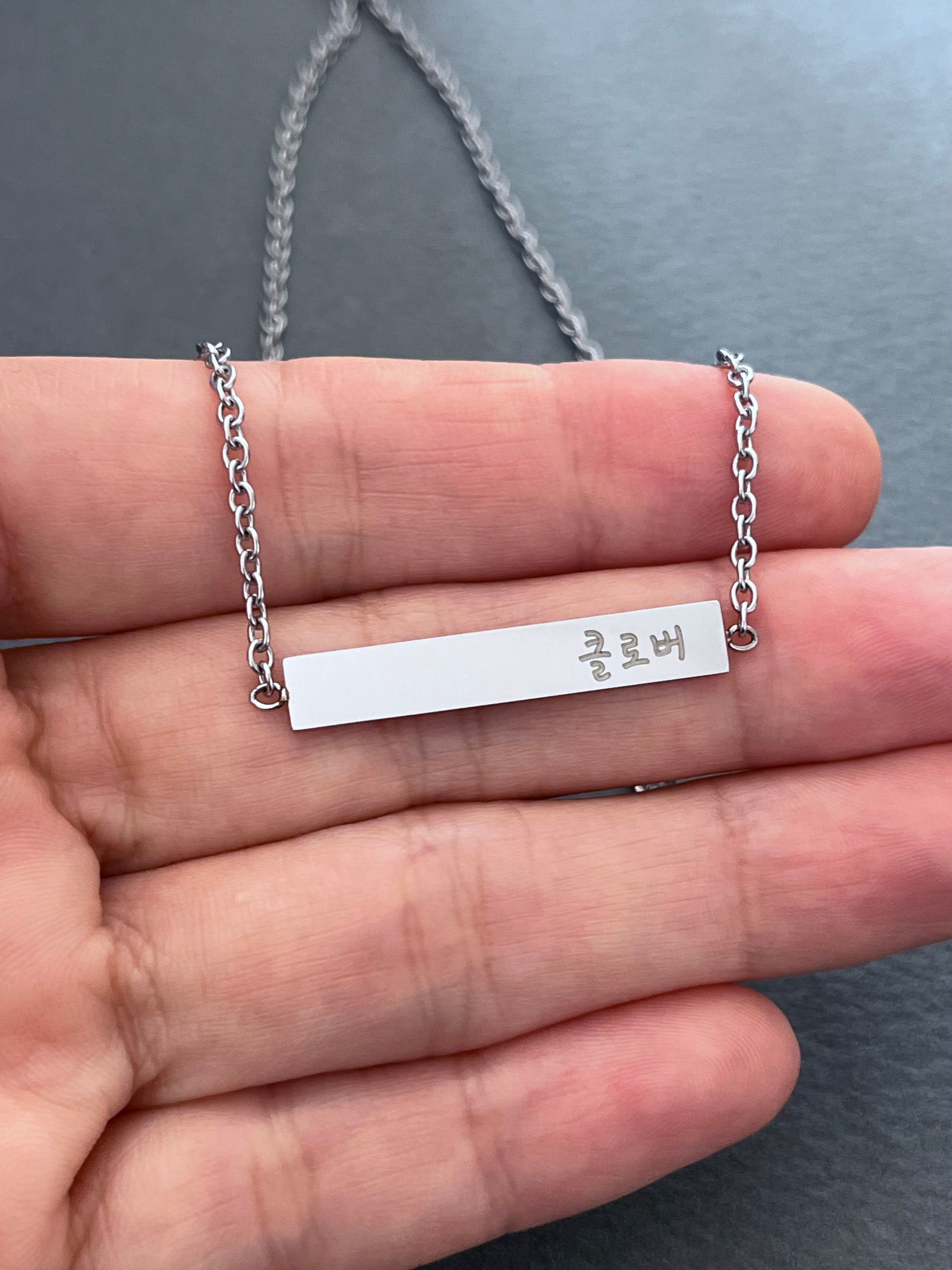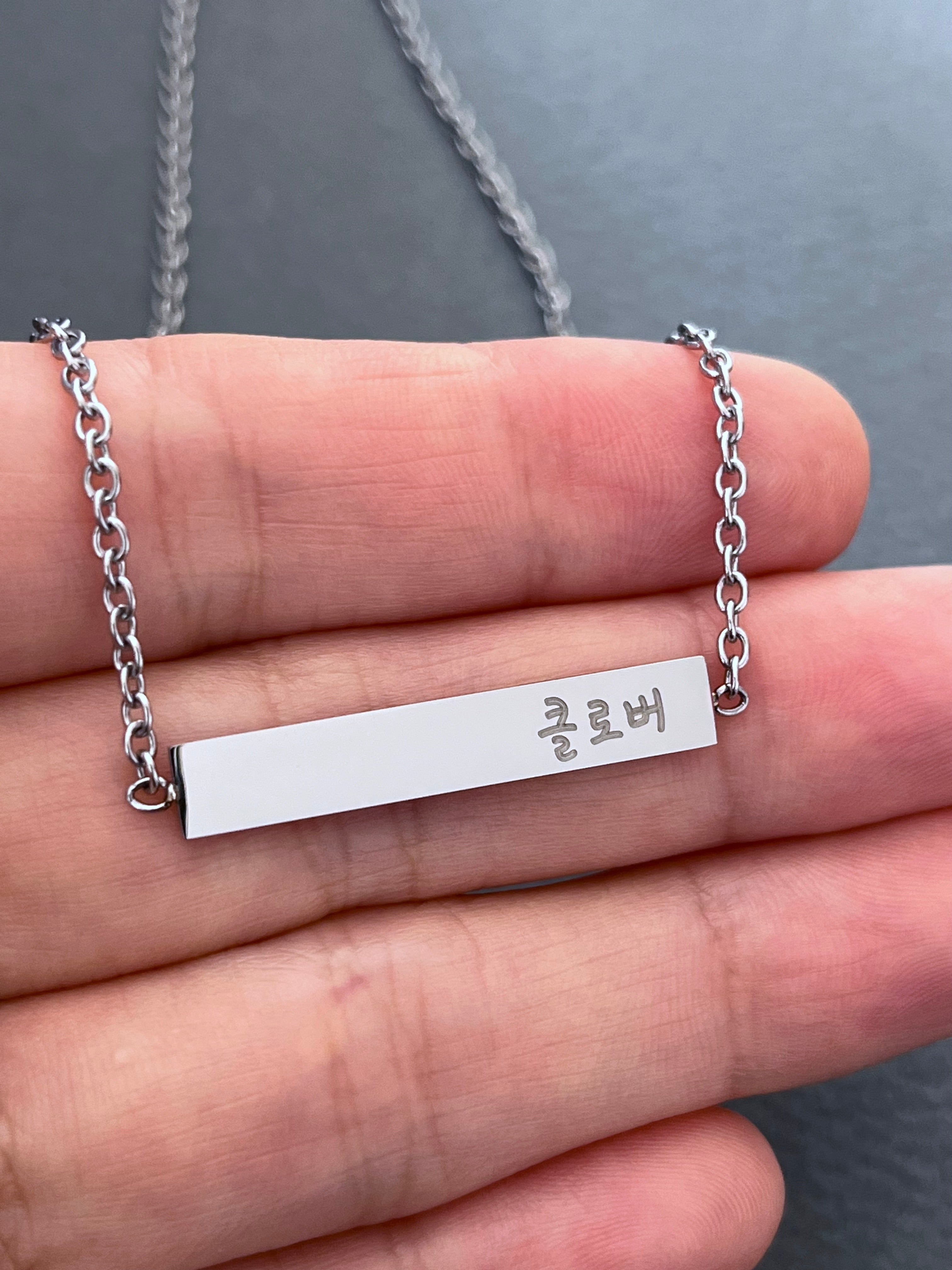 Personalized Korean Name Bar Stainless Steel Necklace - Custom Korean Necklace - Korea Gifts - Korean Characters - Hangul