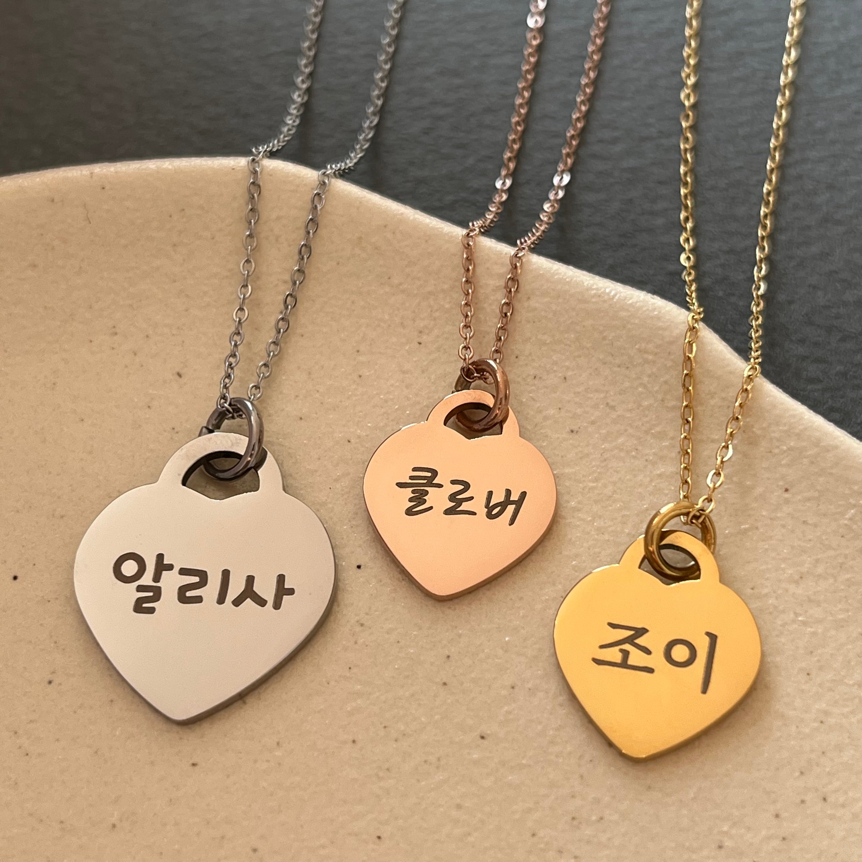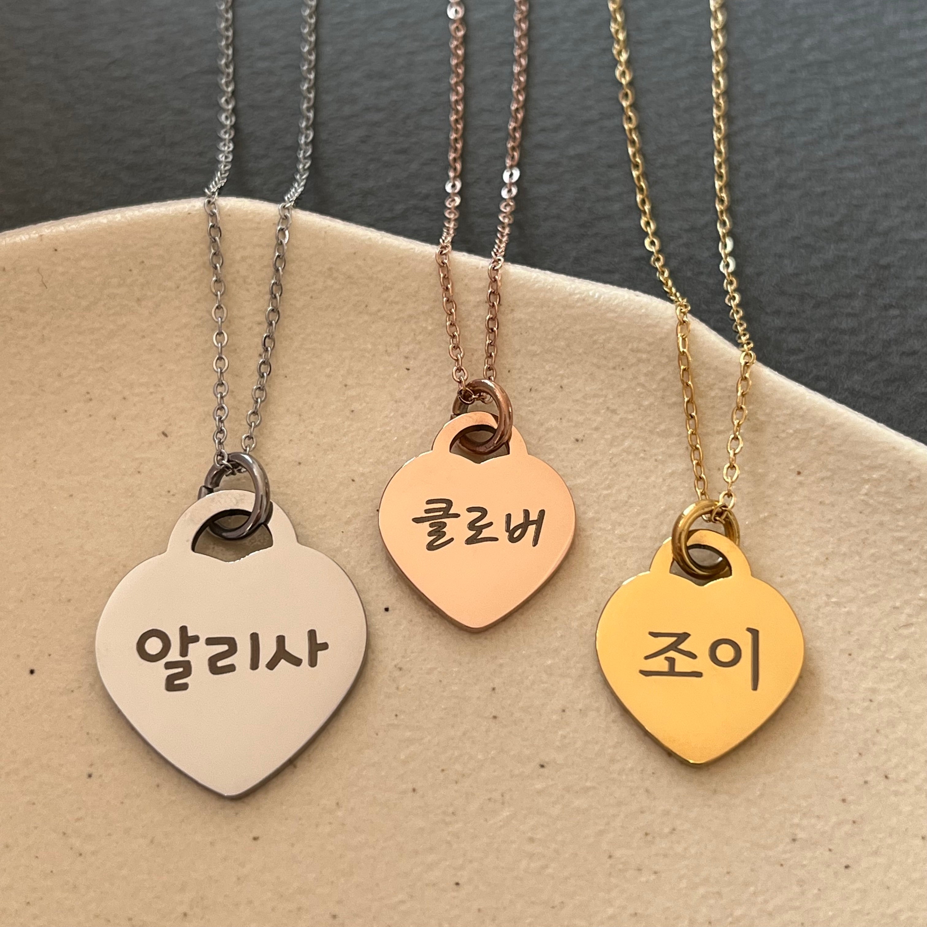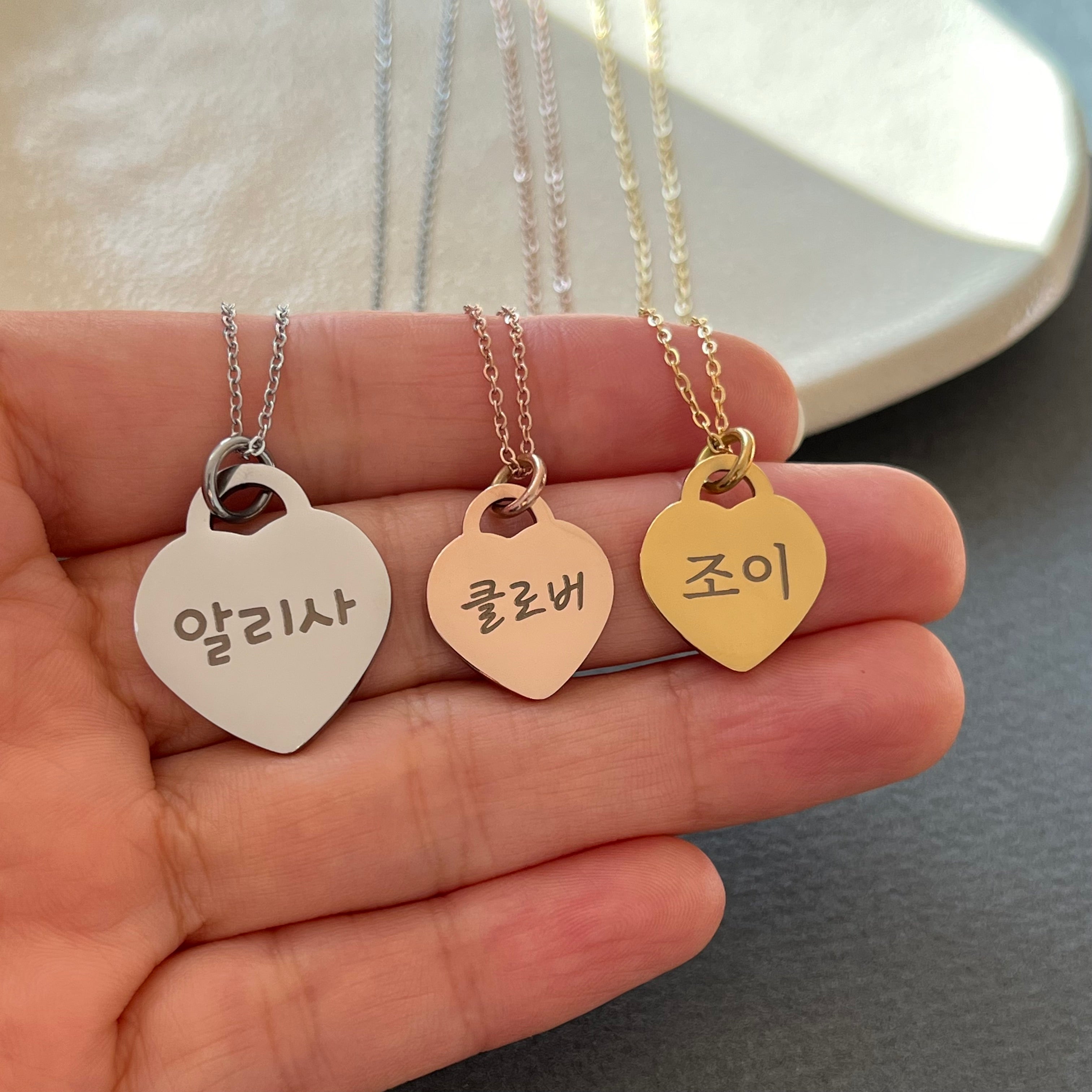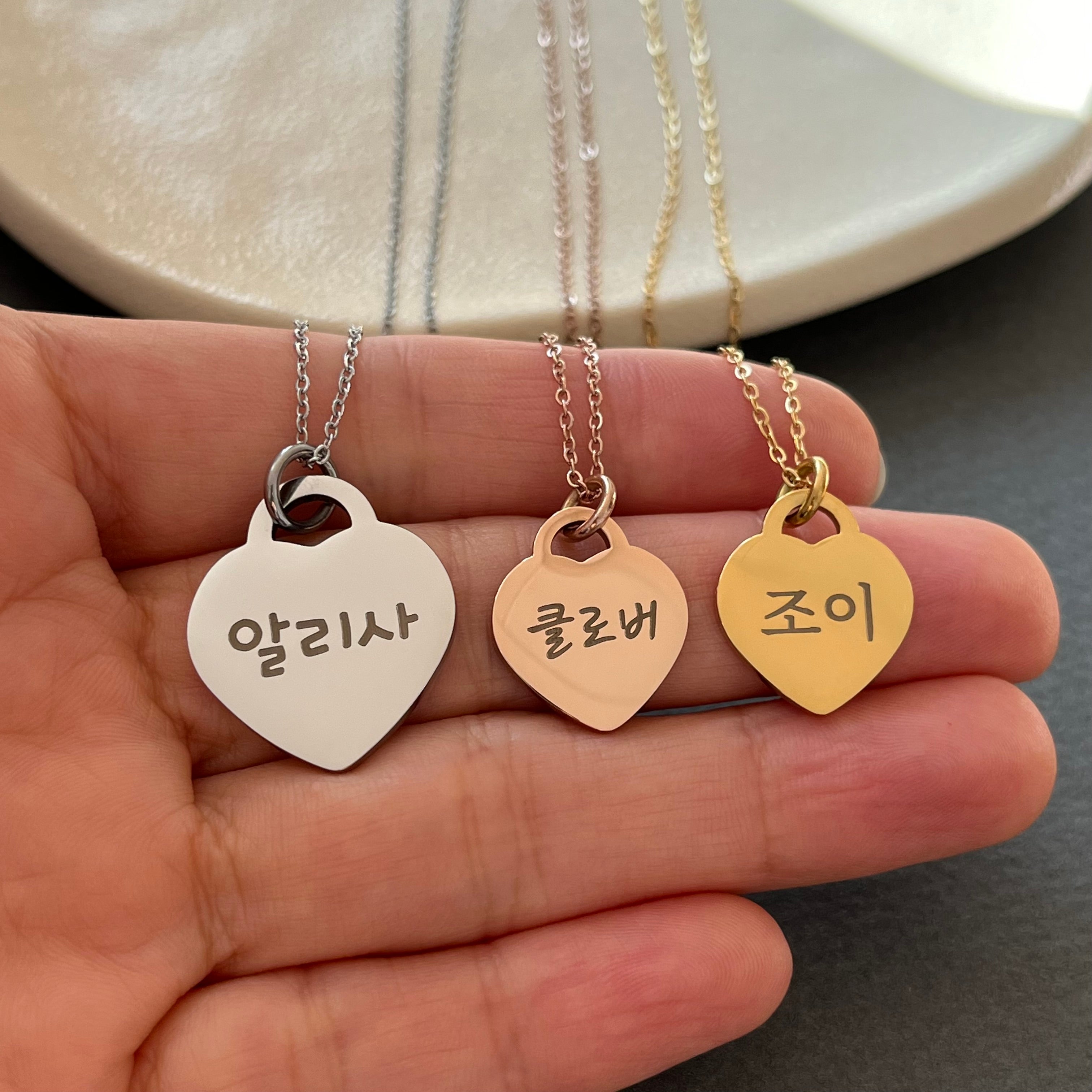 Personalized Korean Name Heart Stainless Steel Necklace - Custom Korean Necklace - Korea Jewelry - Korea Gifts - Korean Characters - Hangul