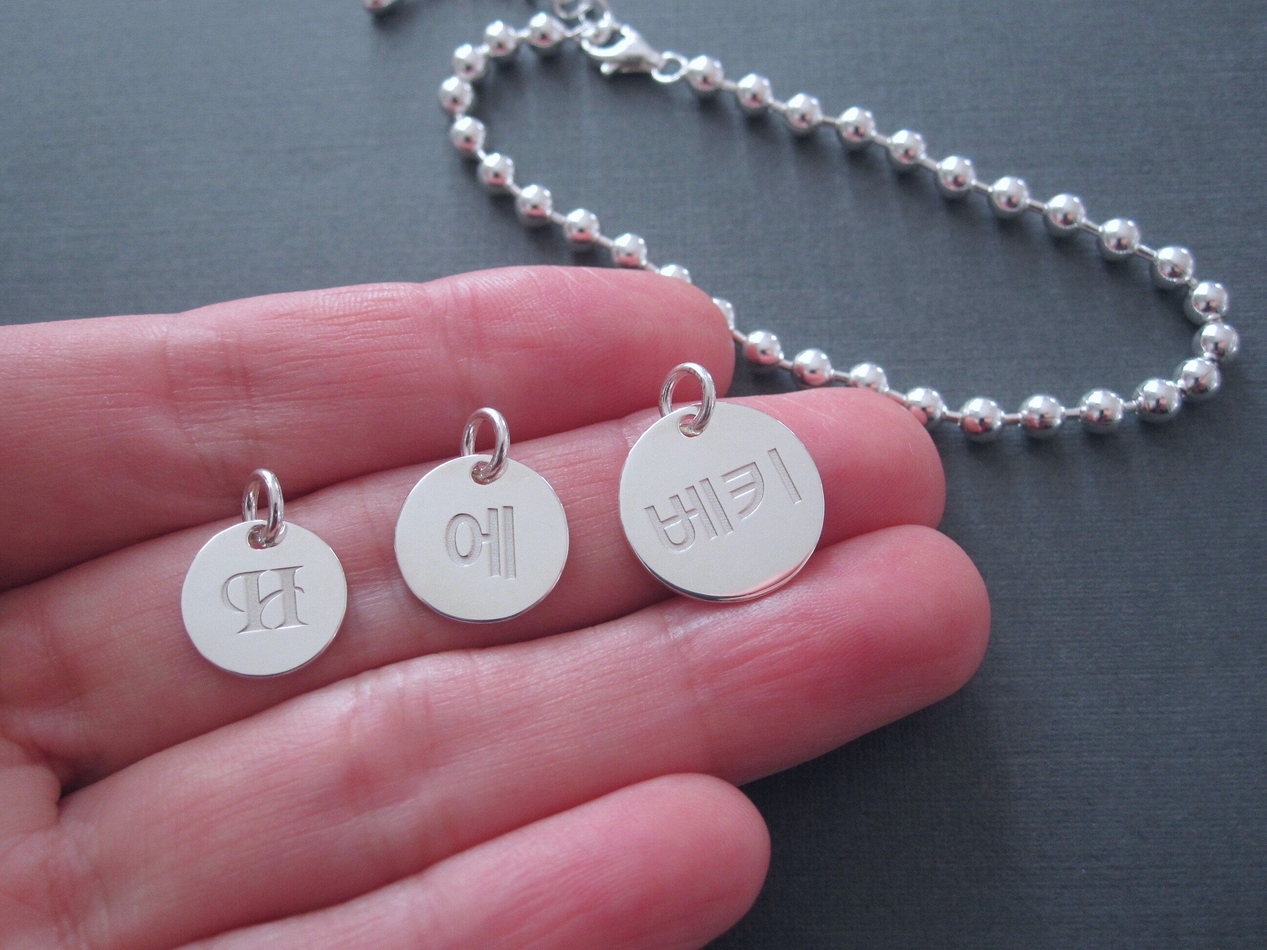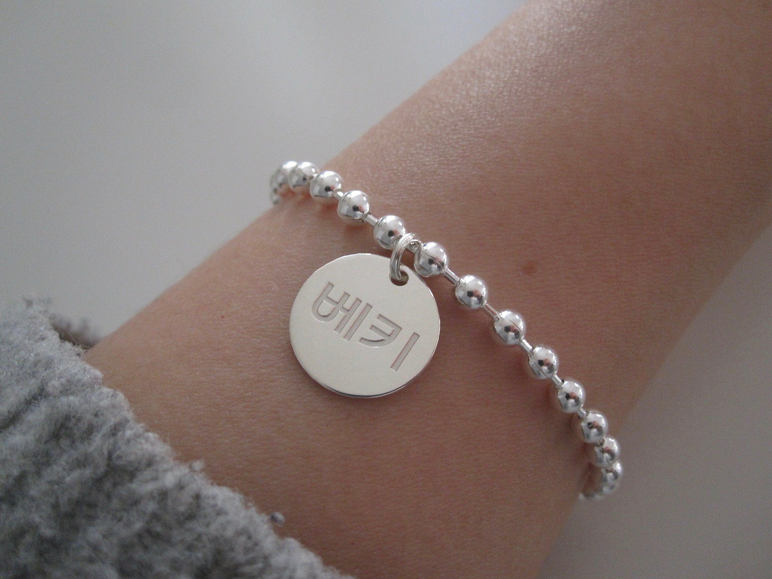 Personalized Korean Name Round Charm Sterling Silver Bracelet - Custom Korean Bracelet - Korea Gifts - Korean Characters - Hangul