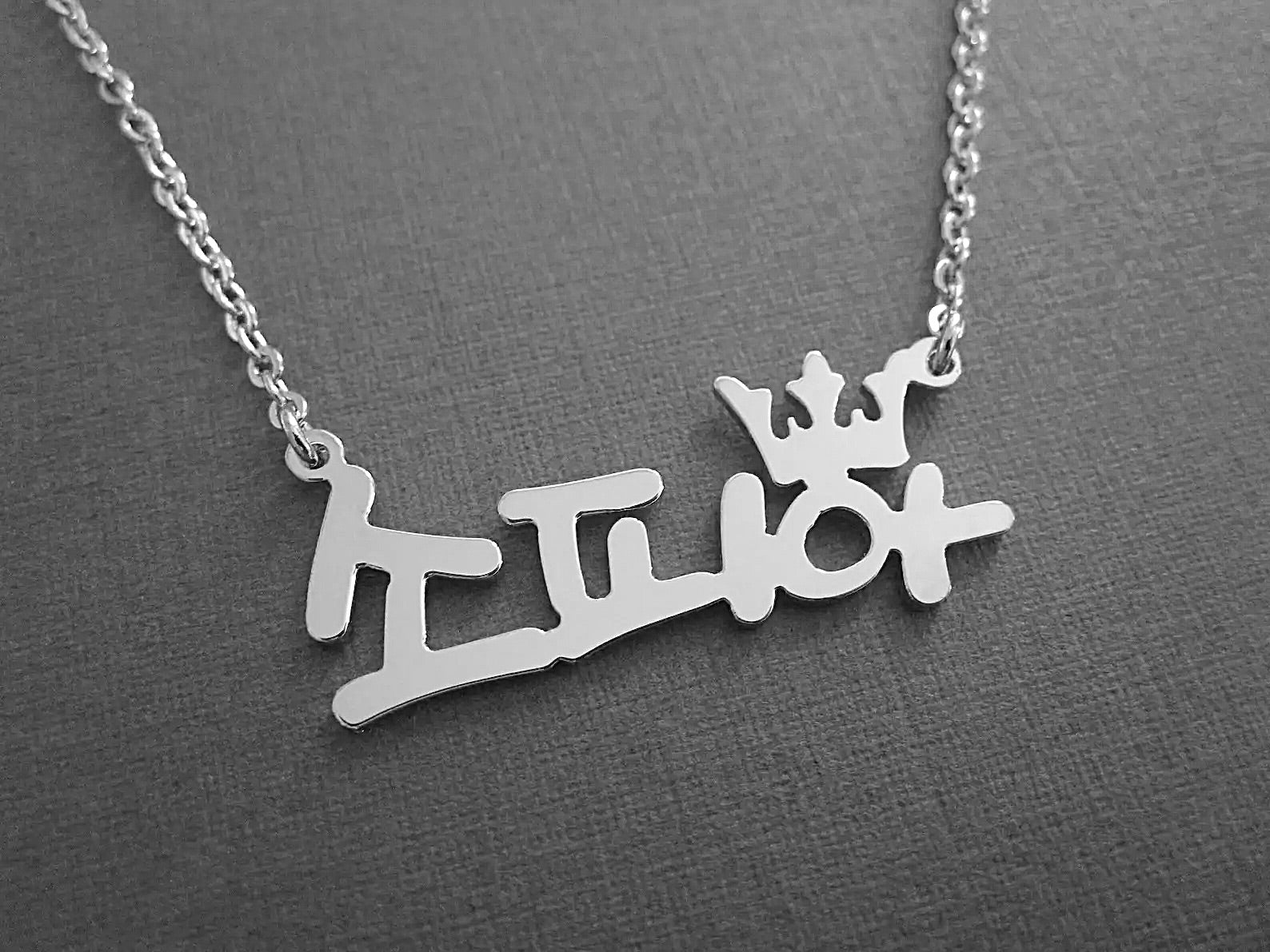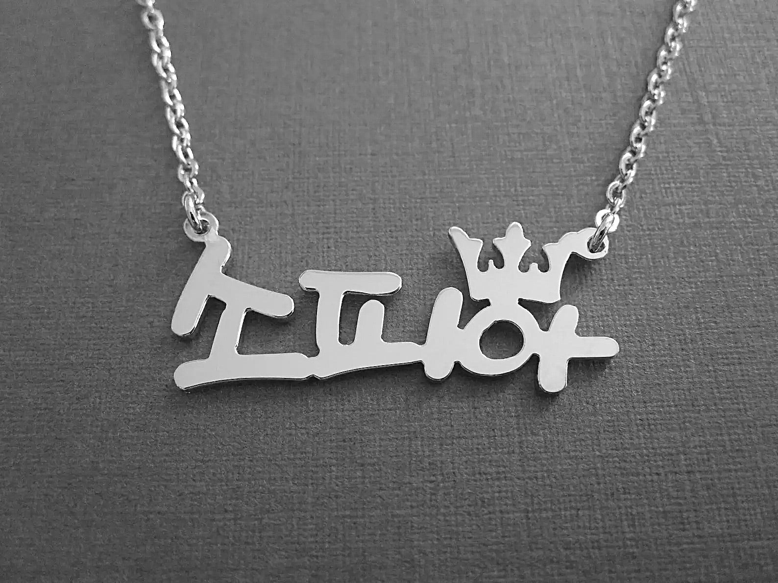Personalized Korean Name With A Crown Sterling Silver Necklace - Custom Korean Necklace - Korea Gifts - Korean Characters -Hangul