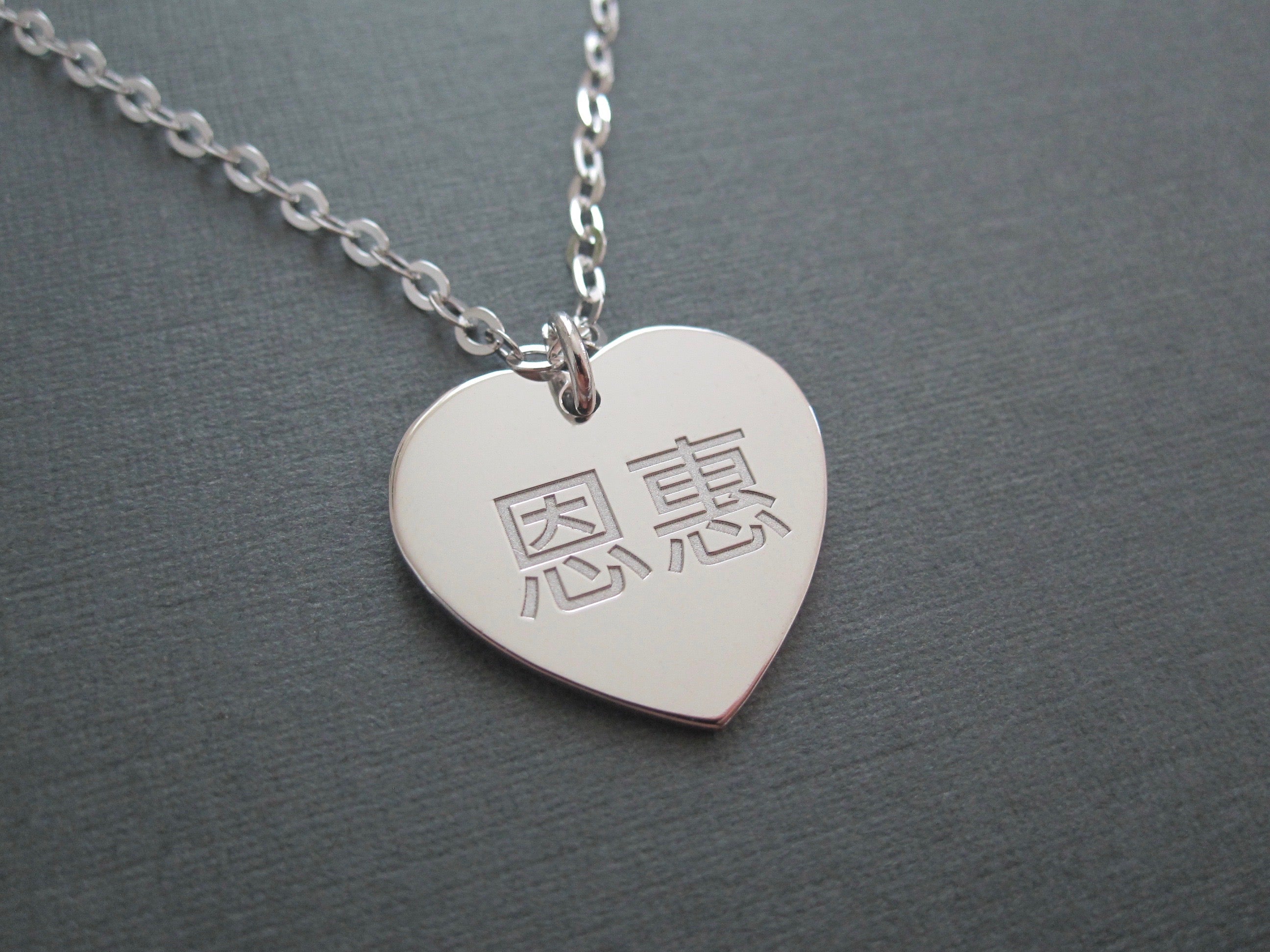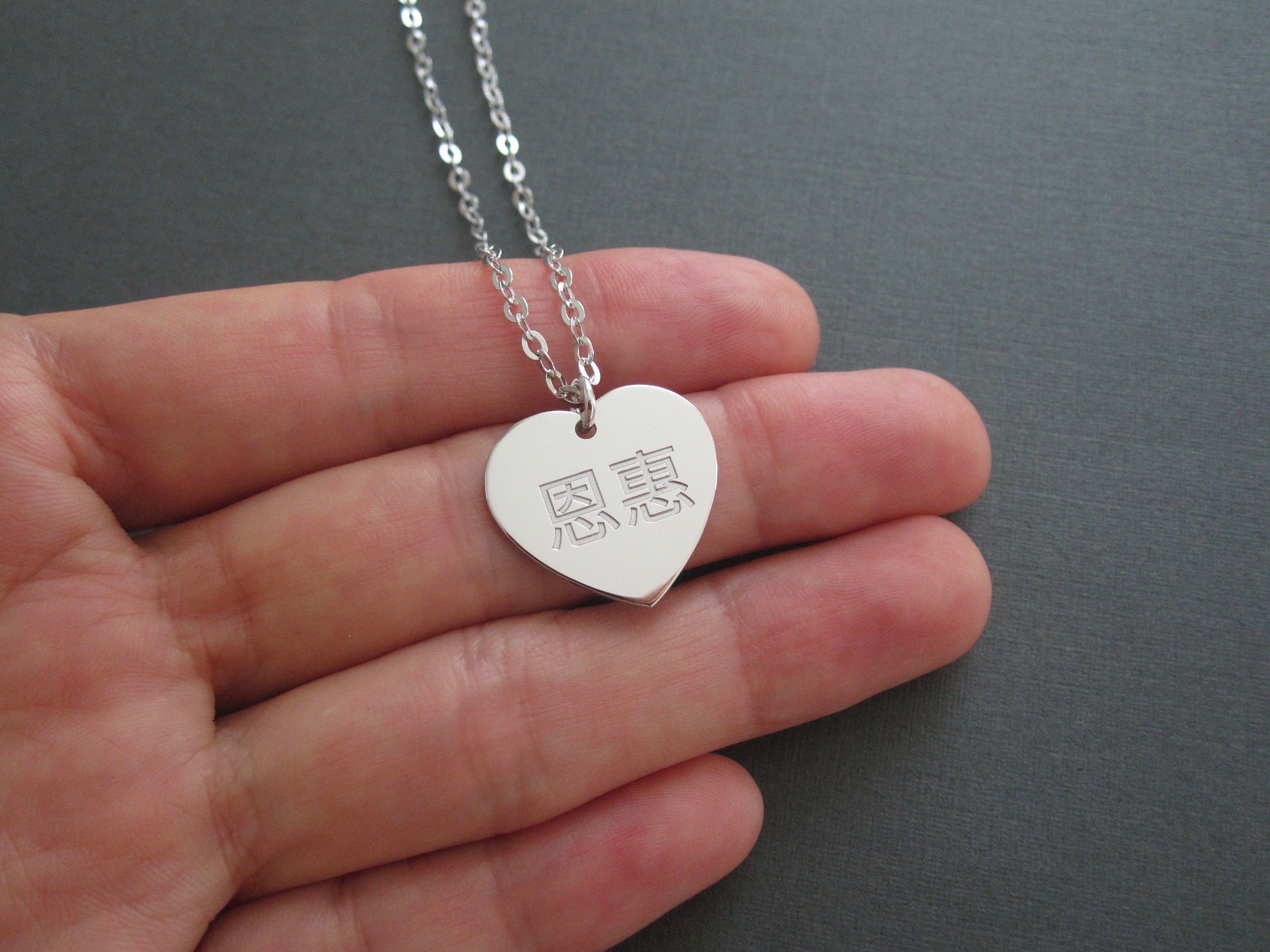 Personalized Chinese Name Heart Sterling Silver Necklace - Custom Chinese Necklace - Chinese Characters - China Gifts