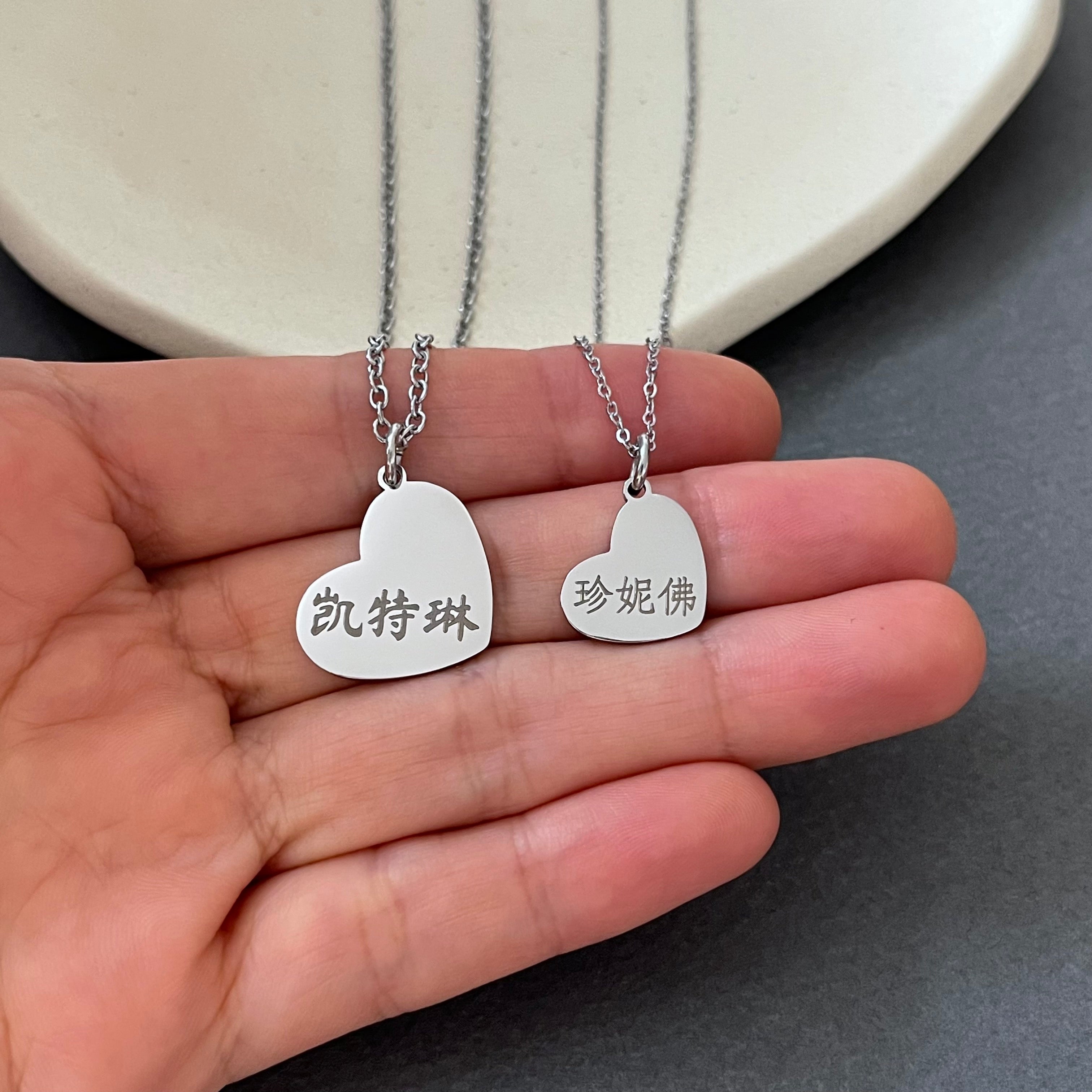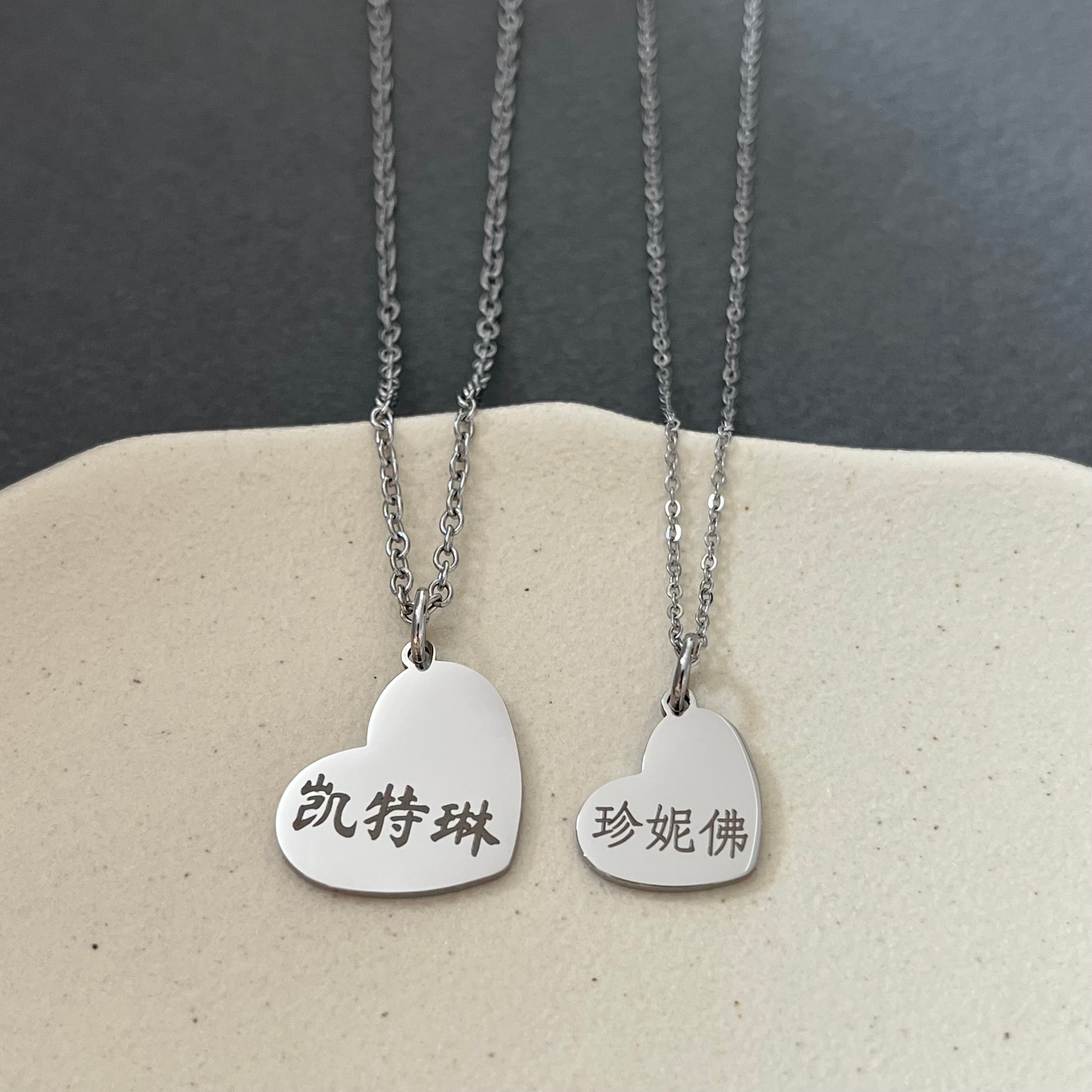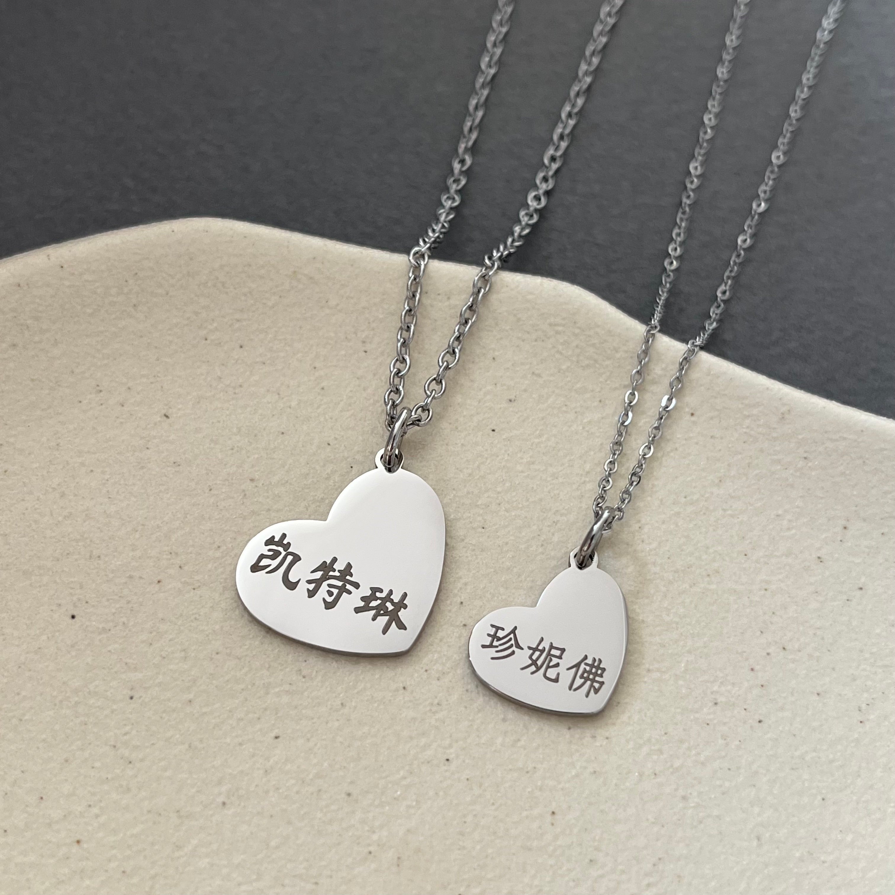 Personalized Chinese Name Tilted Heart Stainless Steel Necklace - Custom Chinese Necklace - China Gifts - Chinese Characters