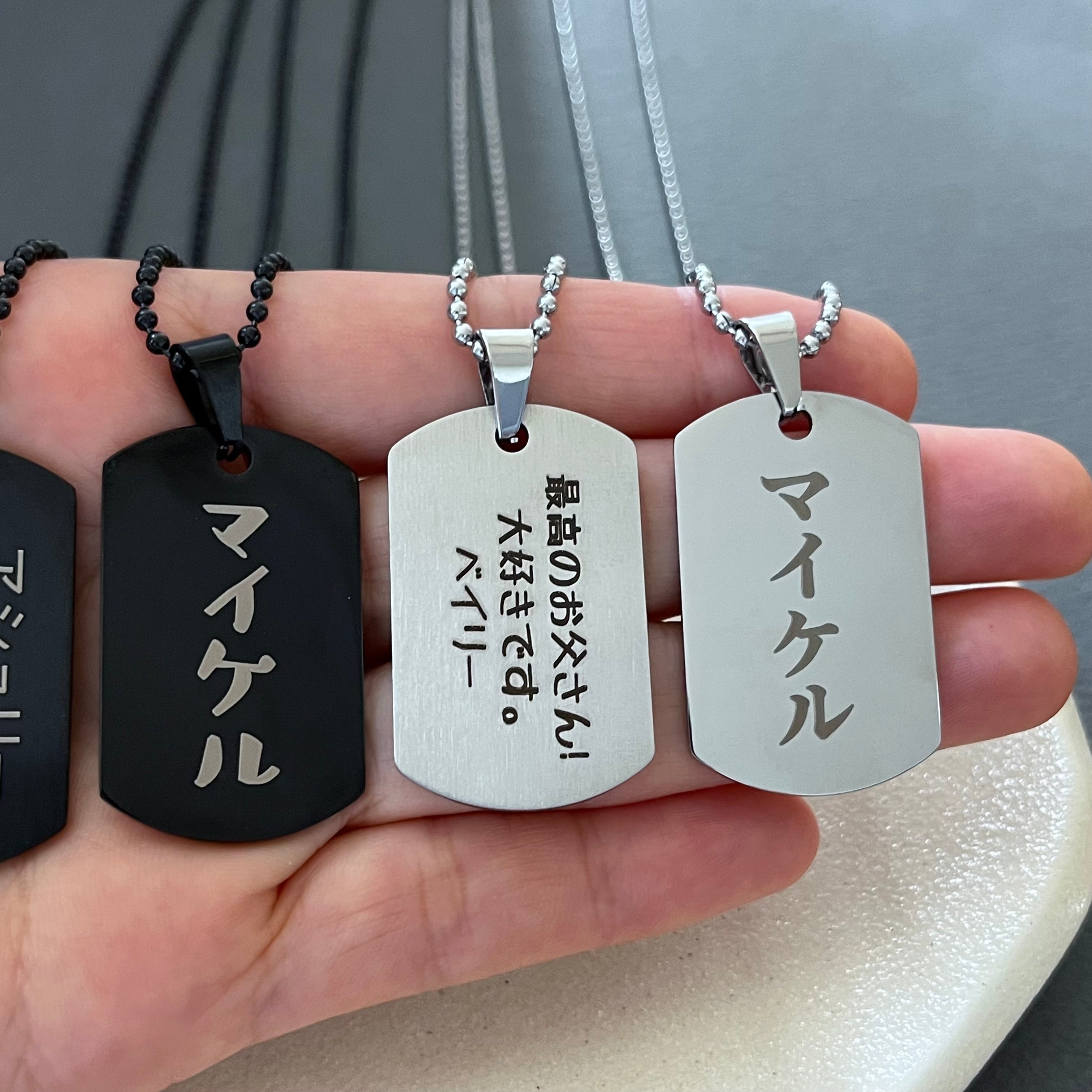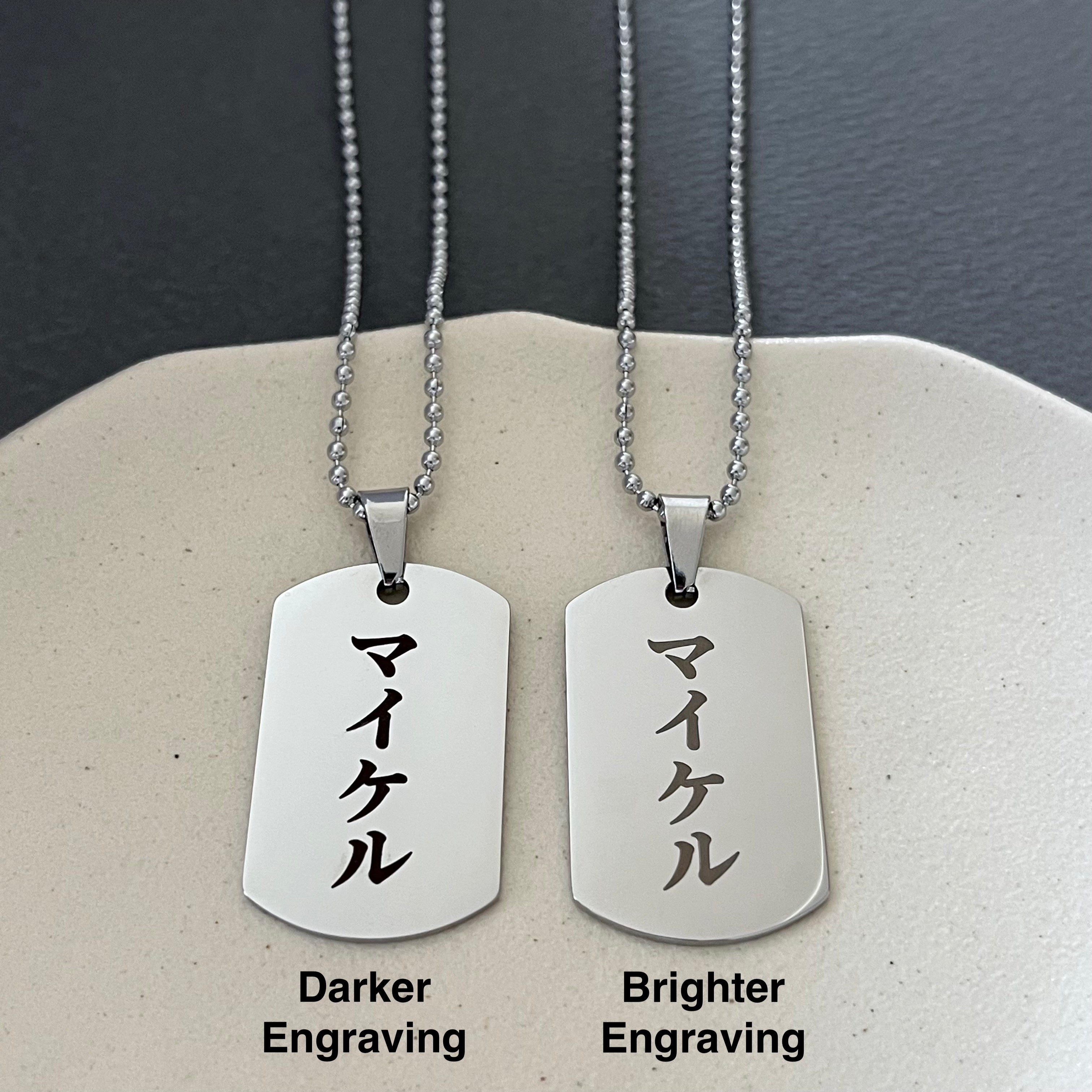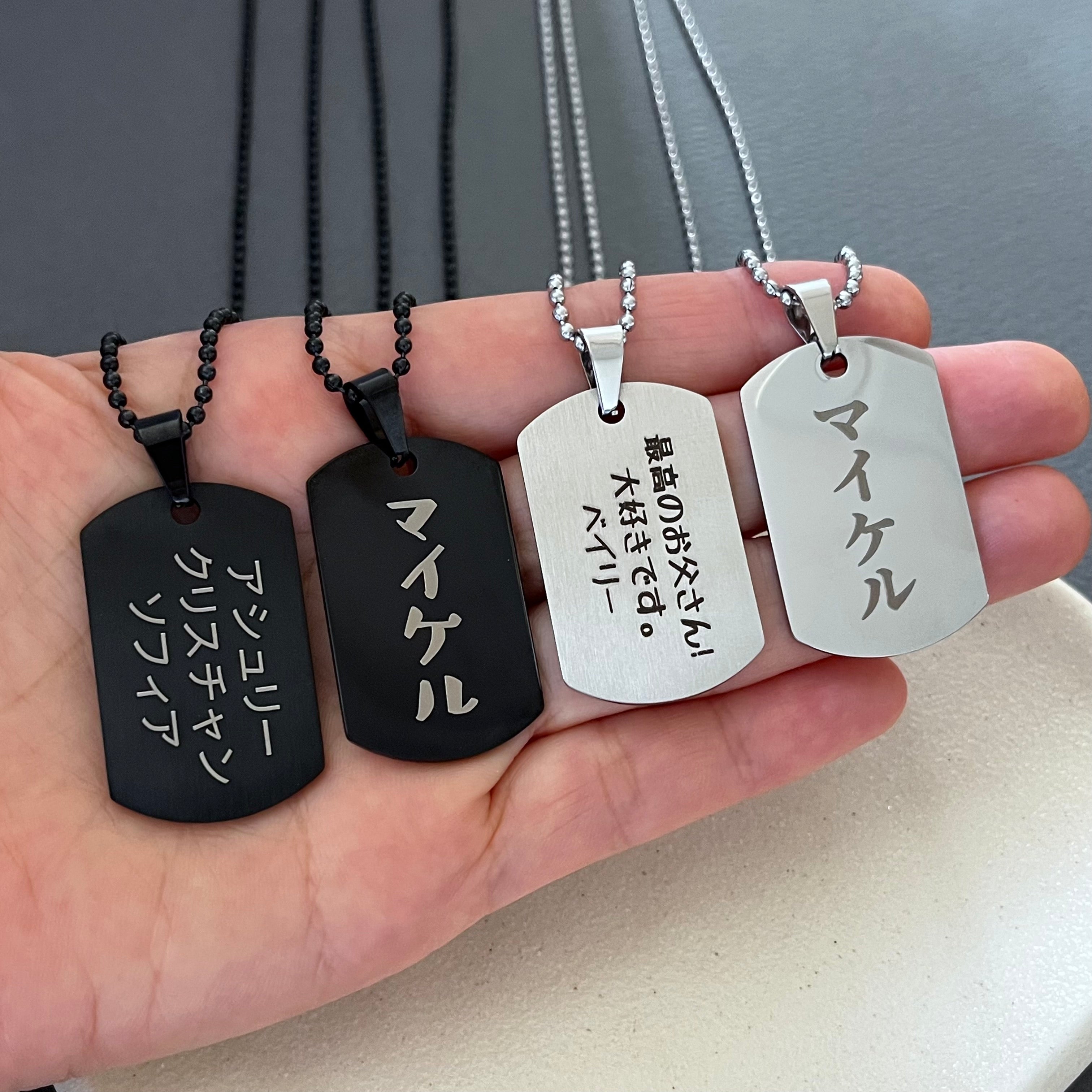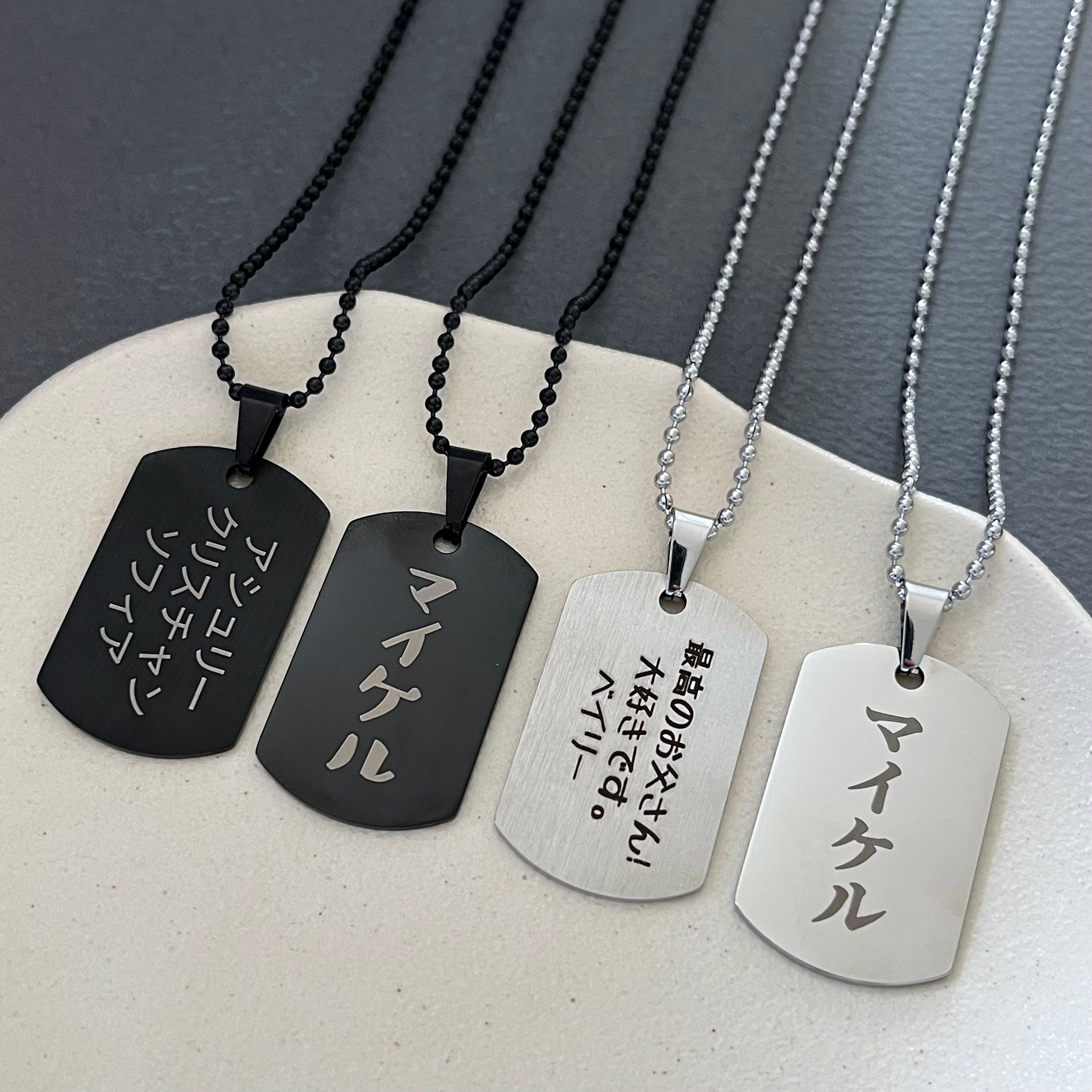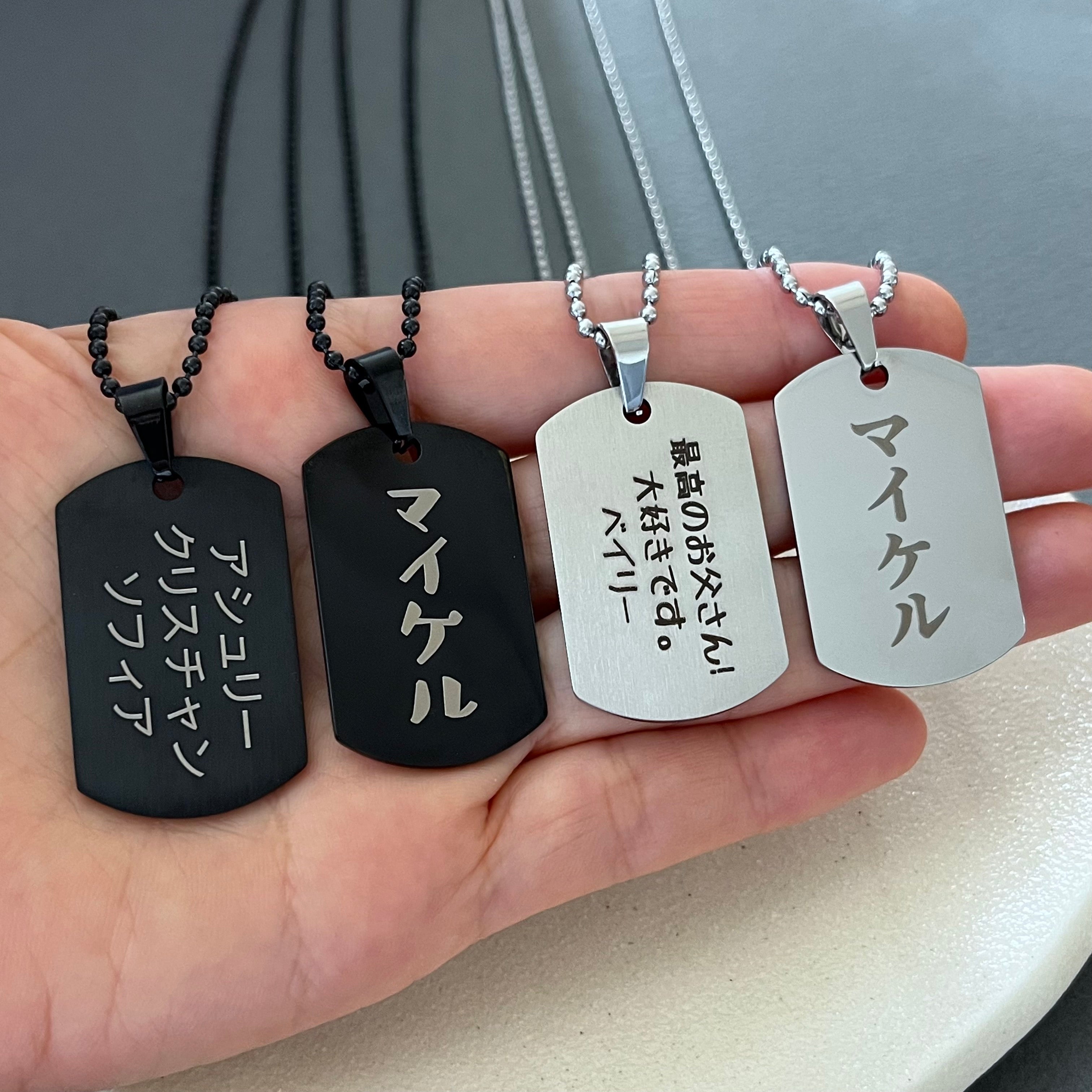 Personalized Japanese Name Dog Tag Stainless Steel Necklace - Custom Japanese Men Necklace -Japan Gifts - Japanese Characters - Kana - Kanji