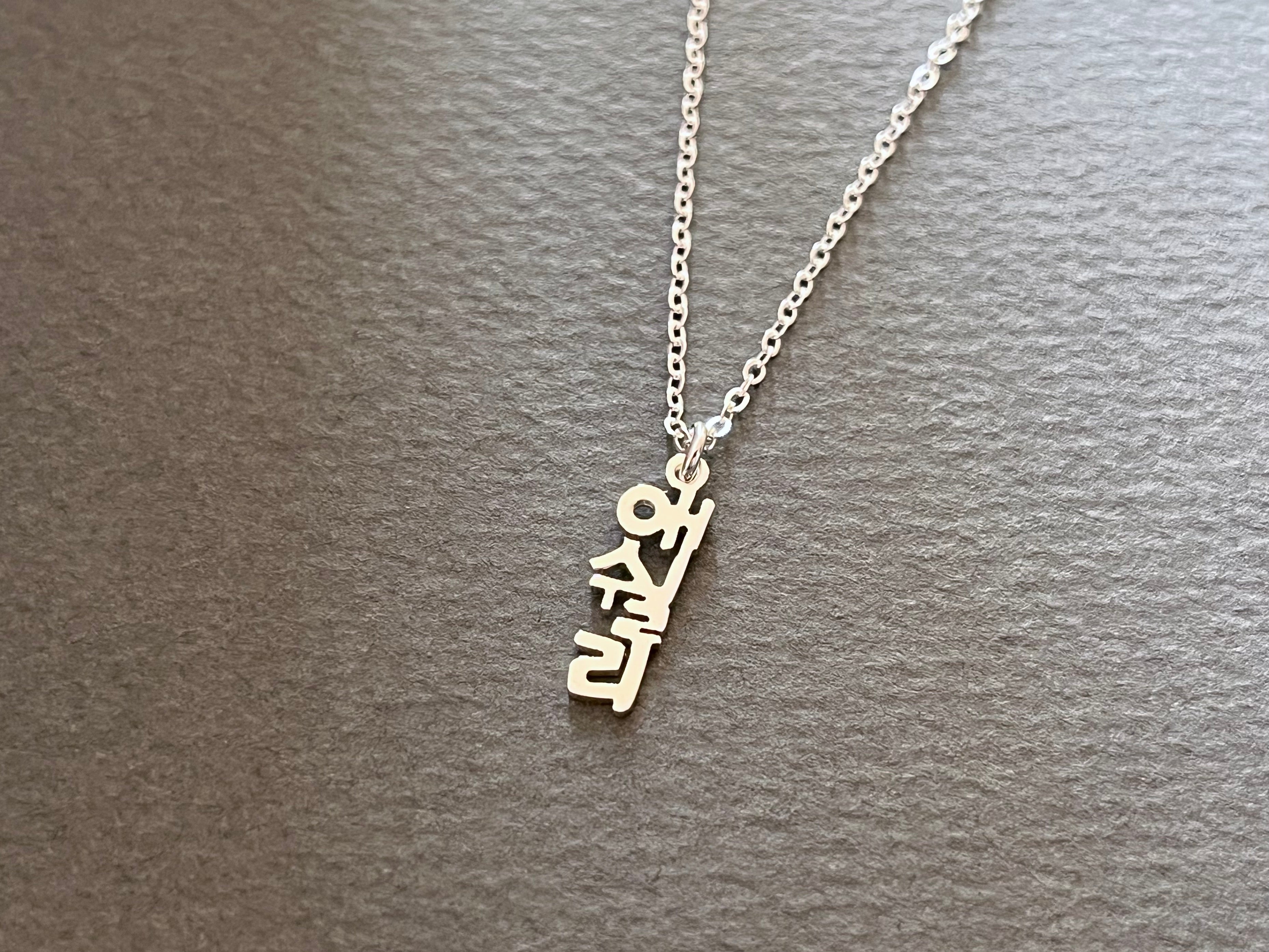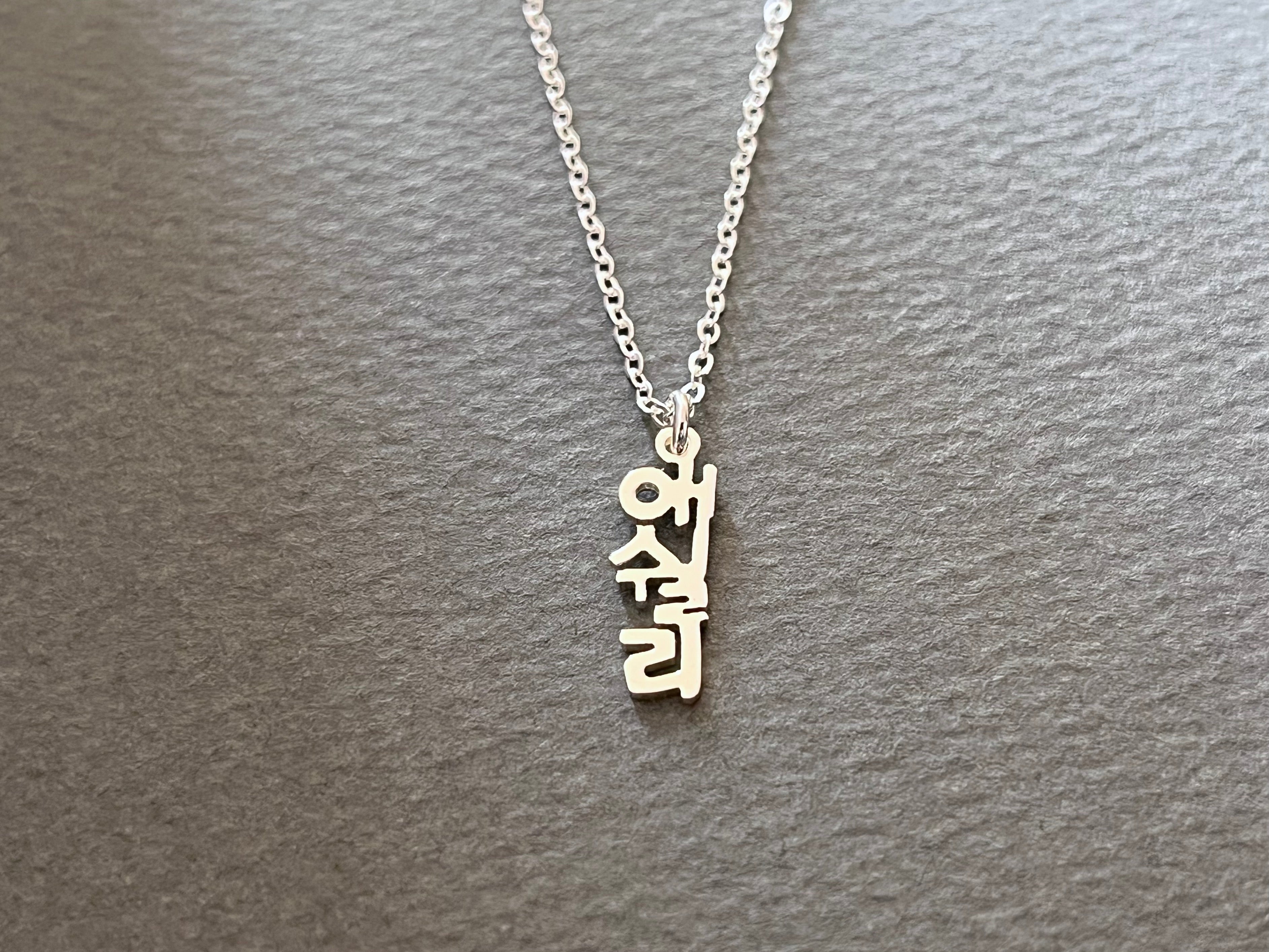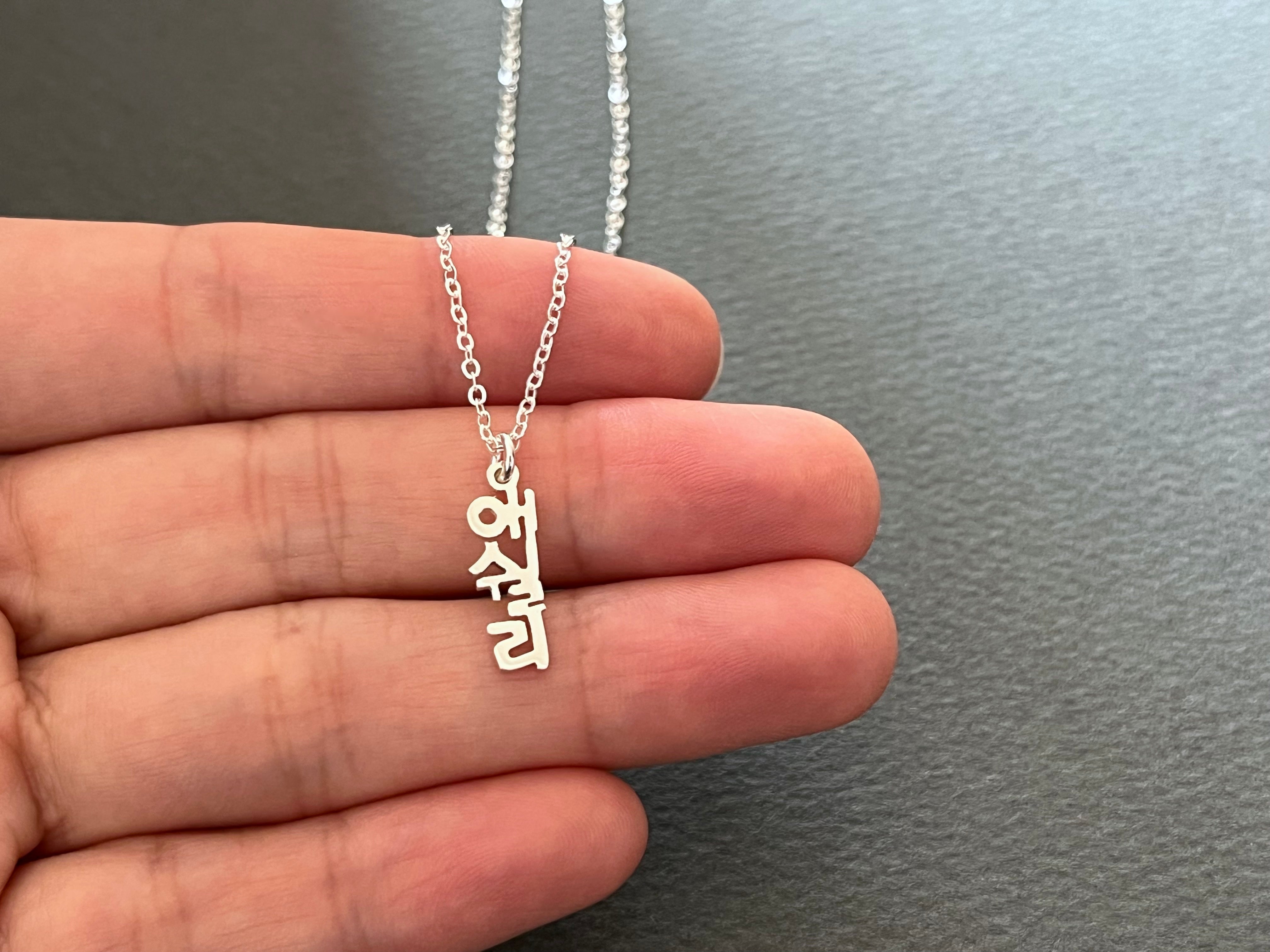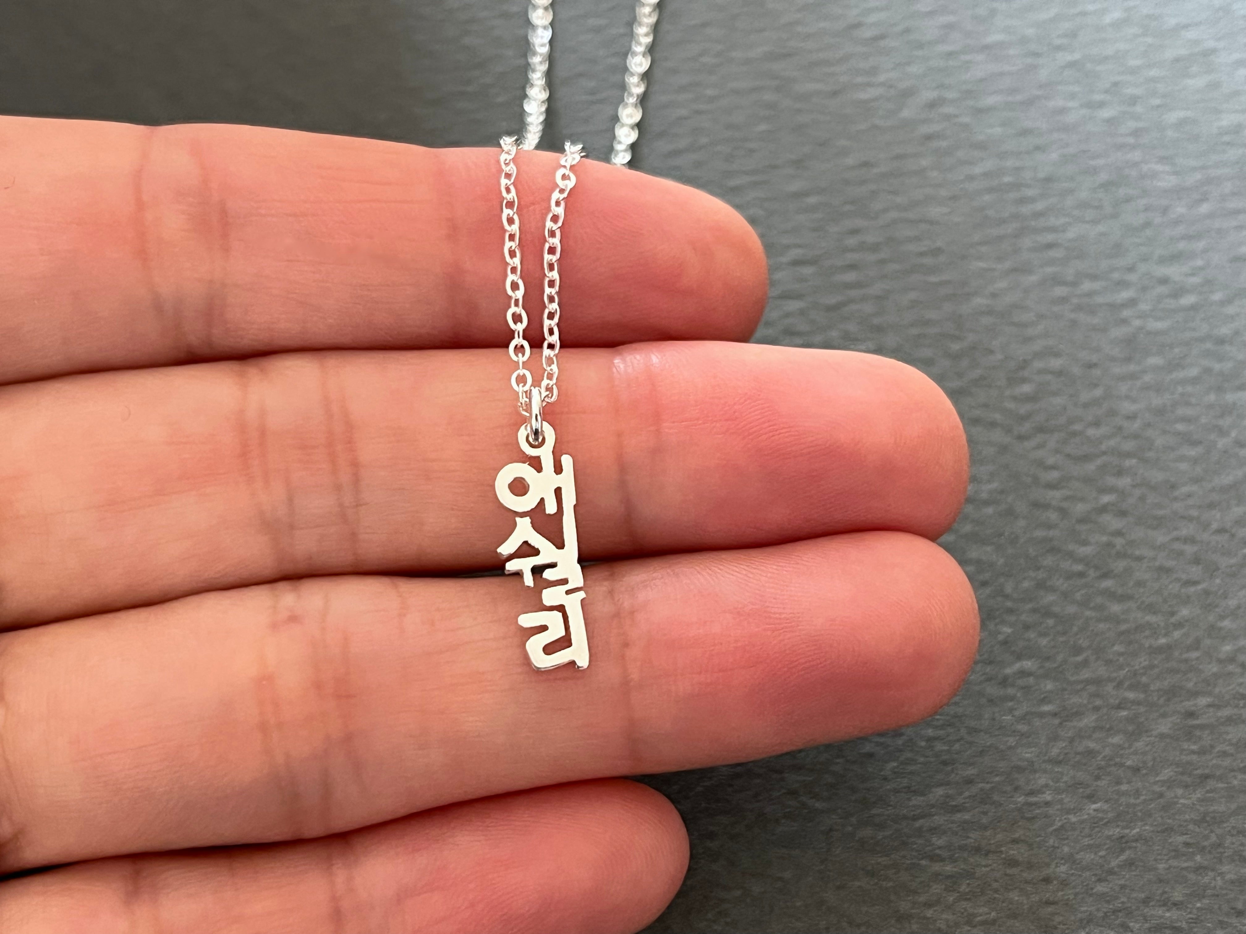 Personalized Korean Name Vertical DAINTY Mini Size Sterling Silver Necklace - Custom Korean Necklace - Korea Gifts - Korean Characters