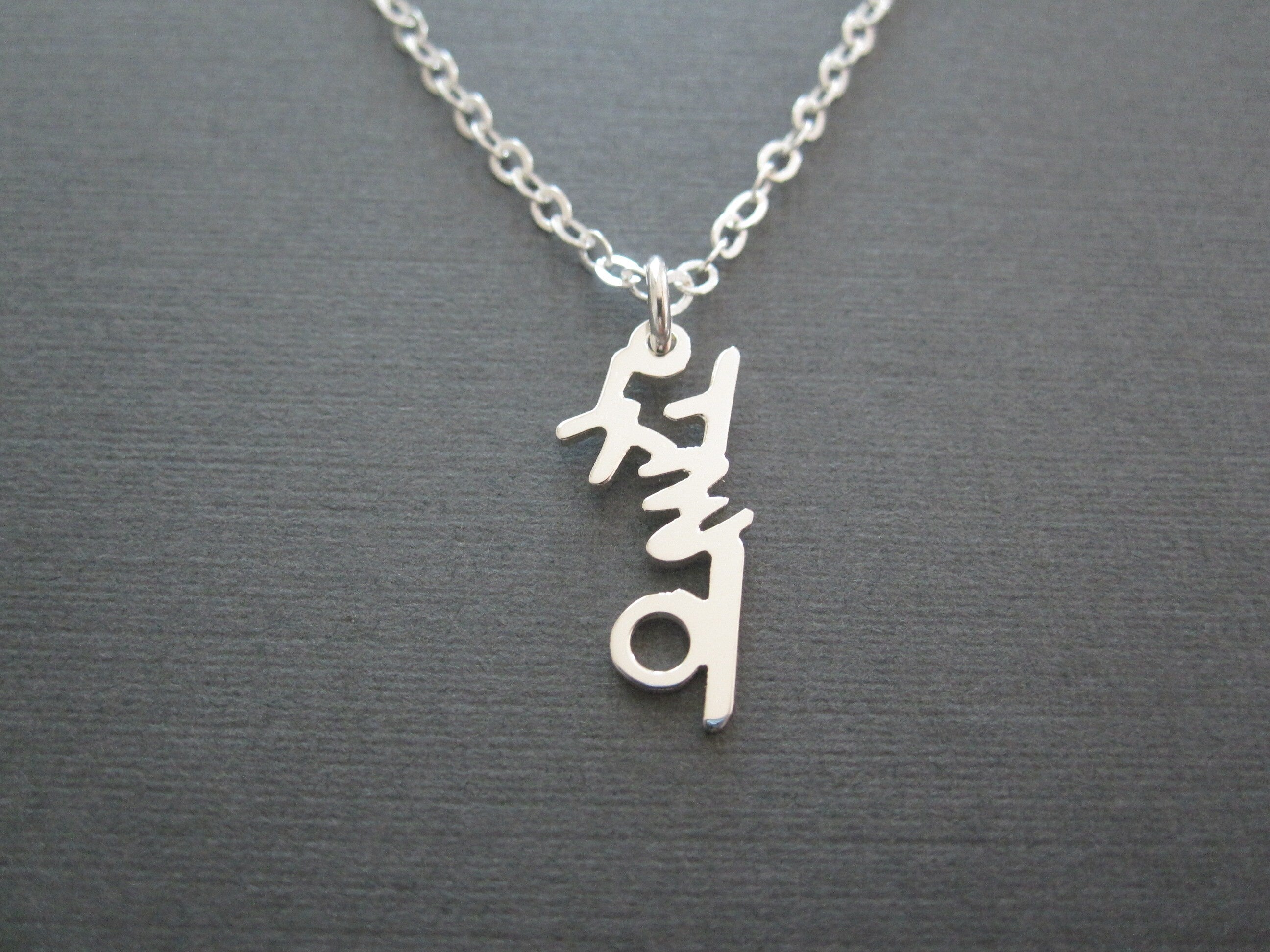 The sample necklace in the 1st to 3rd pictures is made with a 3 Korean characters in the font style #2. The sample necklace in the 4th & 5th pictures is made with 2 Korean characters in the font style #6. Please check the font options in the pictures. The size of each character can be different by the font style and the number of characters.