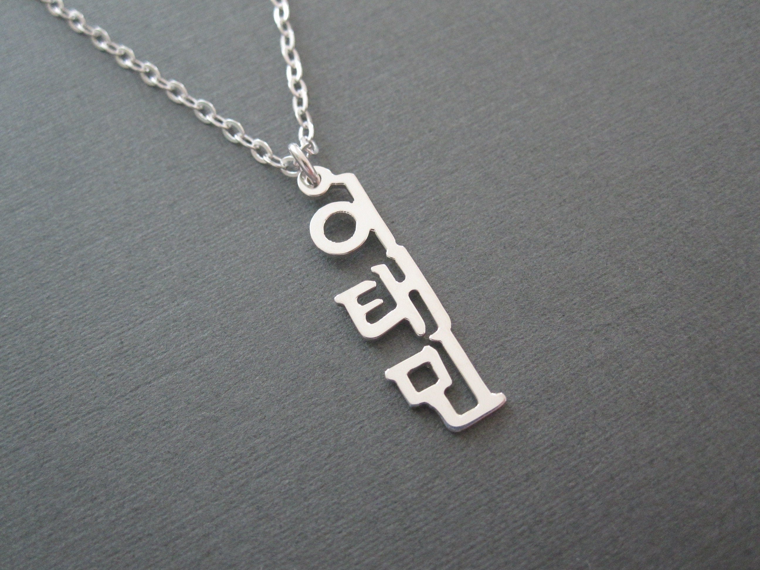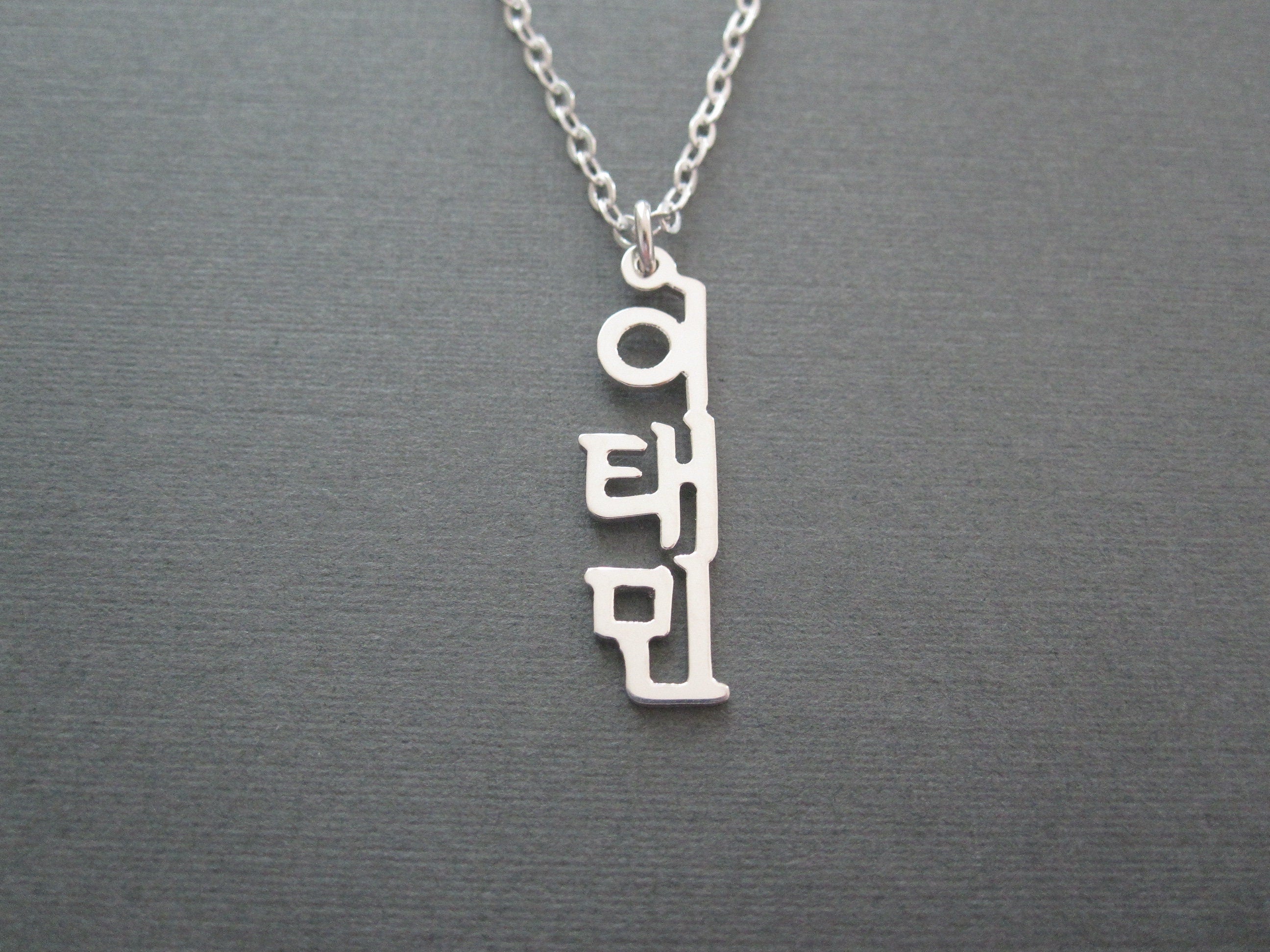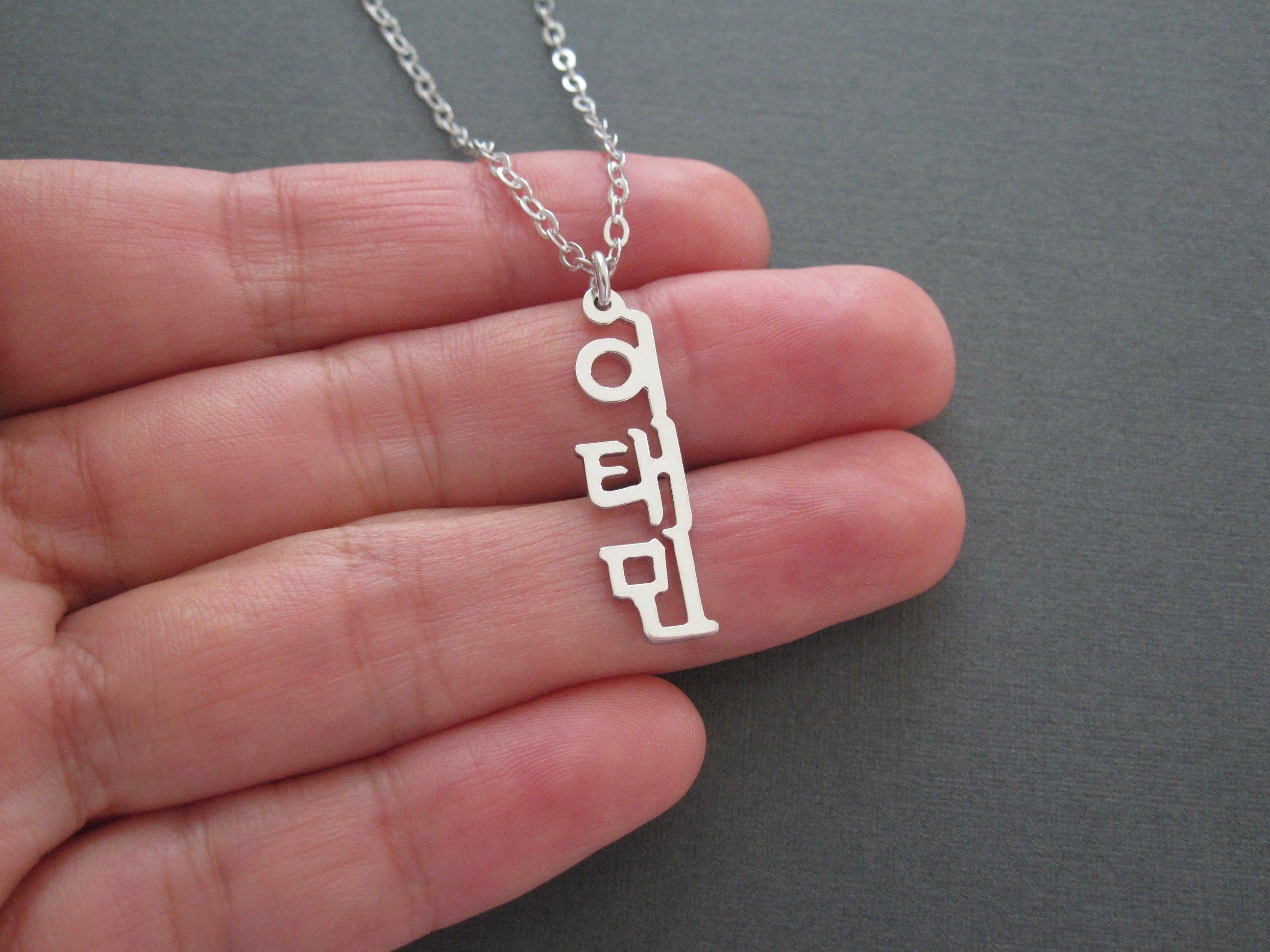 Personalized Korean Name Vertical Mini Size Sterling Silver Necklace - Custom Korean Necklace - Korea Gifts - Korean Characters - Hangul