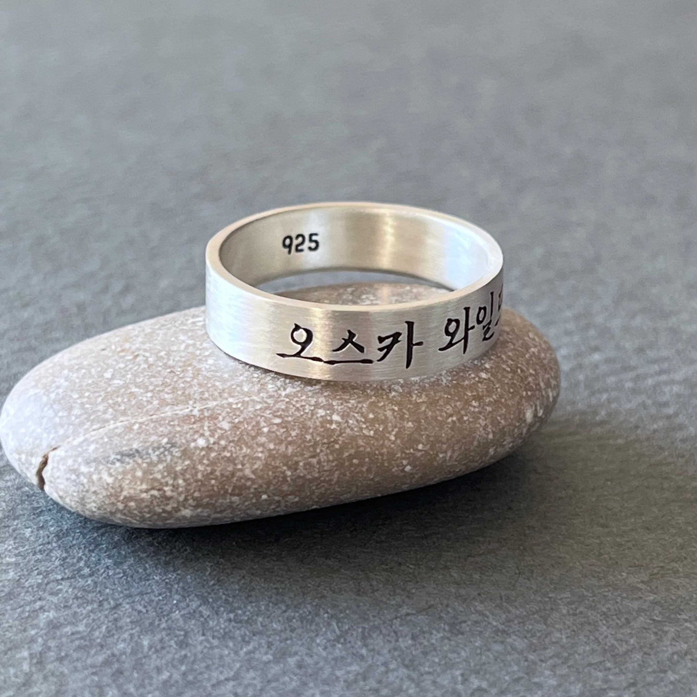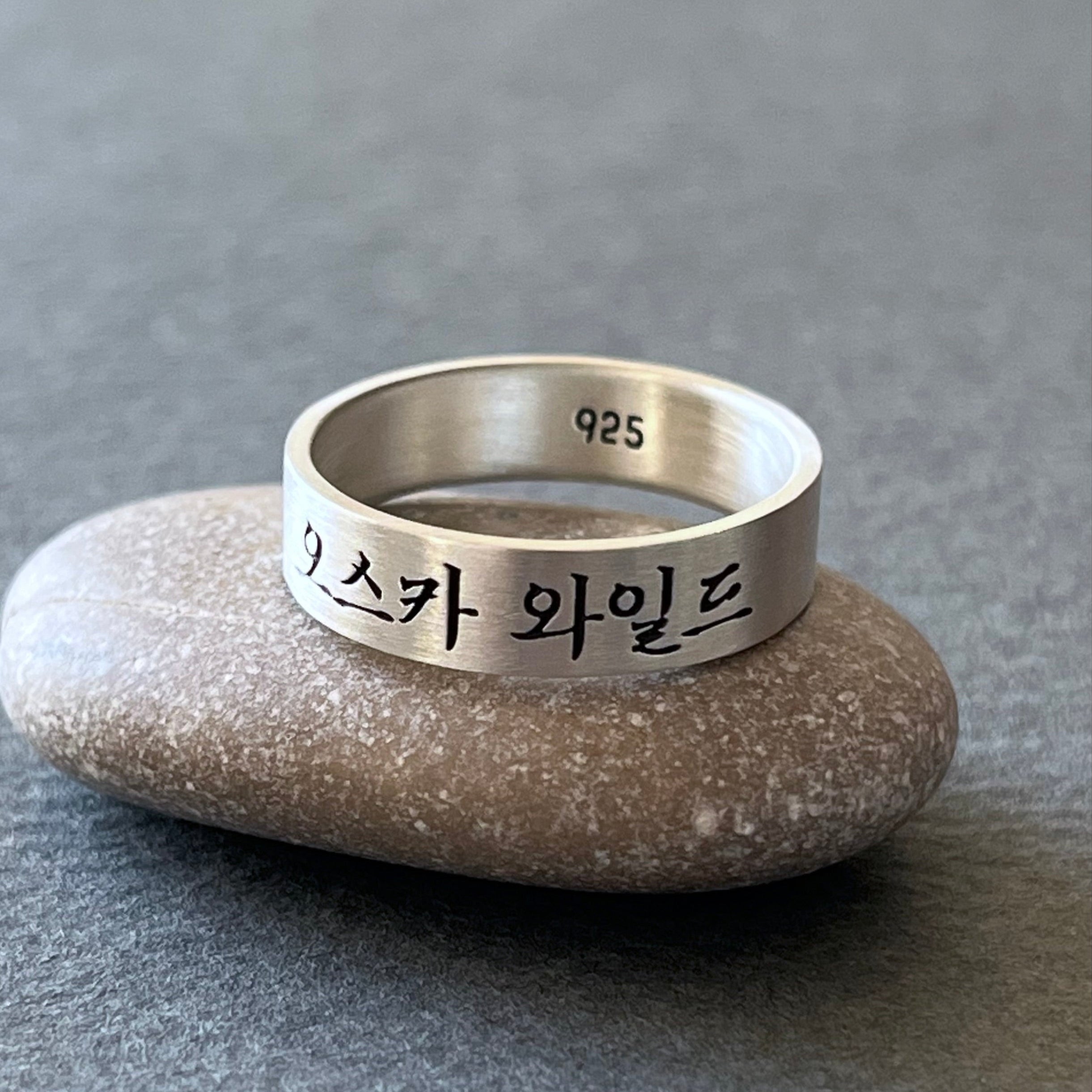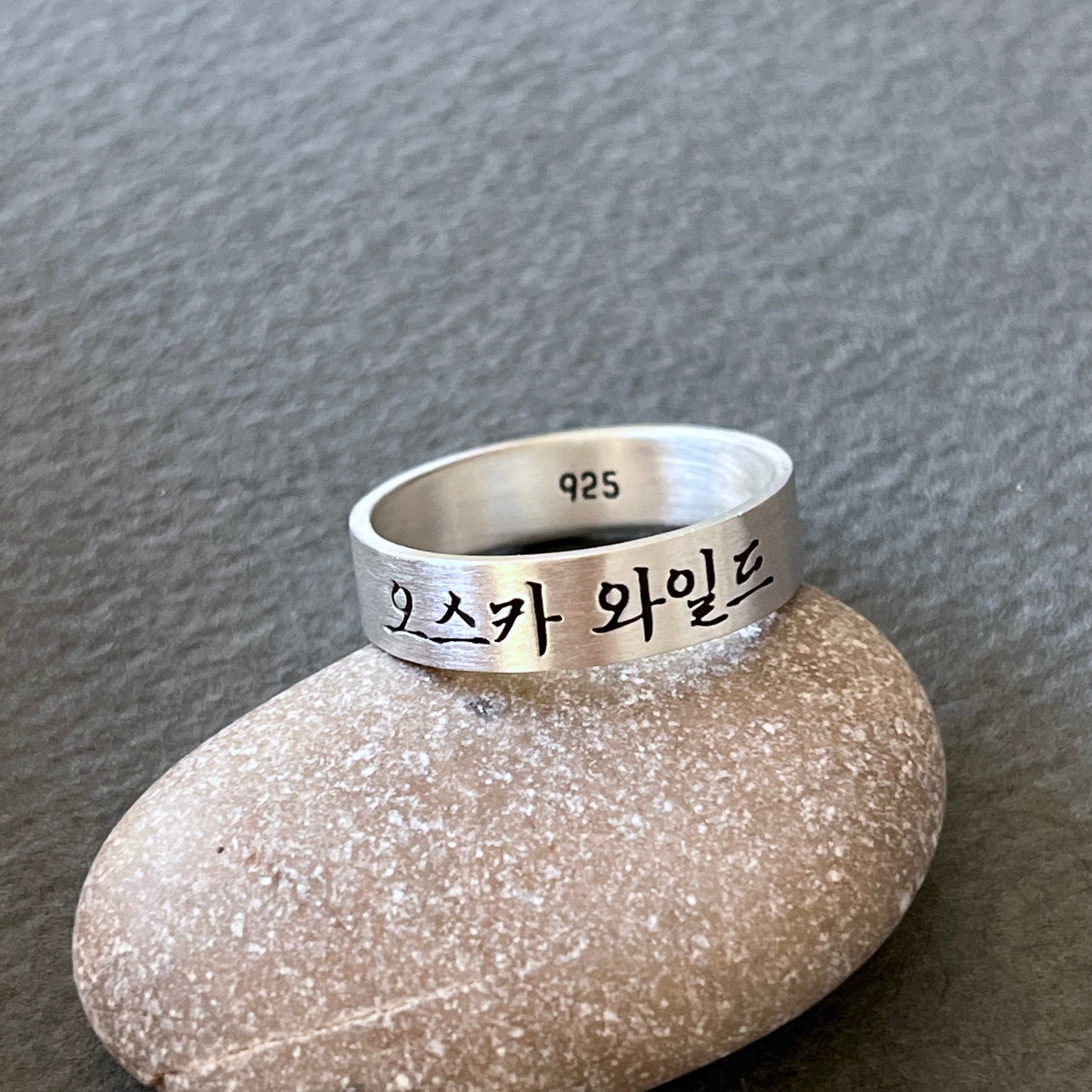 Personalized Korean Name 5 mm Burnished Matte Sterling Silver Band Ring - Custom Korean Ring - Korea Gifts - Korean Characters - Hangul
