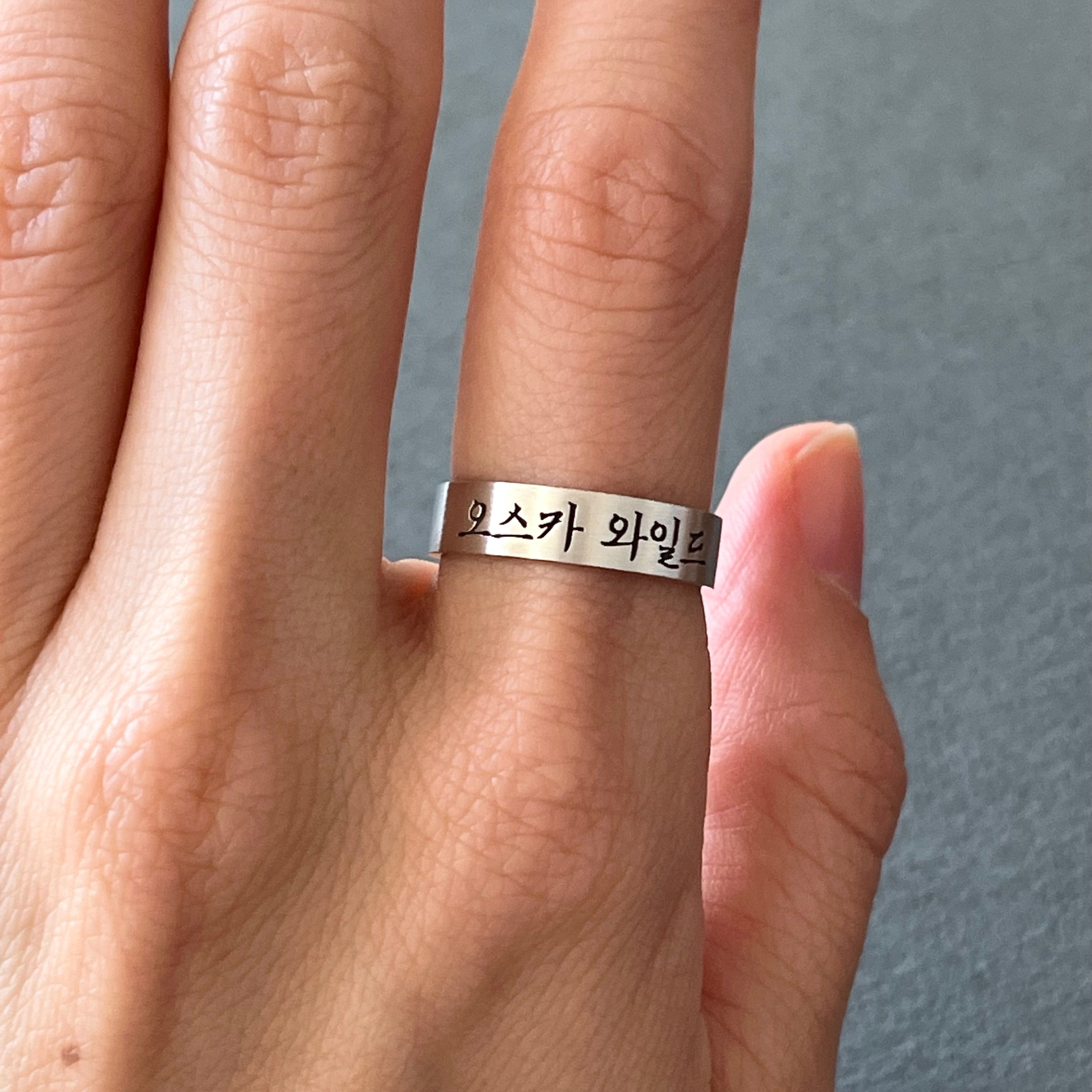 The sampling ring is engraved with Oscar Wilde in Korean in the font #8. Please check the font options in the pictures.