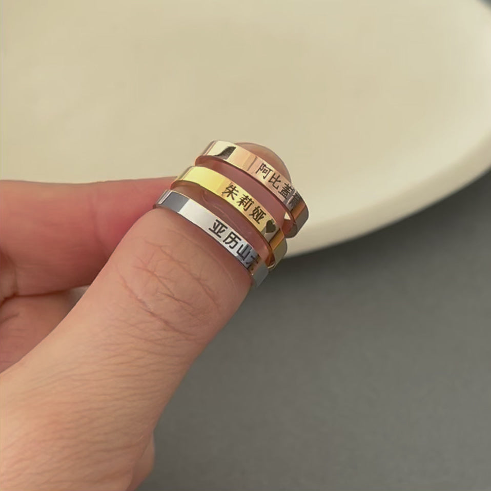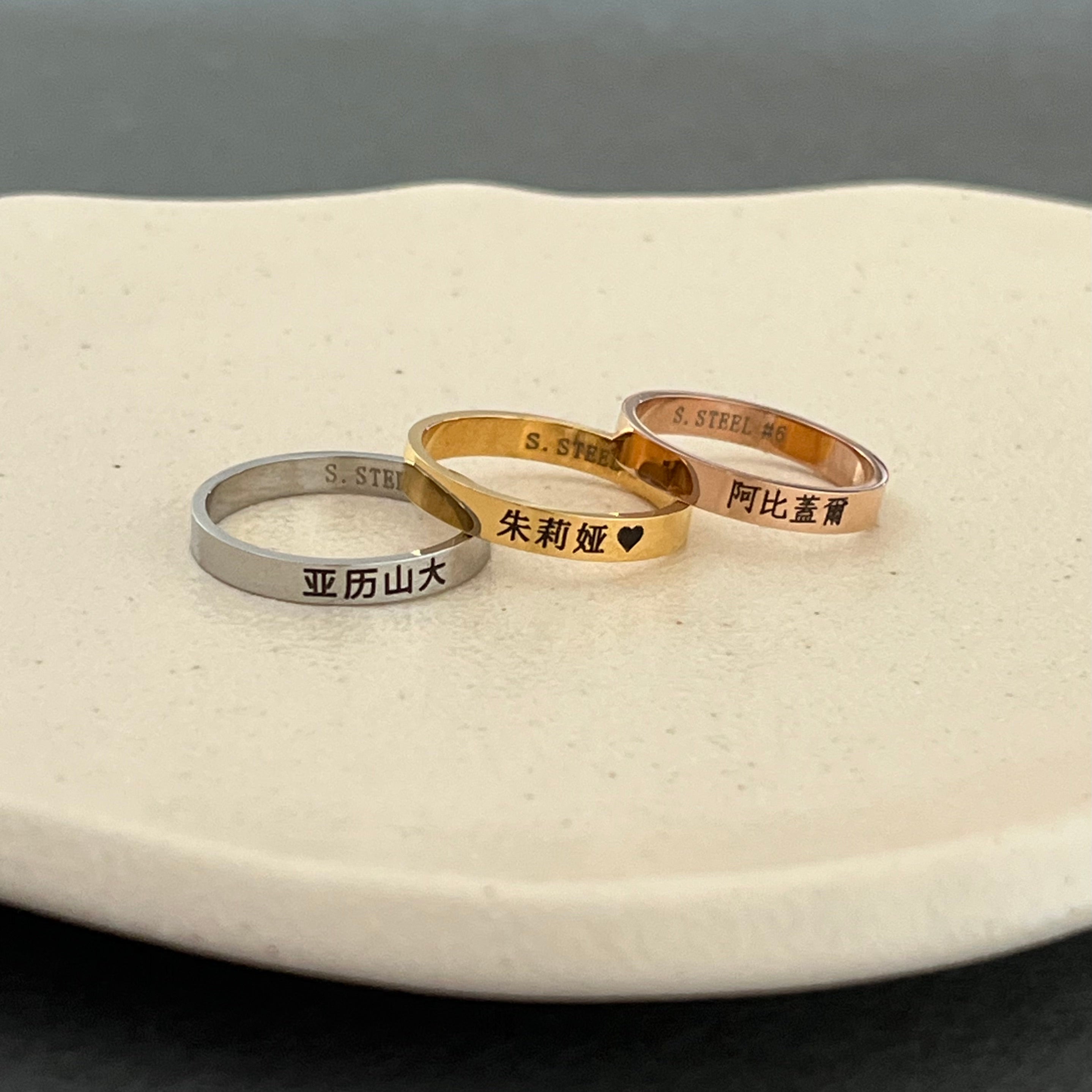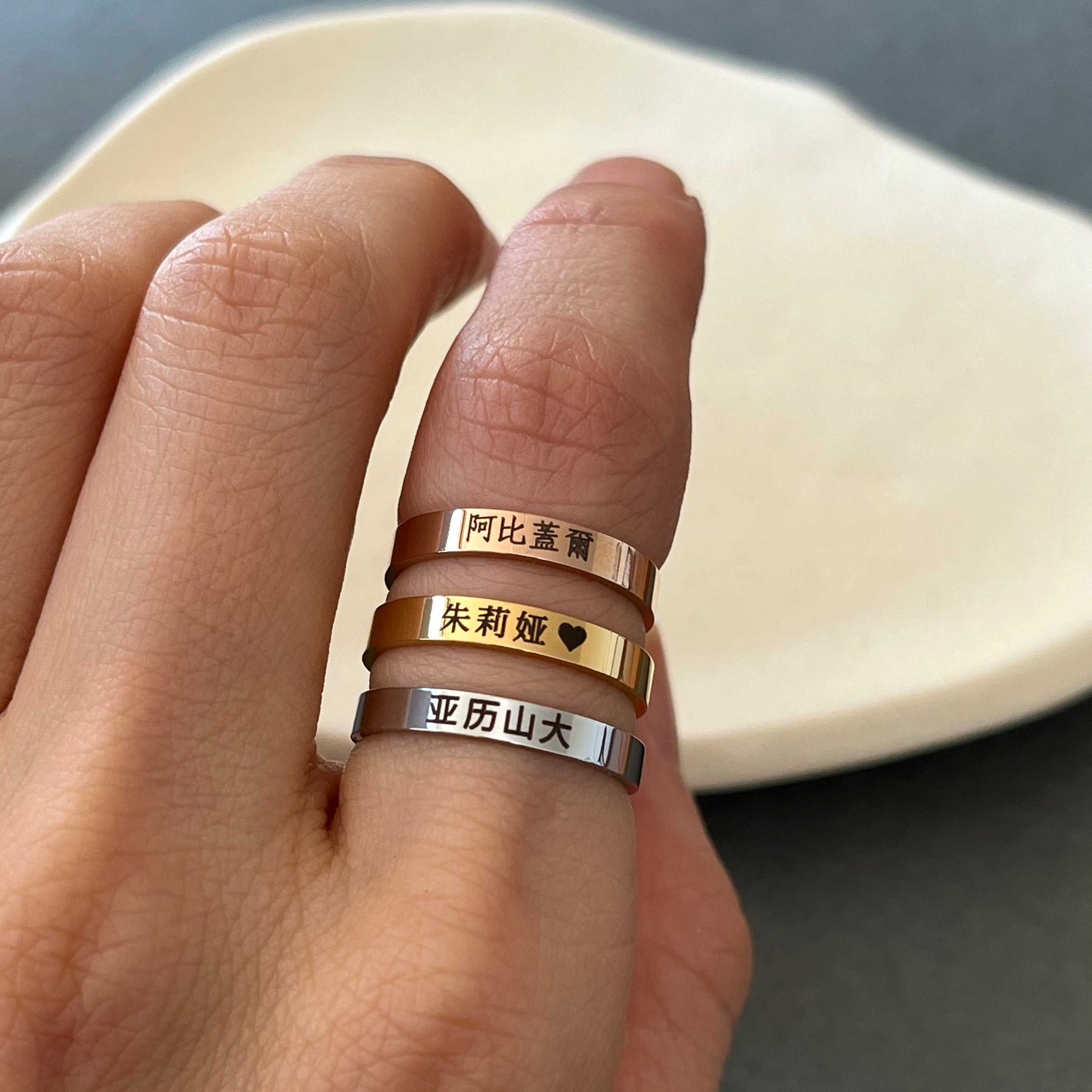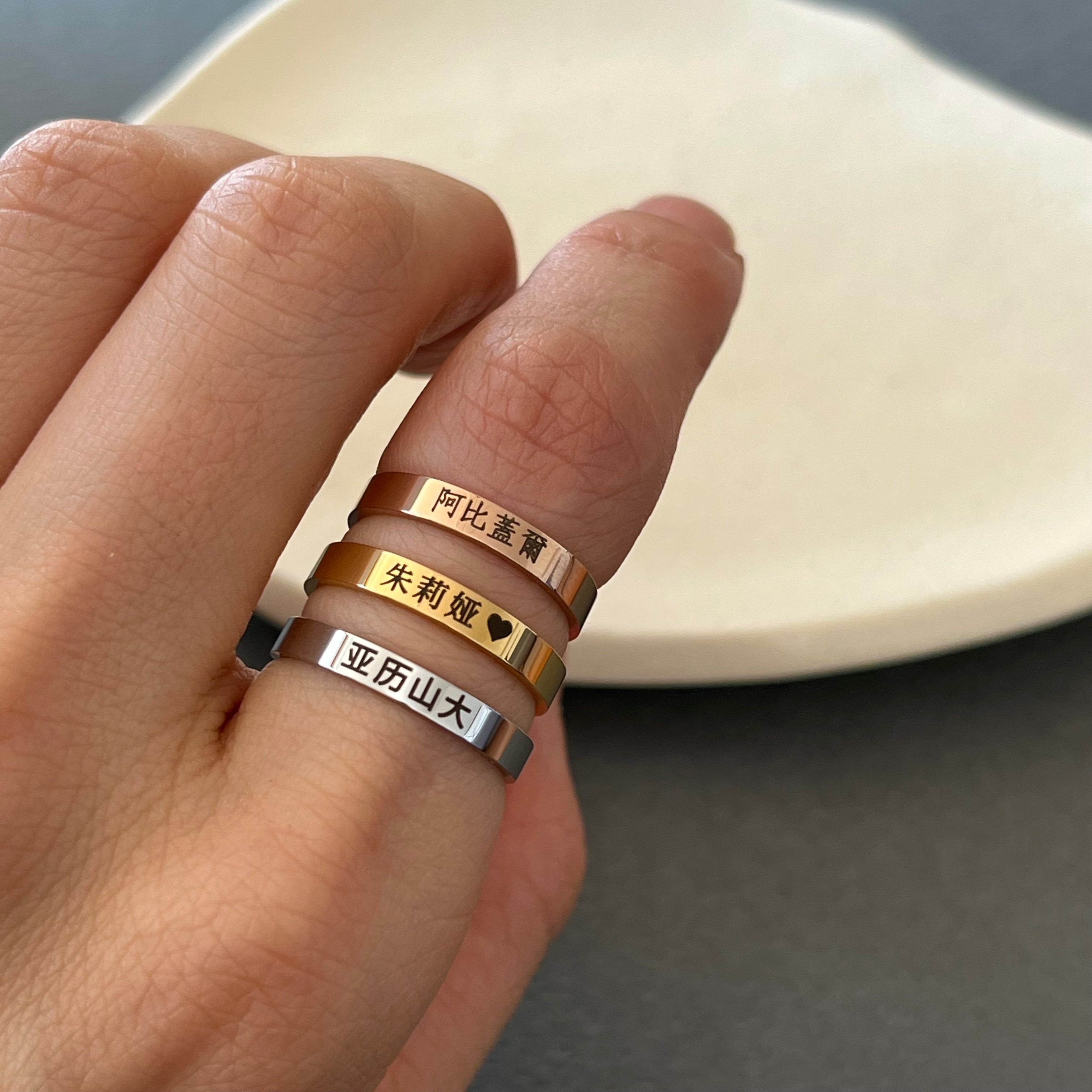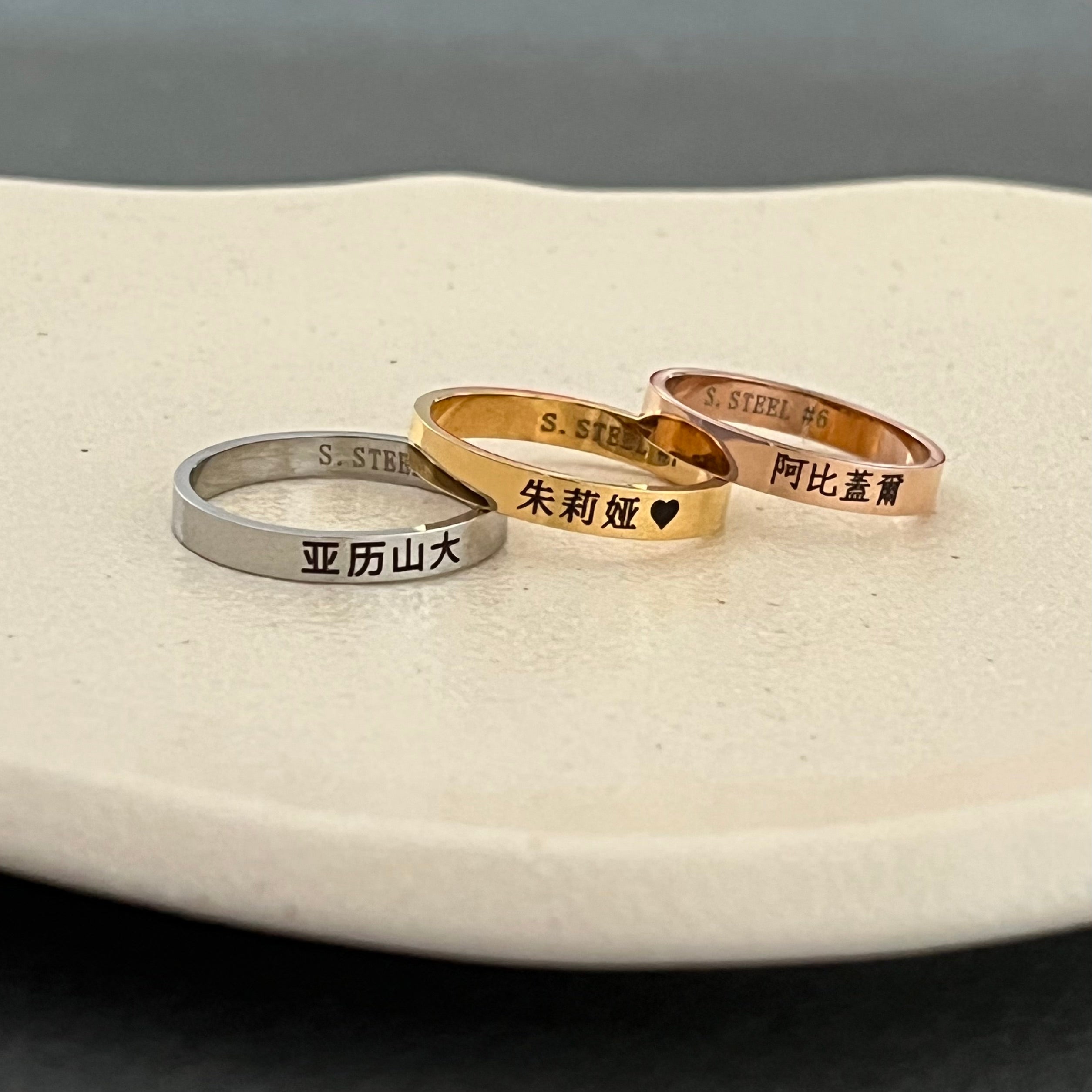 Personalisierter chinesischer Name 3 mm Edelstahl-Bandring in dunkler Gravur - Personalisierter chinesischer Ring - China-Geschenke - Chinesische Schriftzeichen