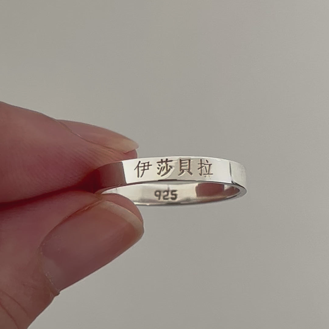 Personalisierter chinesischer Name 3 mm Sterling Silber Bandring - Personalisierter chinesischer Ring - China Geschenke - Chinesische Schriftzeichen