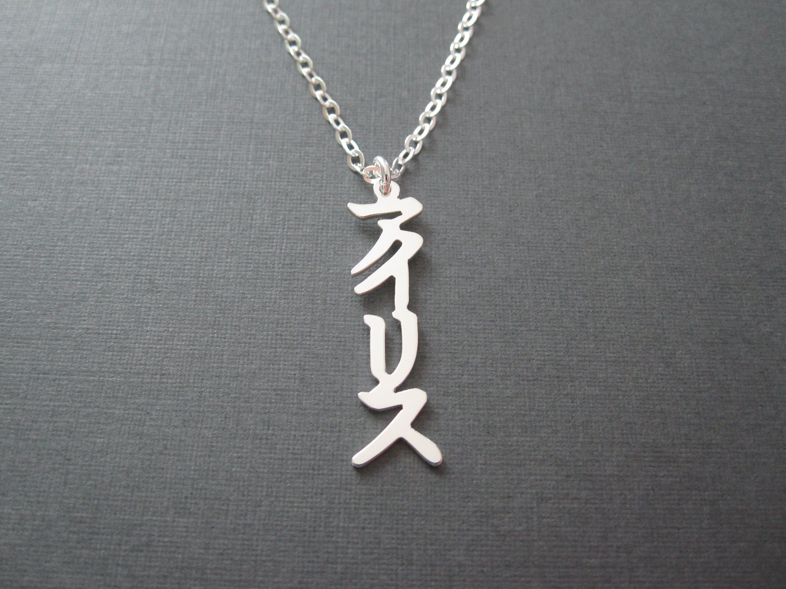 Personalisierte kleine vertikale japanische Namenskette aus Sterlingsilber – Japan-Geschenke – japanische Schriftzeichen – Hiragana – Katakana – Kanji