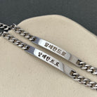 Dies ist ein personalisiertes, graviertes Armband mit großem koreanischen Namen aus Edelstahl. Edelstahlschmuck ist robust und läuft fast nie an oder korrodiert.