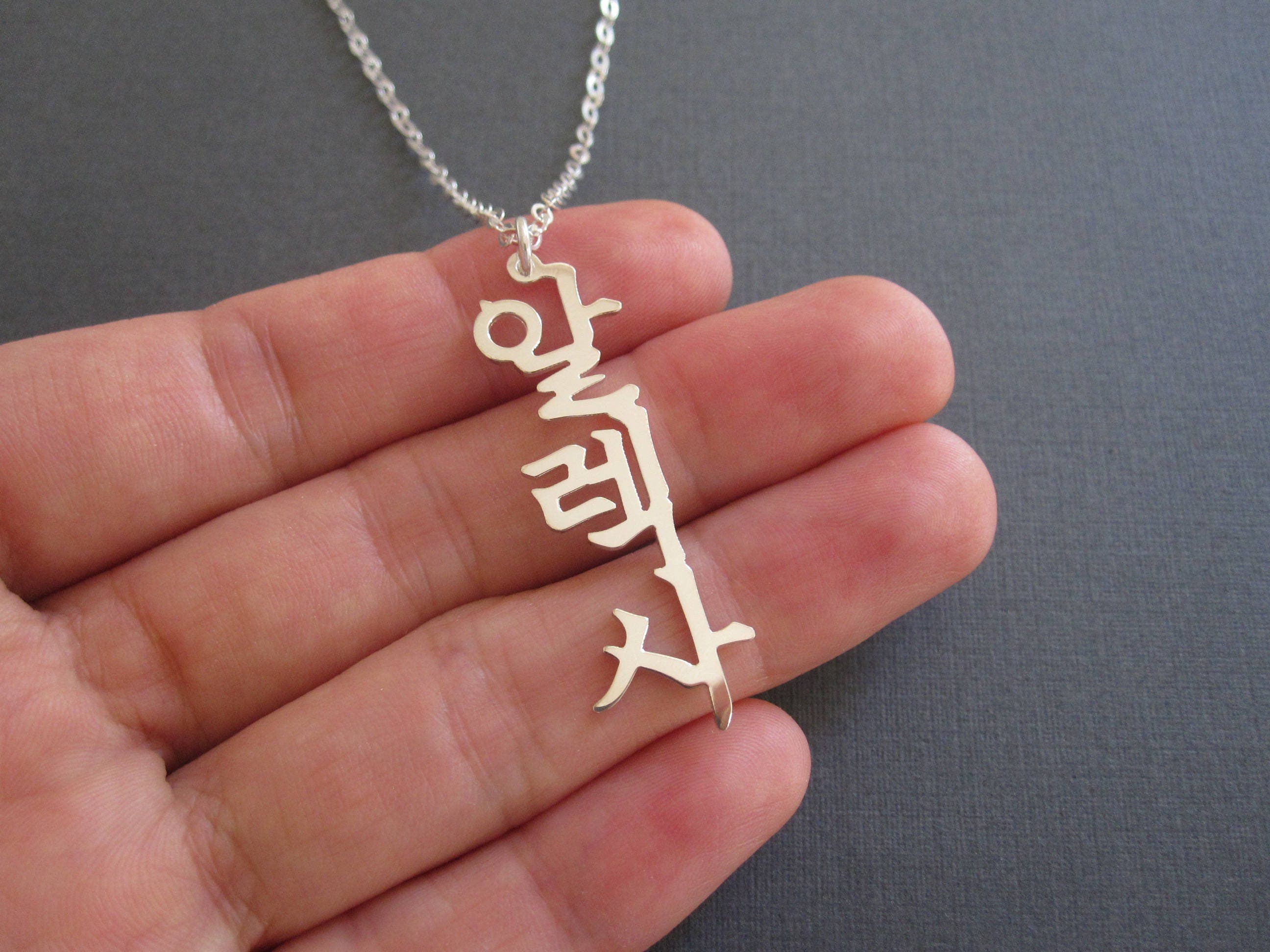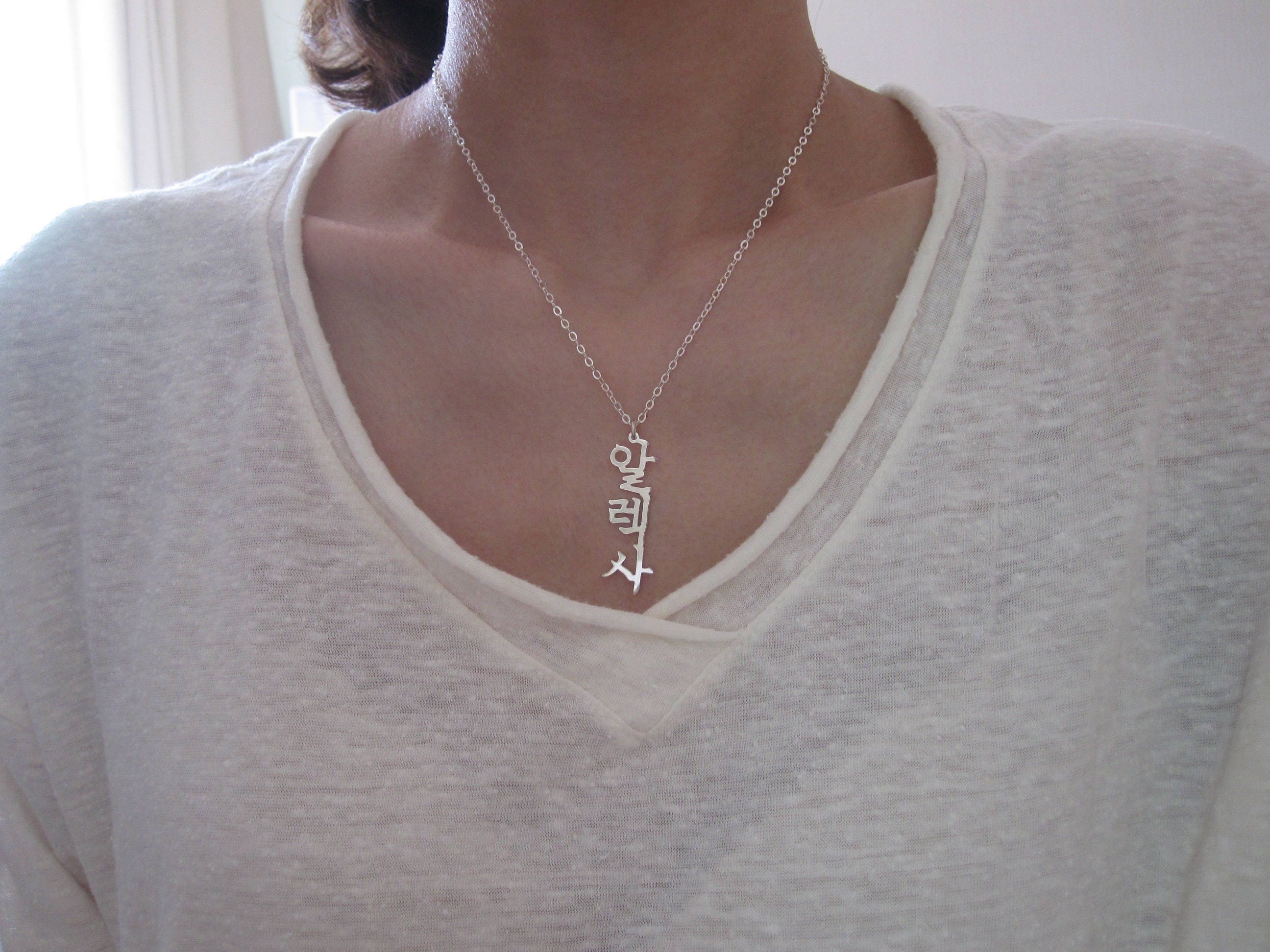 Personalisierte vertikale koreanische Namenskette aus Sterlingsilber – Korea-Halskette – Korea-Geschenke – koreanische Schriftzeichen – Hangul