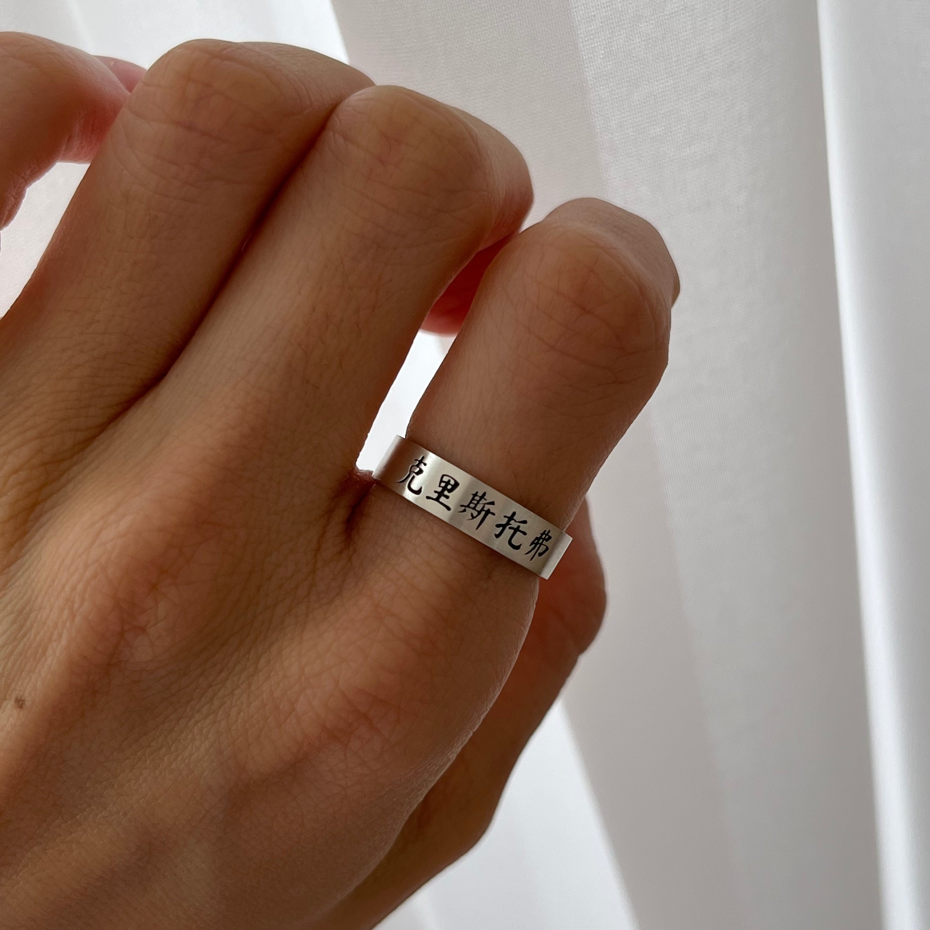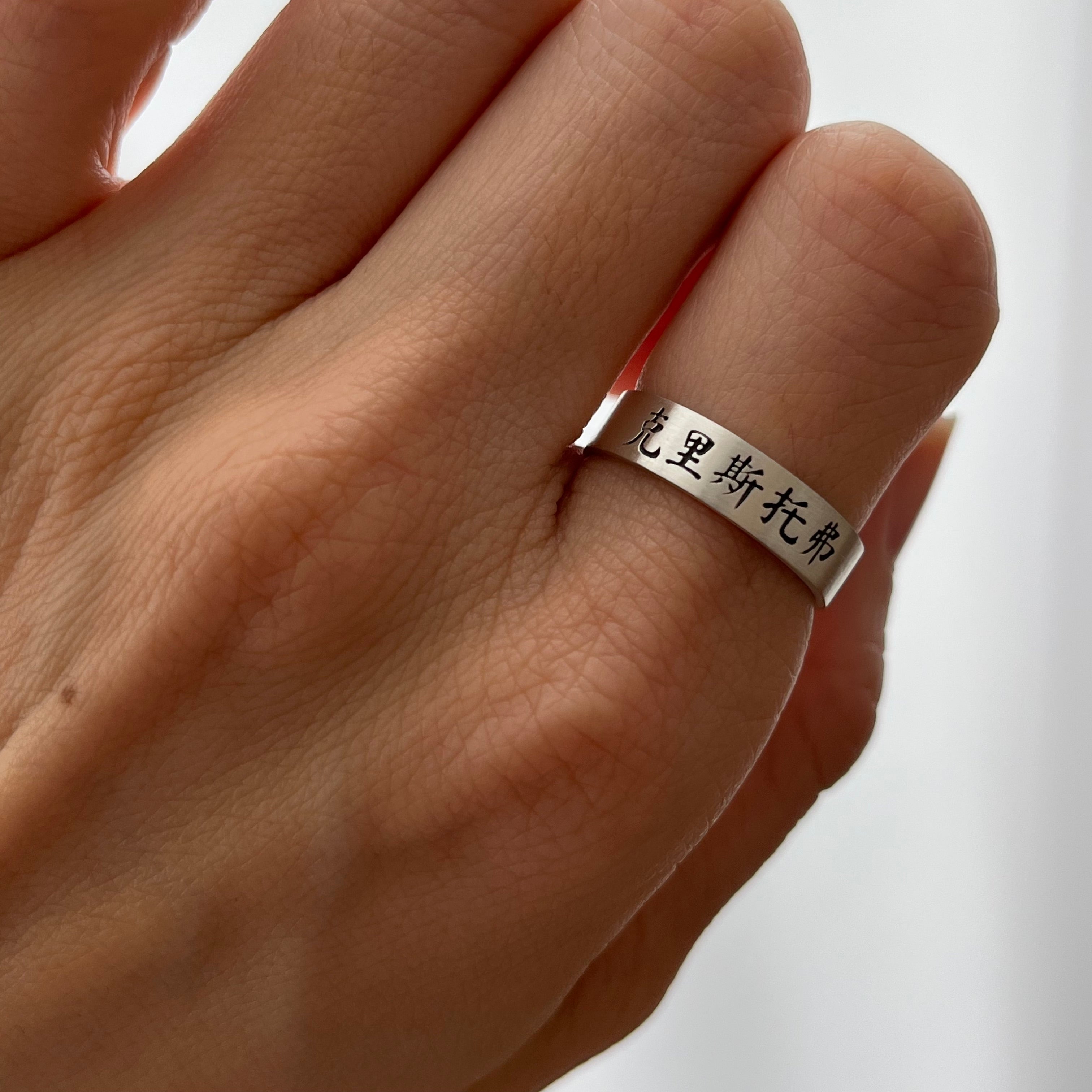 Der Musterring ist mit dem Namen Christopher in Chinesisch in der Schriftart Nr. 6 graviert.