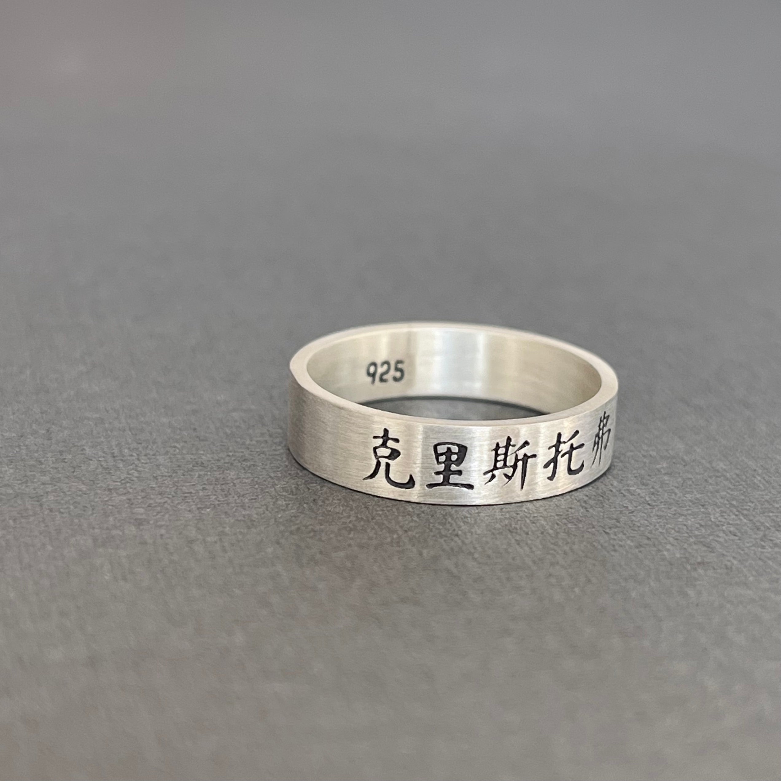 Dieses Angebot gilt für einen personalisierten, gravierten chinesischen Namensring aus poliertem, mattem Sterlingsilber.