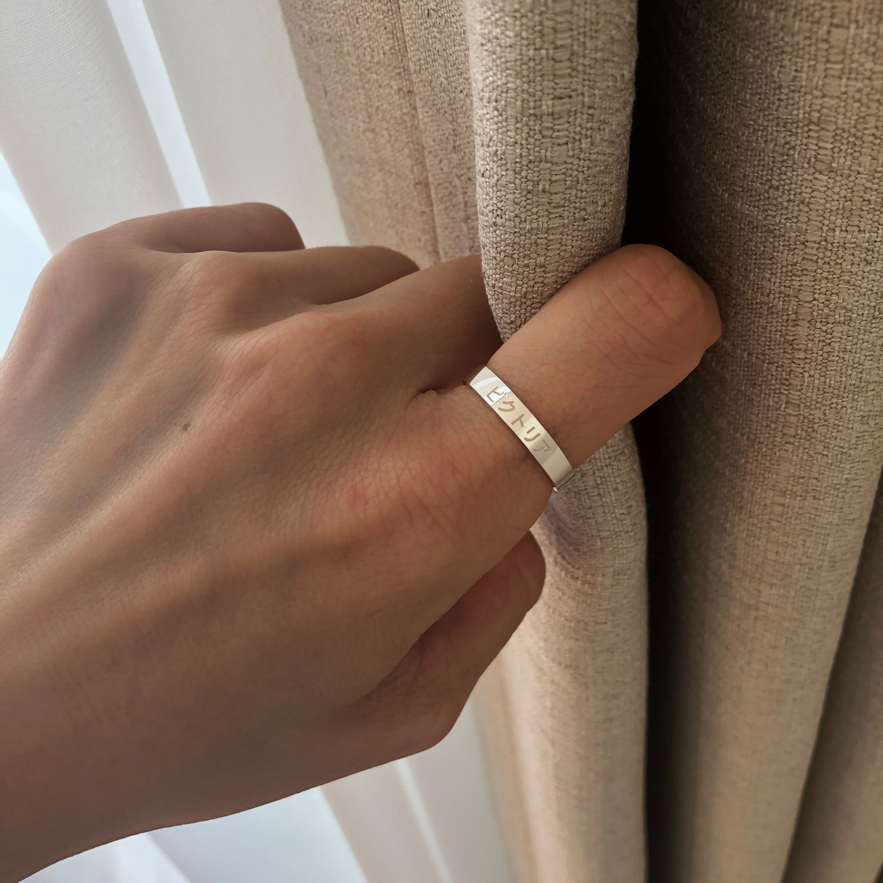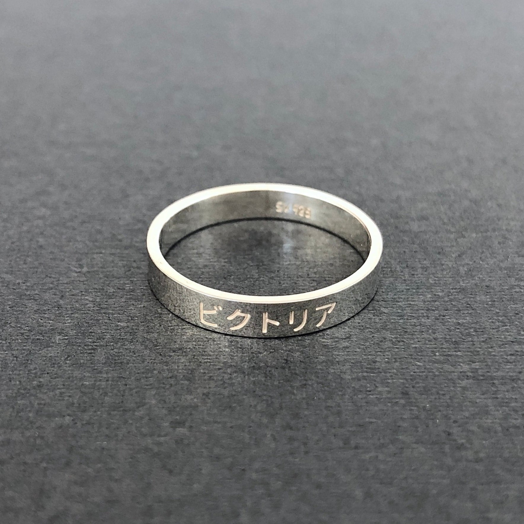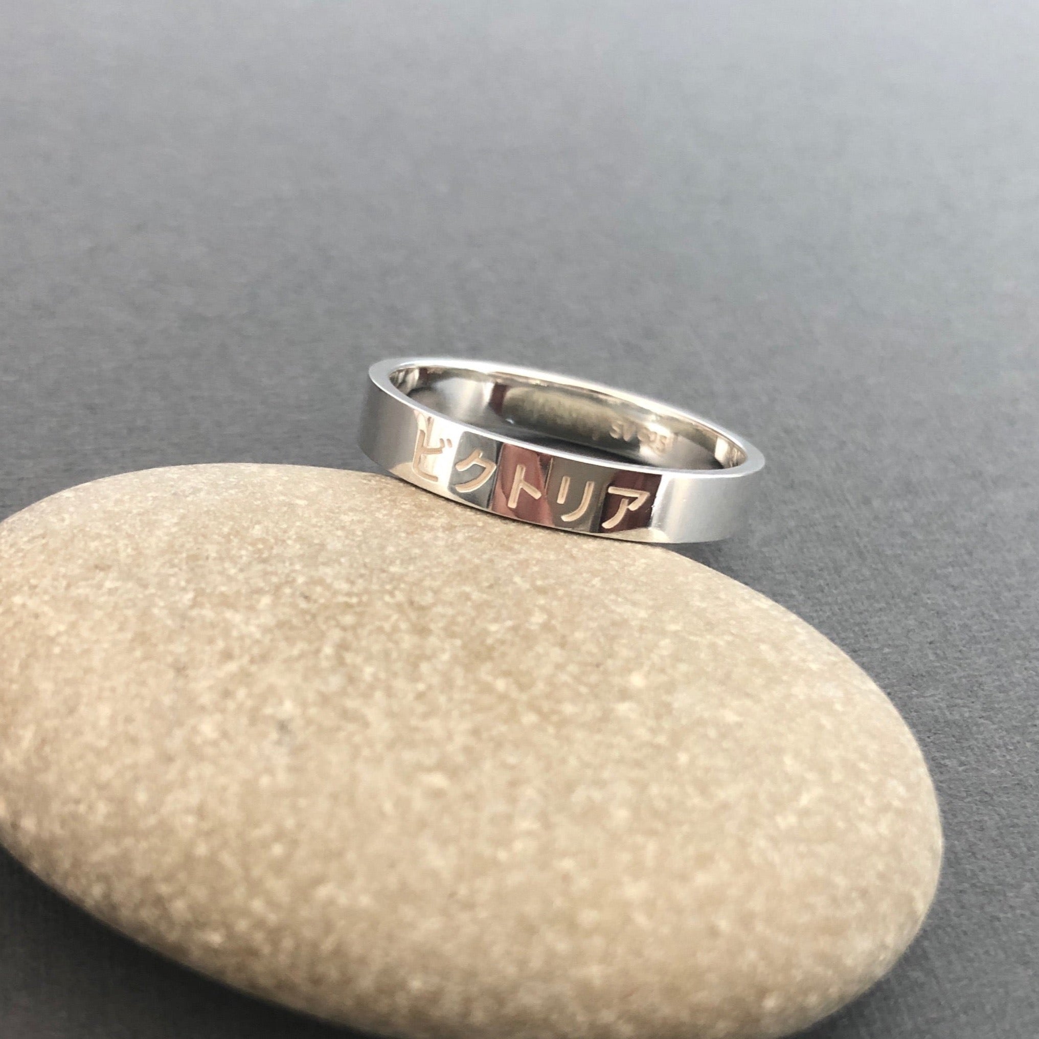 Personalisierter gravierter japanischer Name 3 mm Sterling Silber Bandring - Japan Ring - Japan Geschenke - Hiragana - Katakana - Kanji