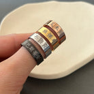 Bitte wählen Sie aus den Optionen das Finish, die Gravurseite und die Ringgröße aus. Bitte hinterlassen Sie den gewünschten Namen, das Wort oder die Phrase und die gewünschte Schriftartnummer im Kommentarbereich des Einkaufswagens. Wenn es sich um ein Wort handelt, klären Sie dies zur Übersetzung. Wenn Sie lateinische Buchstaben wünschen, geben Sie dies bitte an, andernfalls werden sie ins Chinesische übersetzt. Die Standardschriftarten sind Nr. 5 (Nr. 6 für vereinfachtes Chinesisch) und Nr. 15.