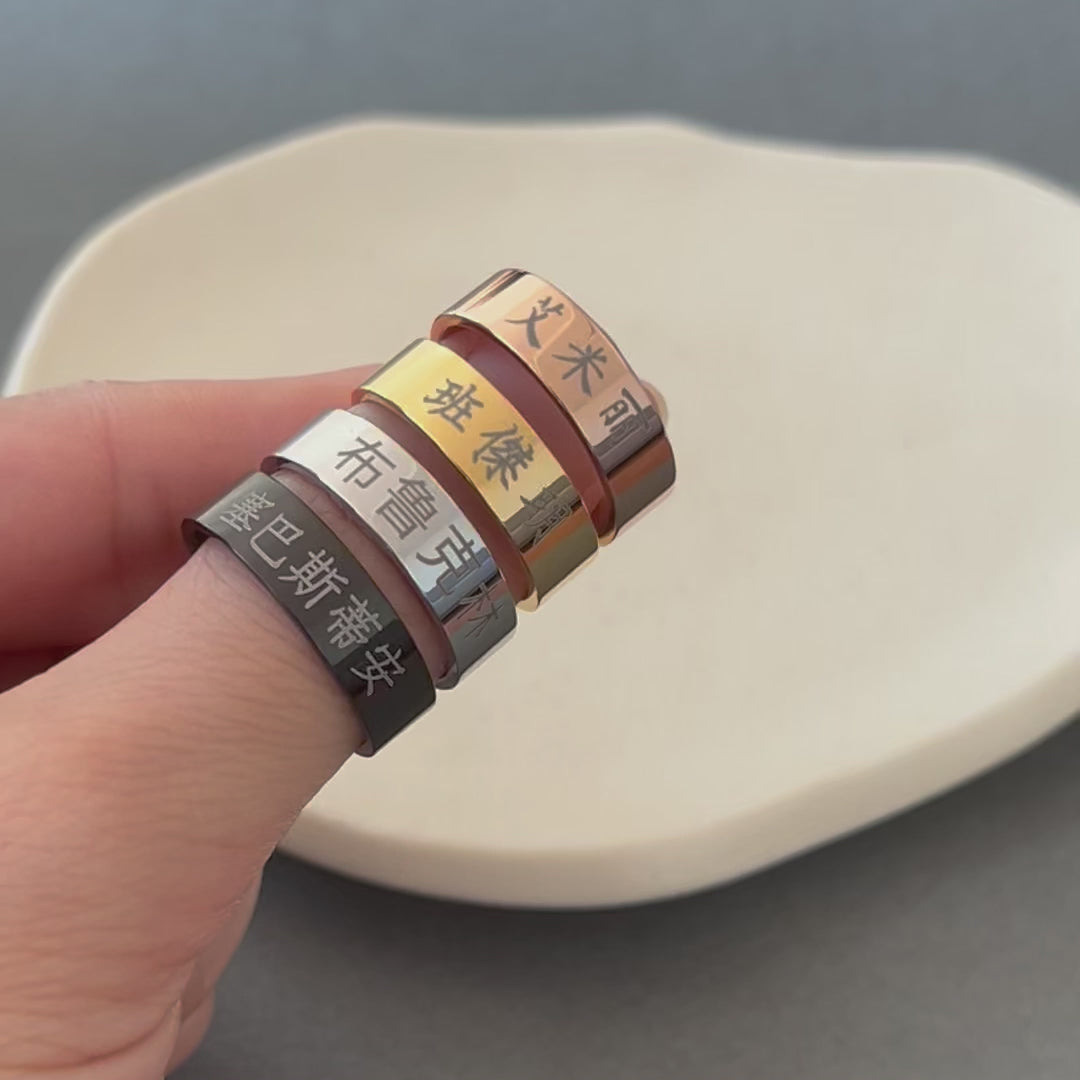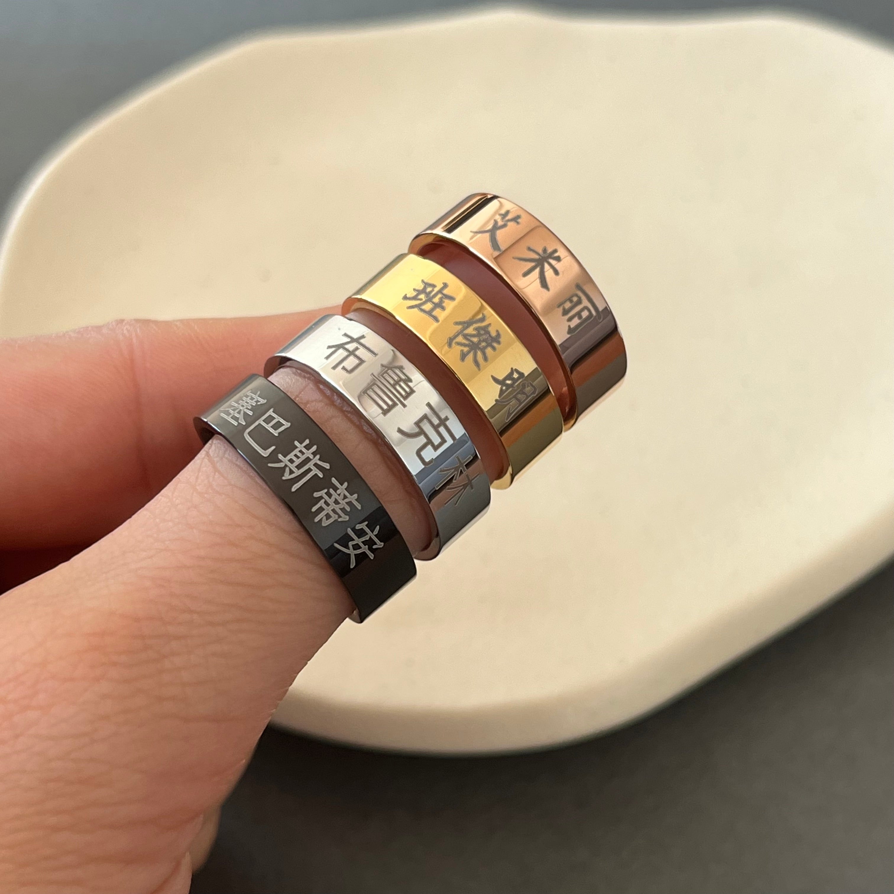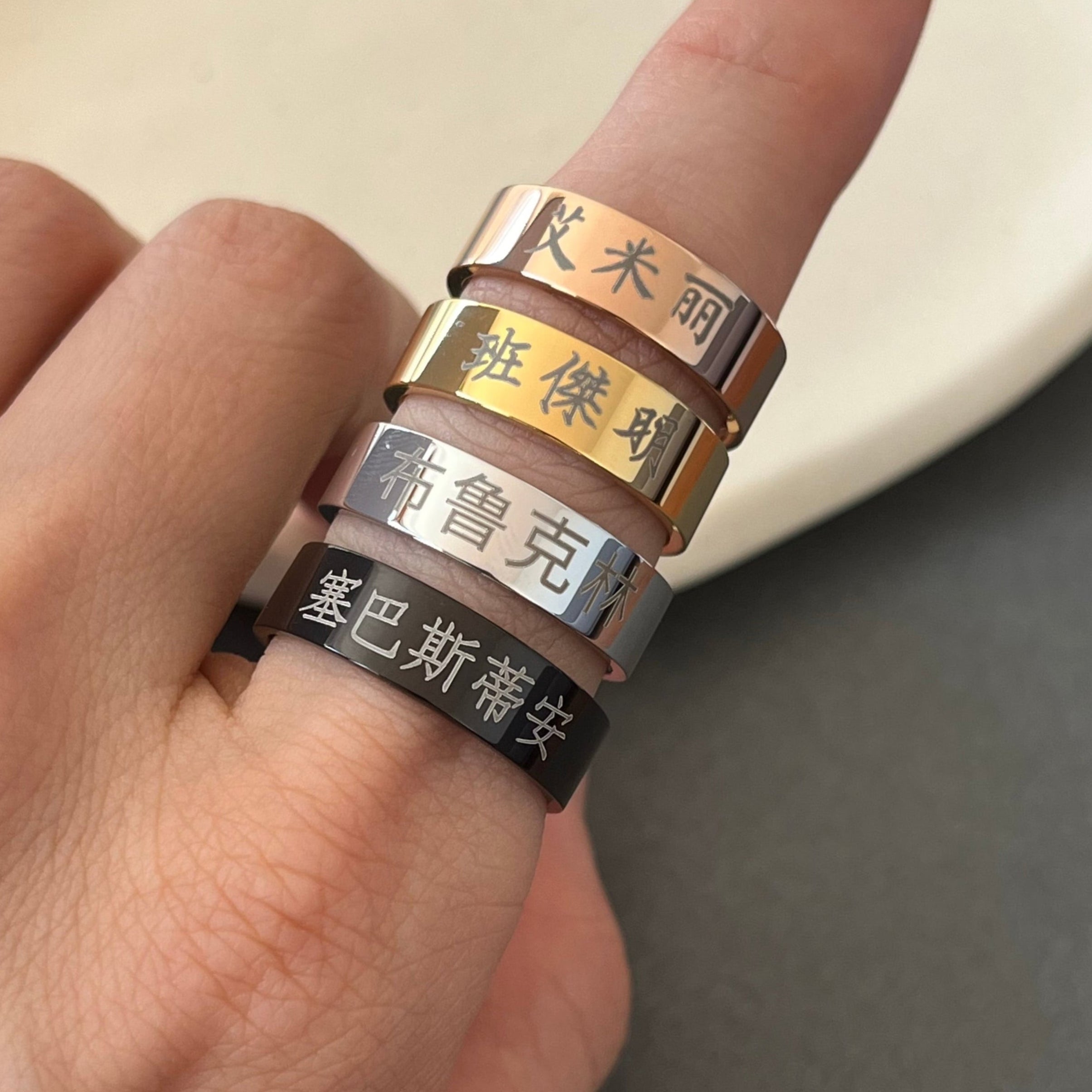 Dies ist ein personalisierter gravierter chinesischer Namensring aus Edelstahl.