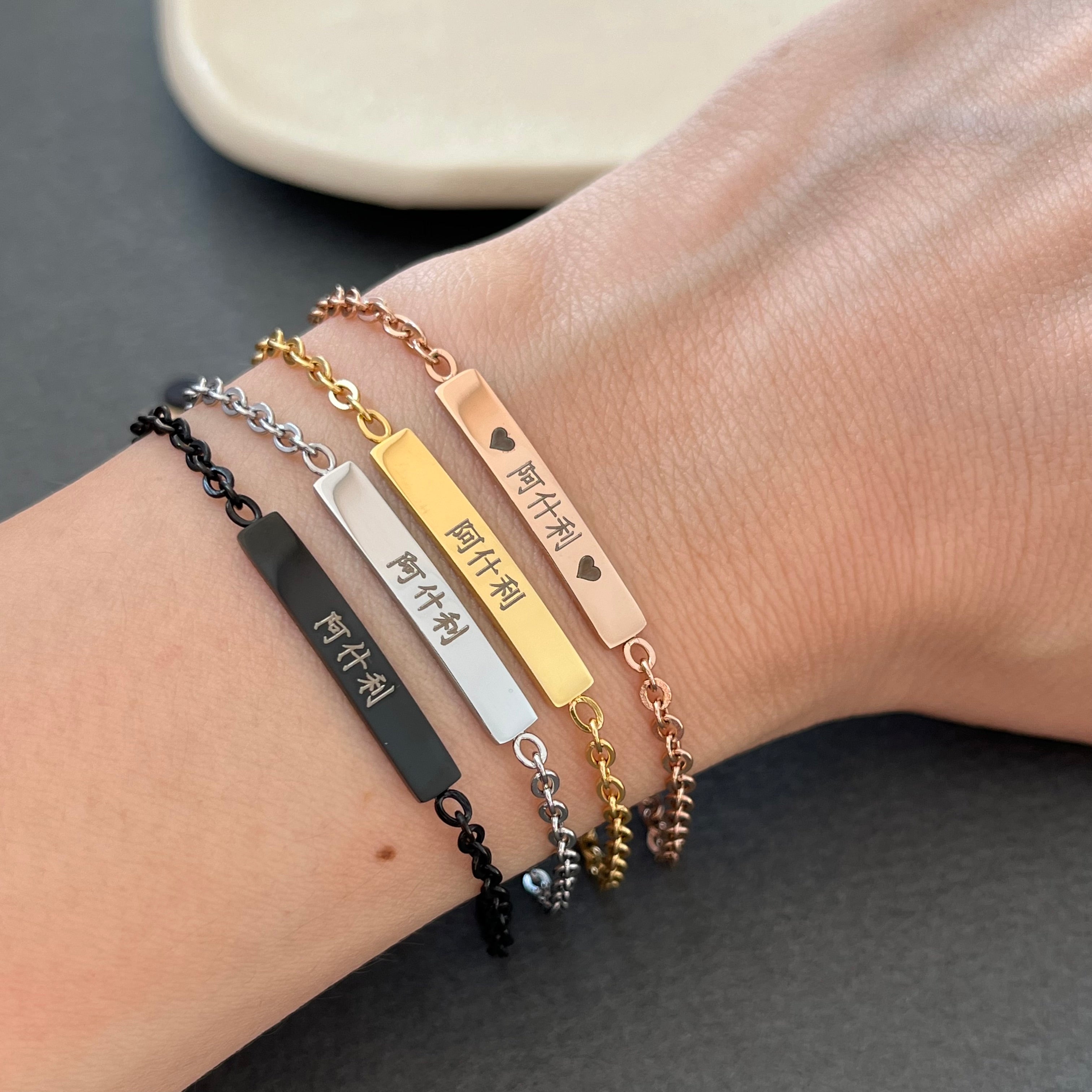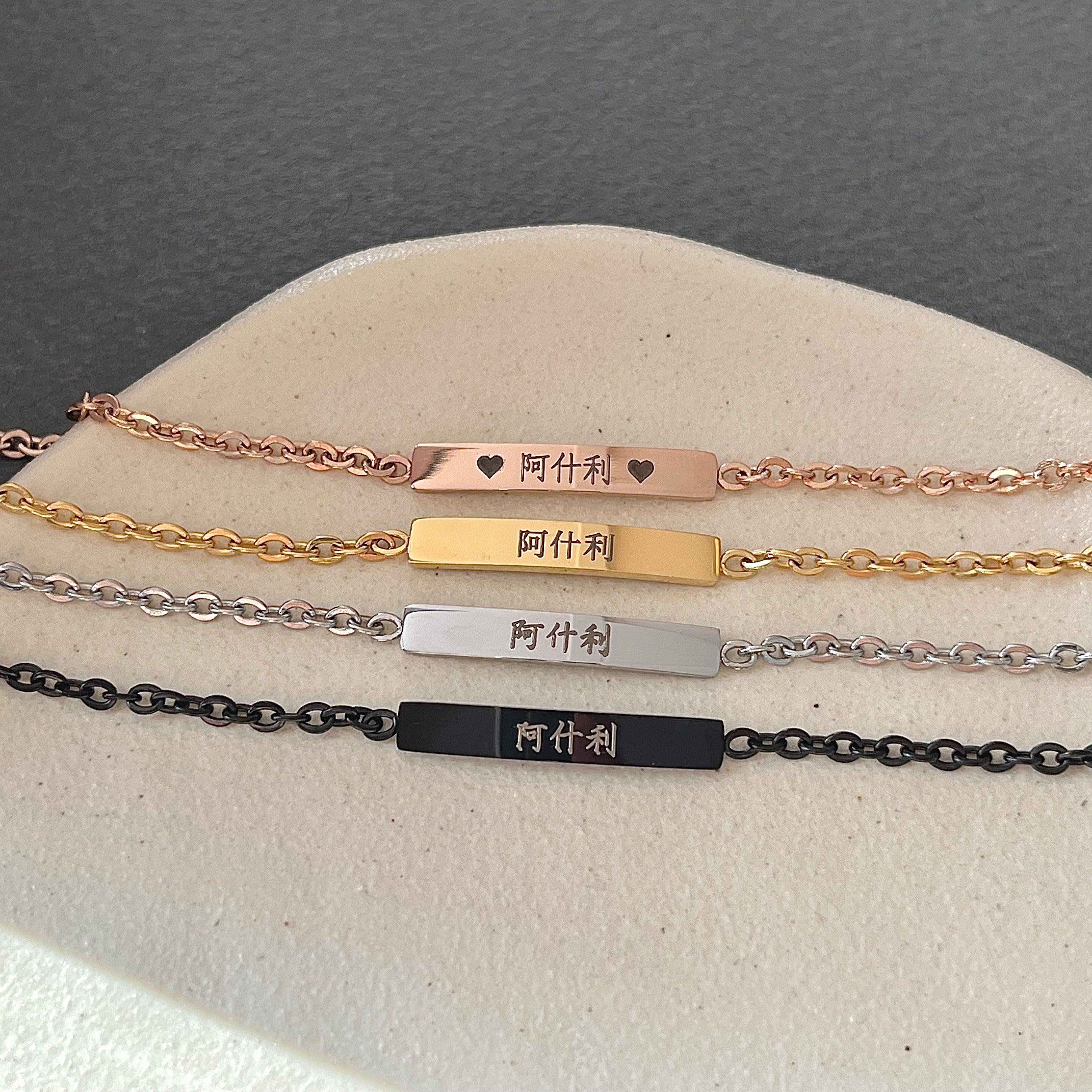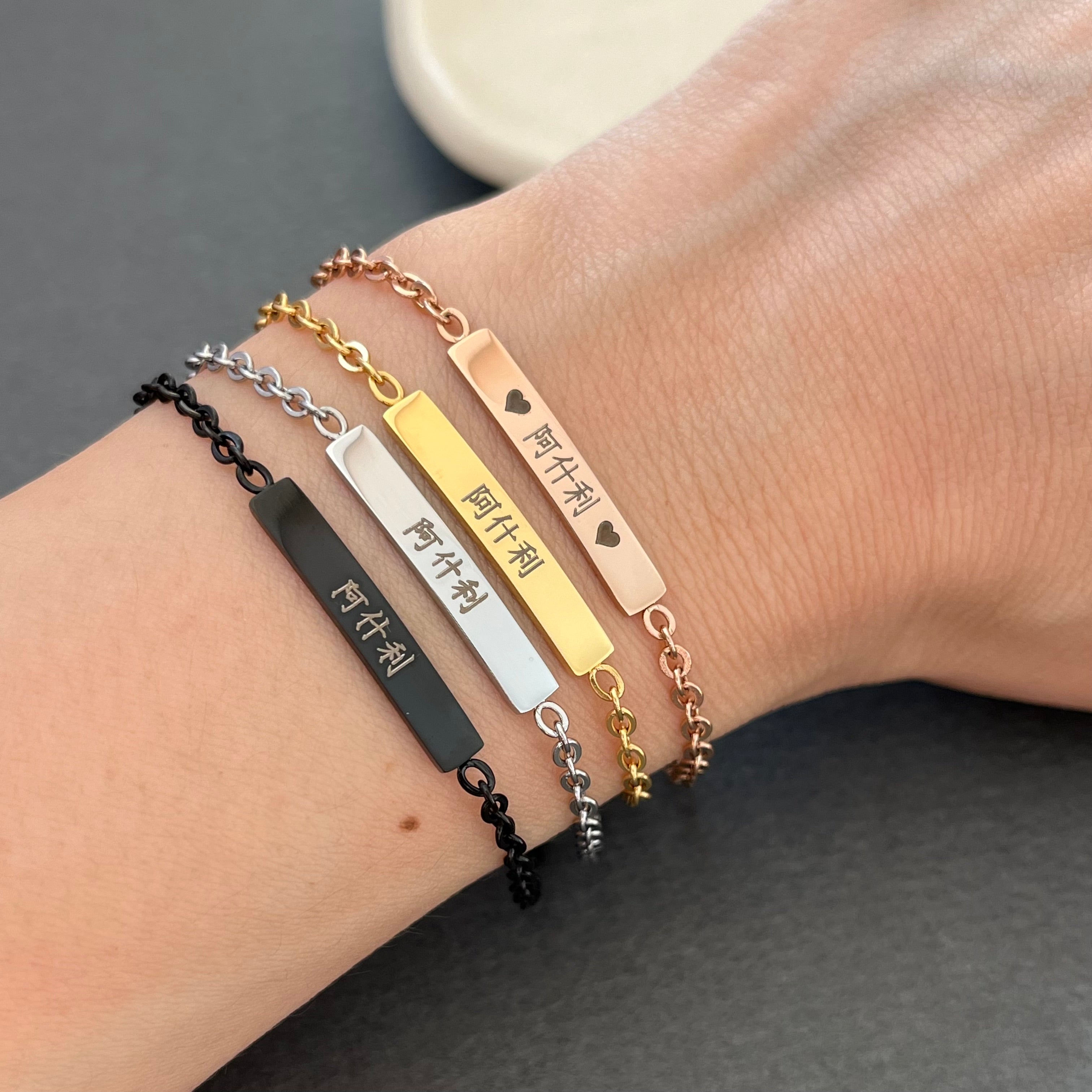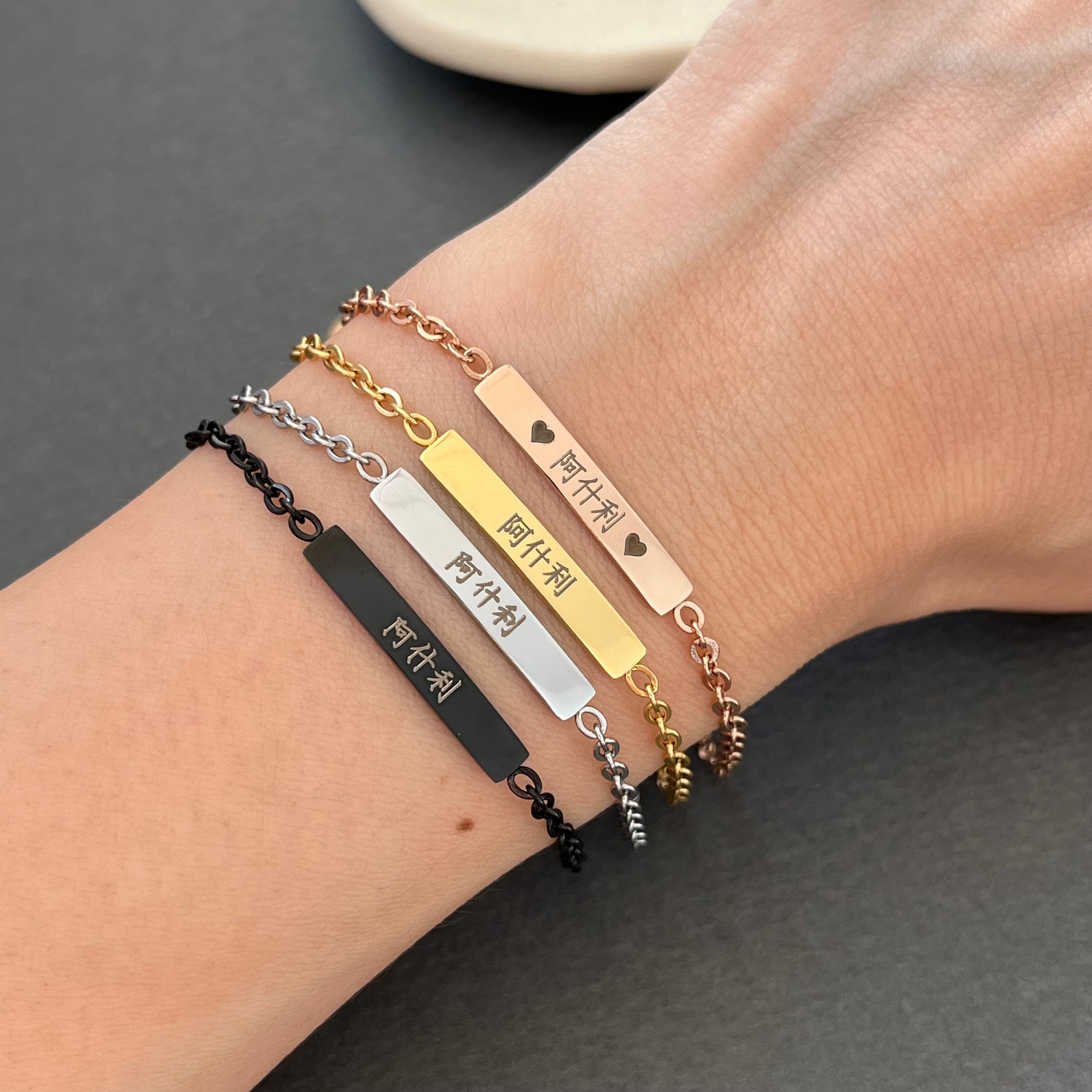 Personalisiertes zierliches Mini-Bar-Armband aus Edelstahl mit chinesischem Namen - Personalisiertes chinesisches Armband - Chinesische Geschenke - Chinesische Schriftzeichen