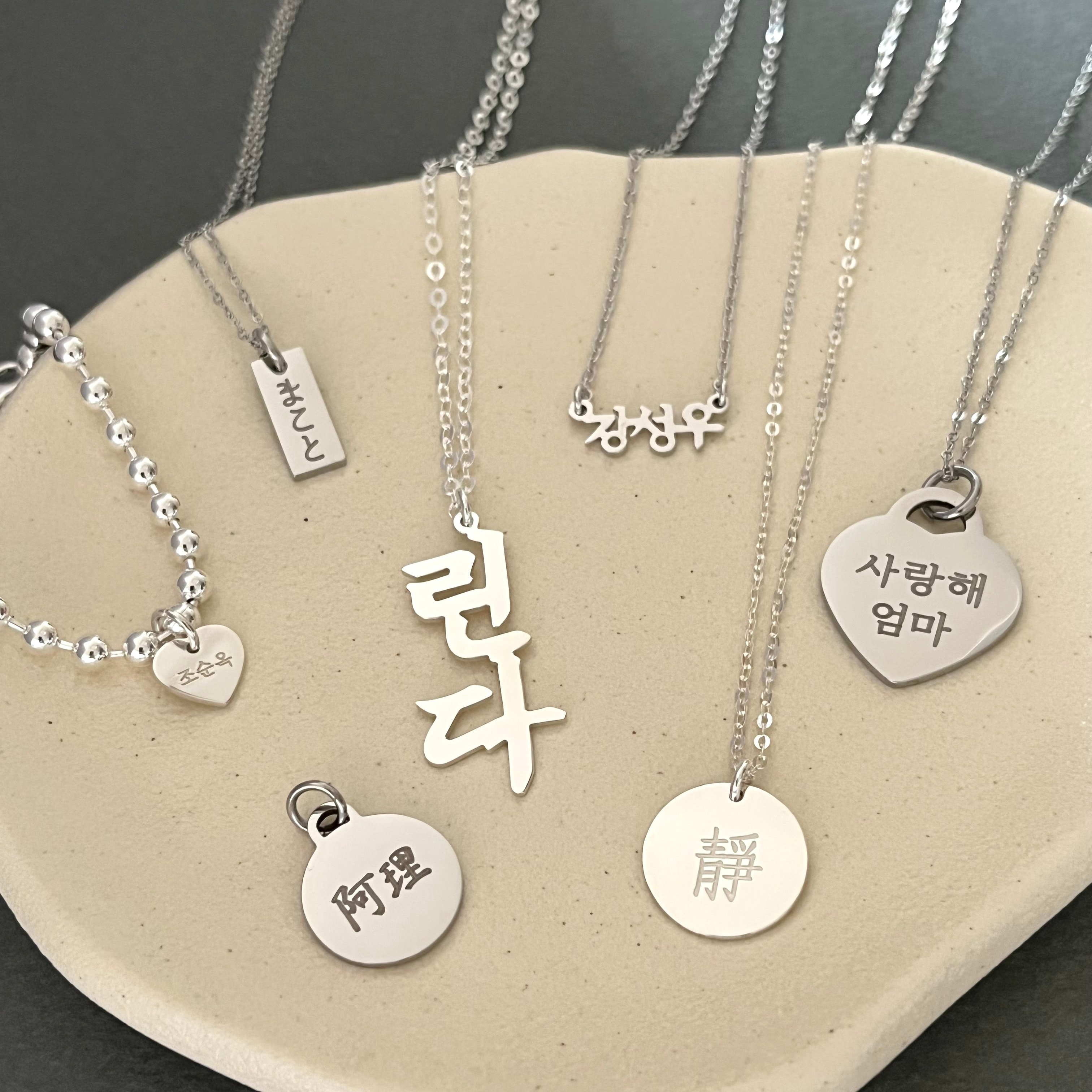 Personalisierter Namensschmuck in koreanischen, chinesischen, japanischen und römischen Alphabeten - individueller Namensschmuck