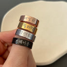 Veuillez choisir la finition, le côté de gravure et la taille de la bague parmi les options. Veuillez laisser le nom, le mot ou la phrase et le numéro de style de police que vous souhaitez dans la section commentaires du panier. S'il s'agit d'un mot, précisez-le pour la traduction. Si vous voulez des lettres romaines, veuillez le préciser, sinon elles seront traduites en coréen. Les polices par défaut sont #1 et #15.