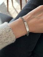 La barre mesure environ 25 mm de large et 6 mm de haut. Le bracelet mesure environ 16,5 cm (6,5 pouces) sans la chaîne d'extension. Il mesure au maximum 21,5 cm (8,5 pouces) avec la chaîne d'extension. La chaîne d'extension sera coupée à environ 2,5 cm (1 pouce) de long pour le bracelet court.