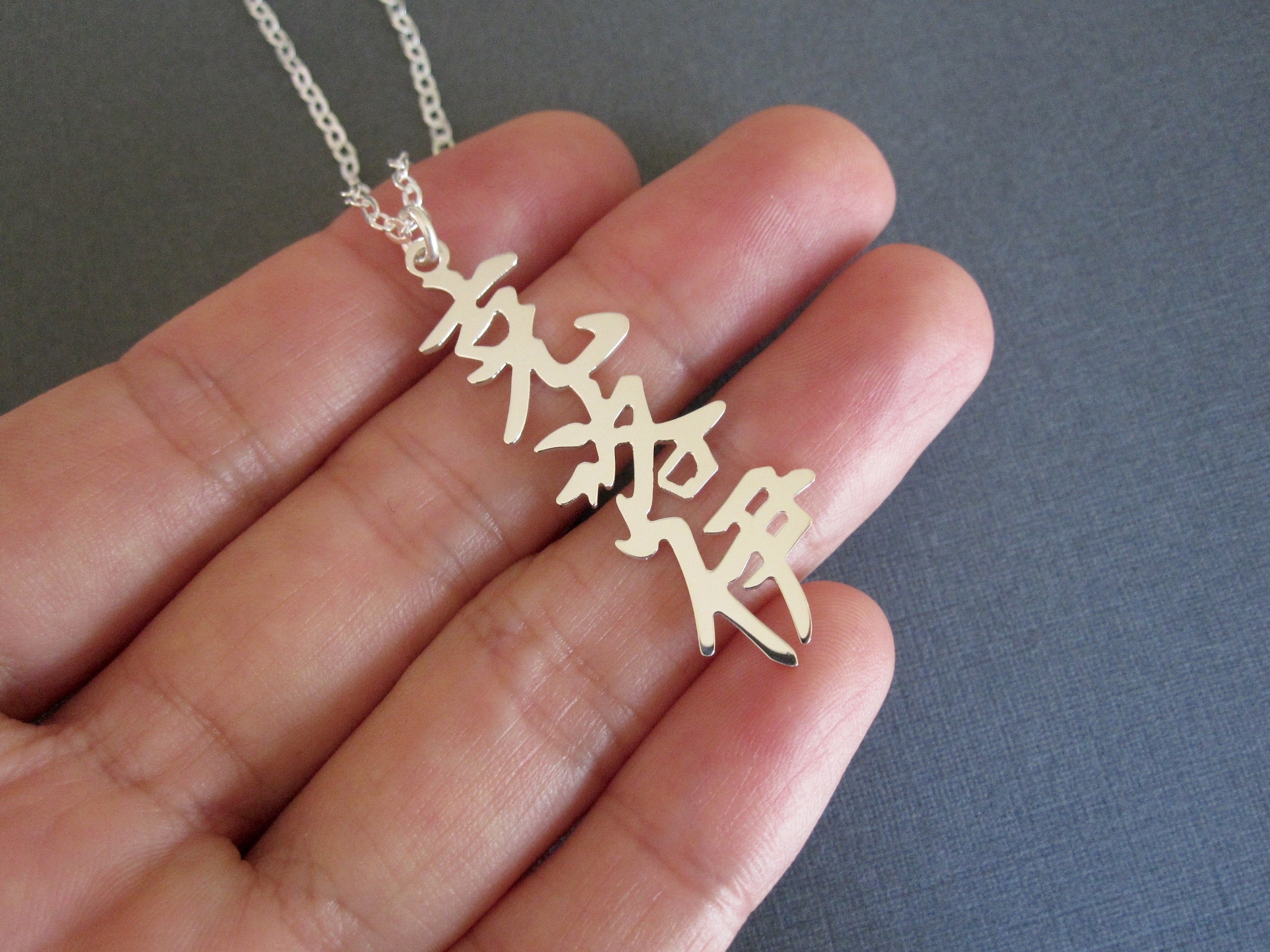 Collier personnalisé en argent sterling avec nom chinois vertical - Collier en Chine - Cadeaux en Chine - Caractères chinois
