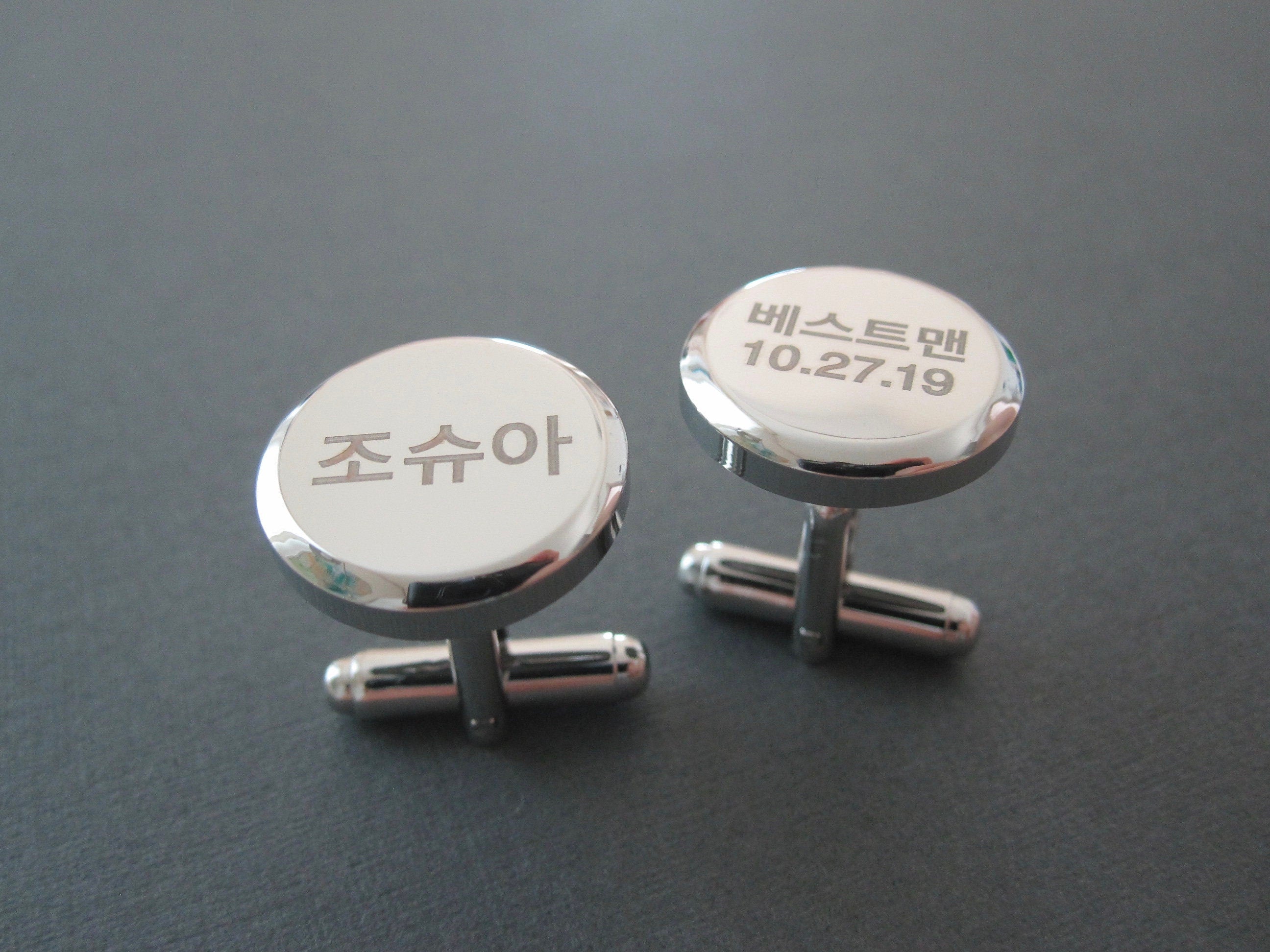 Boutons de manchette coréens gravés personnalisés en 2 formes - Cadeaux coréens - Hangul - Boutons de manchette personnalisés - Cadeau pour homme - Cadeau pour lui