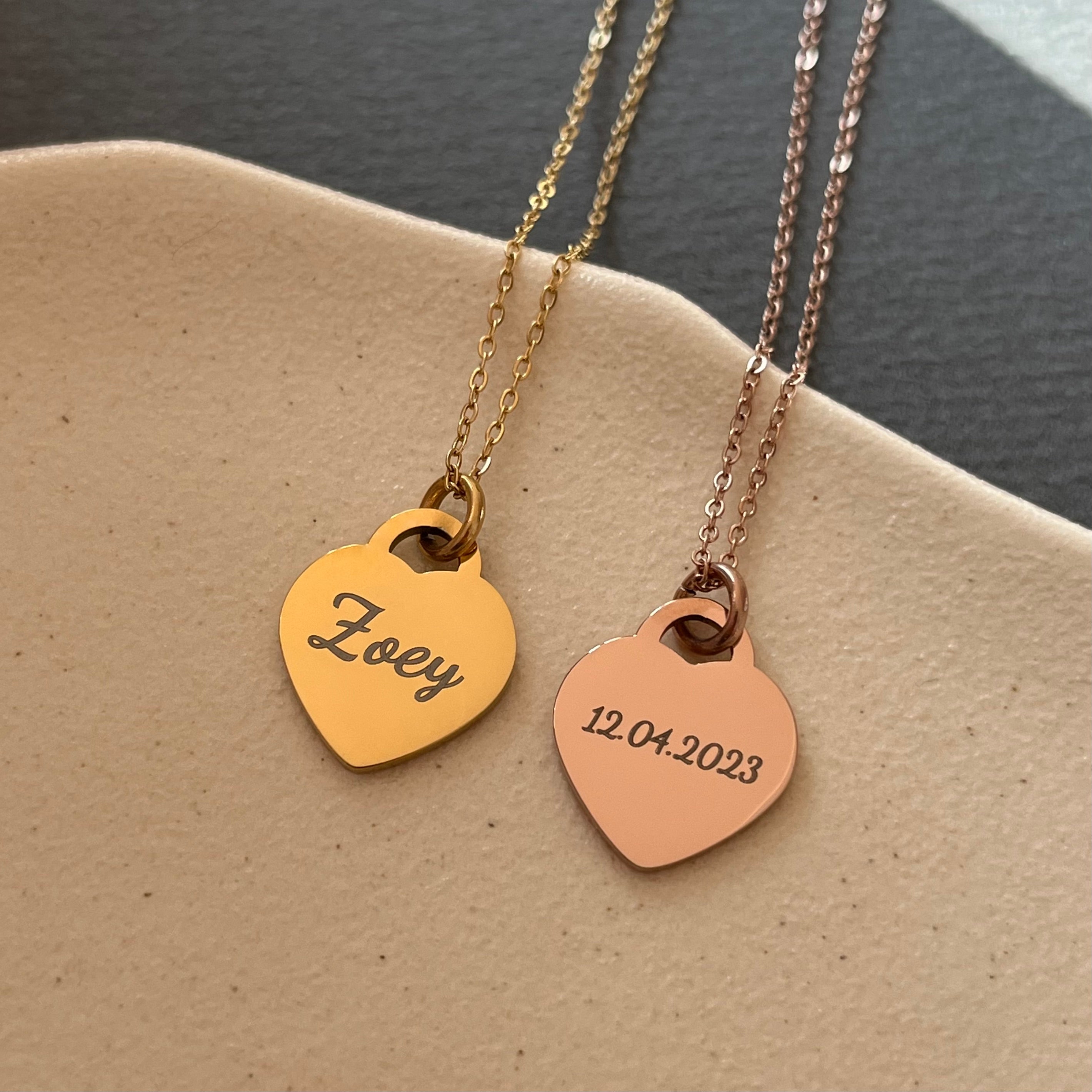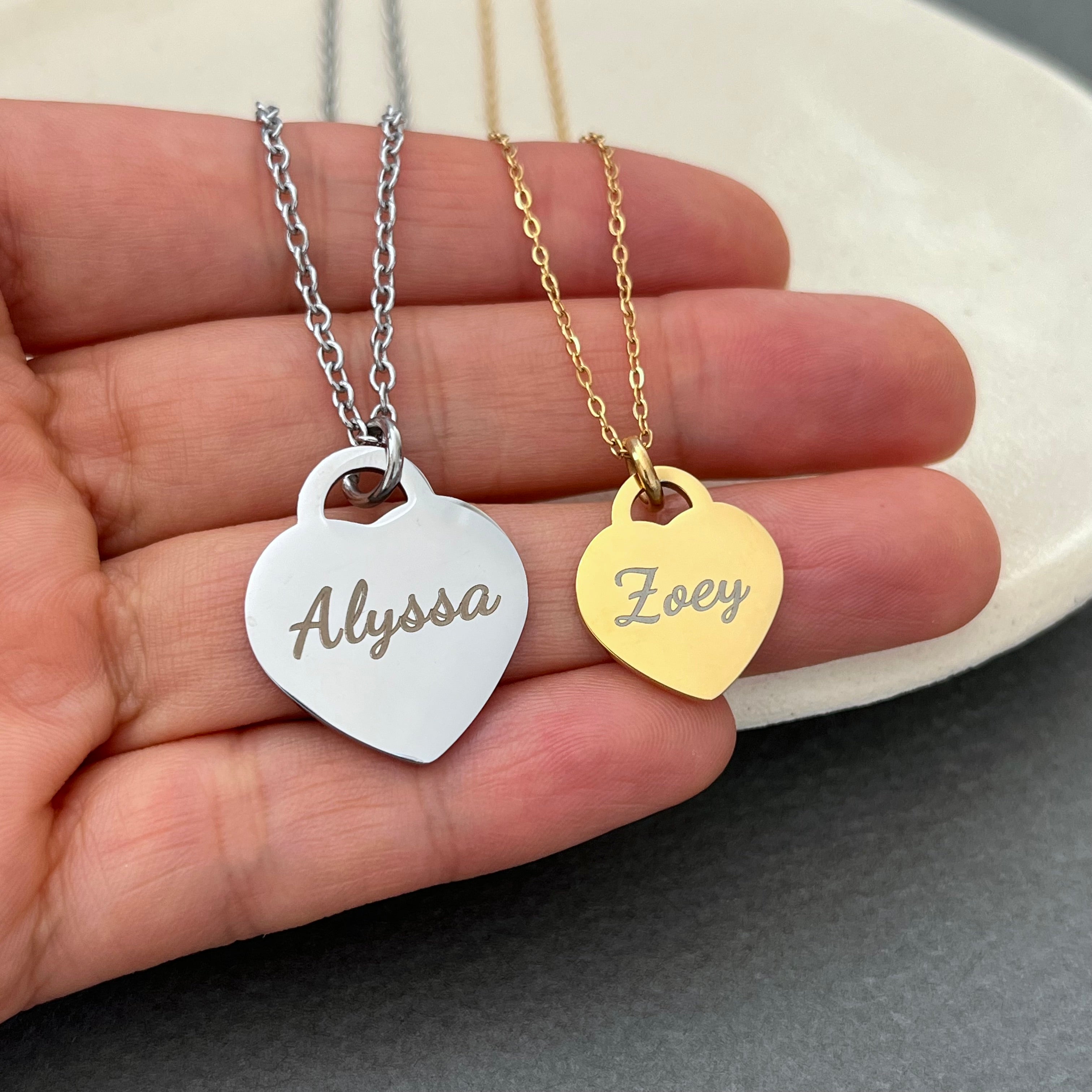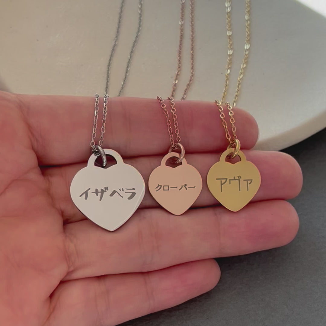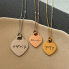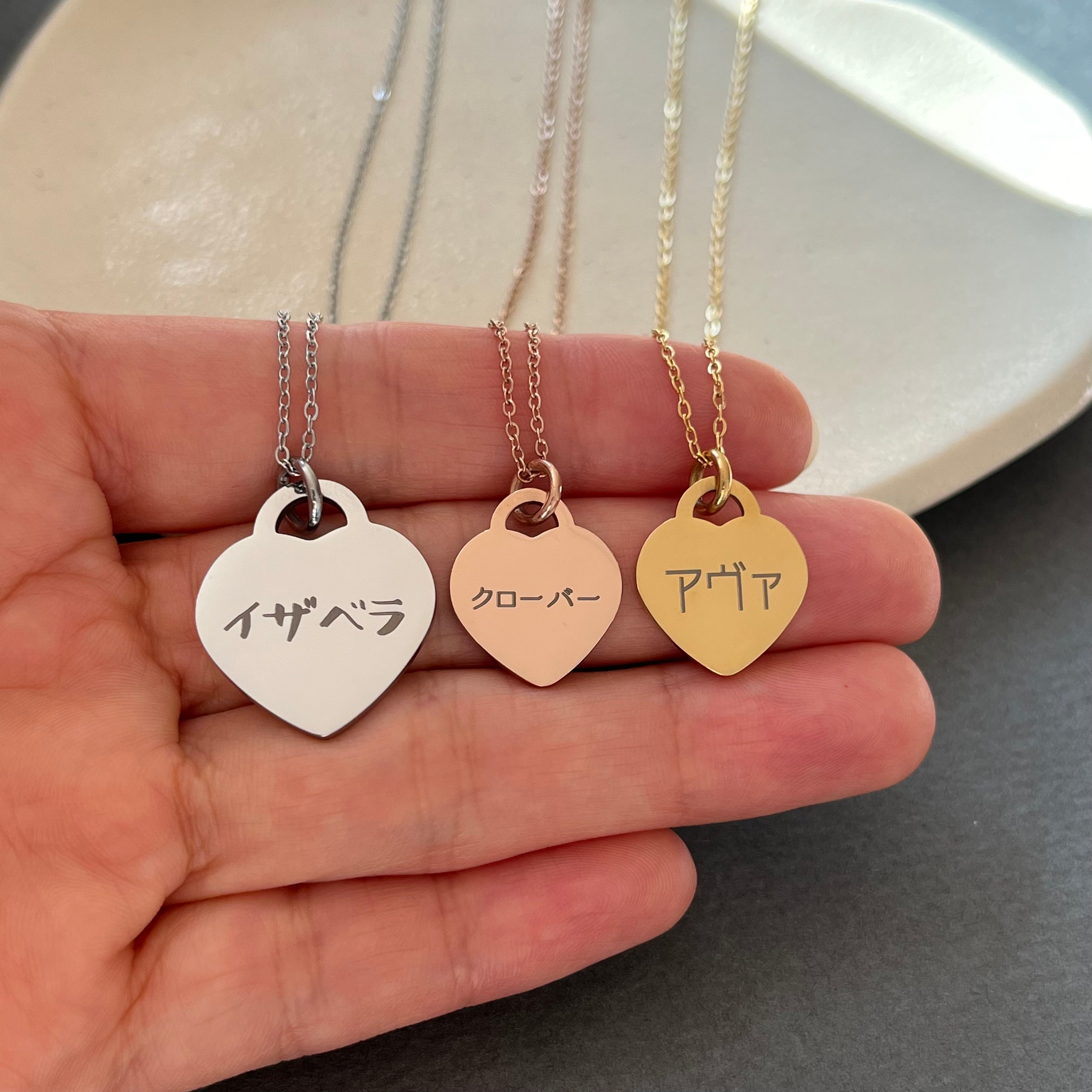 Personalized Engraved Japanese Name Heart Stainless Steel Necklace in 2 Pendant Sizes - Japan Gifts - Hiragana - Katakana -Kanji
